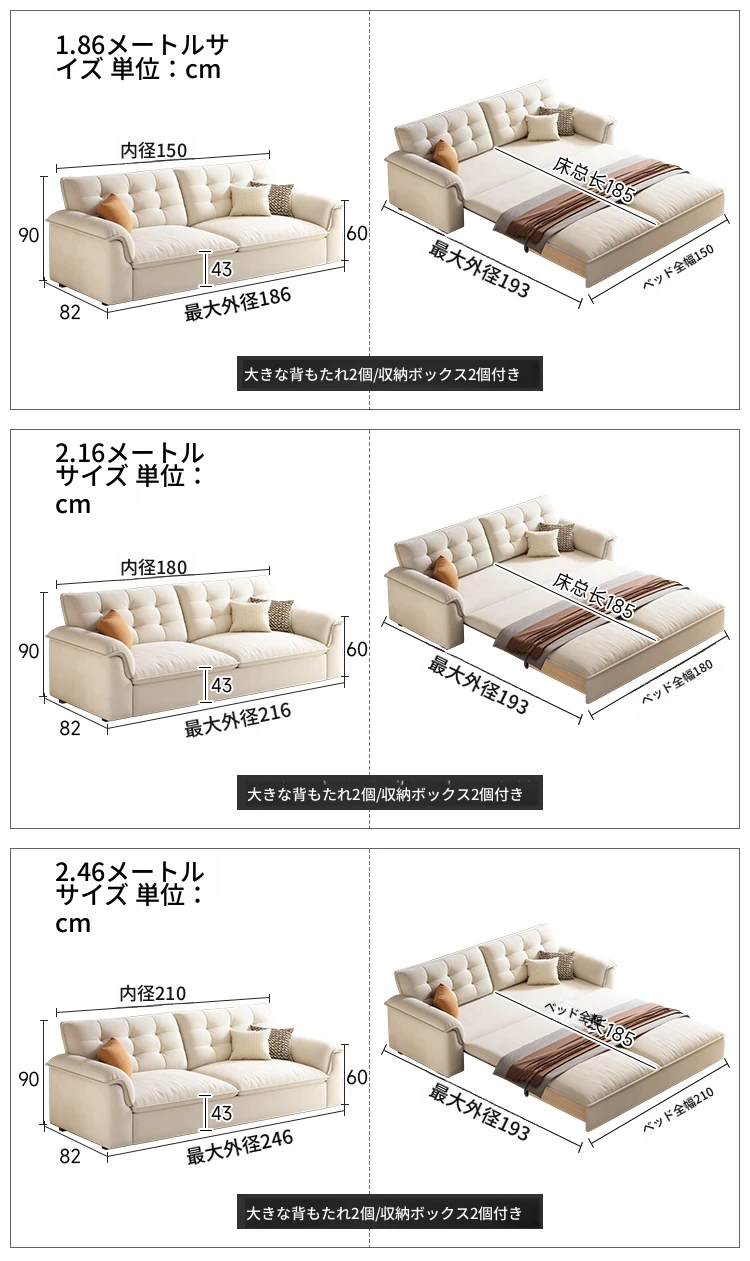 含扶手2.16米-快適なラテックスタイプ-収納付き