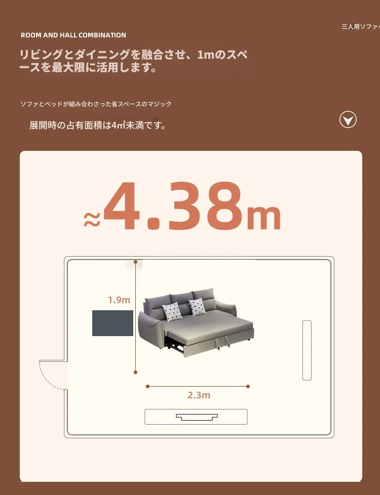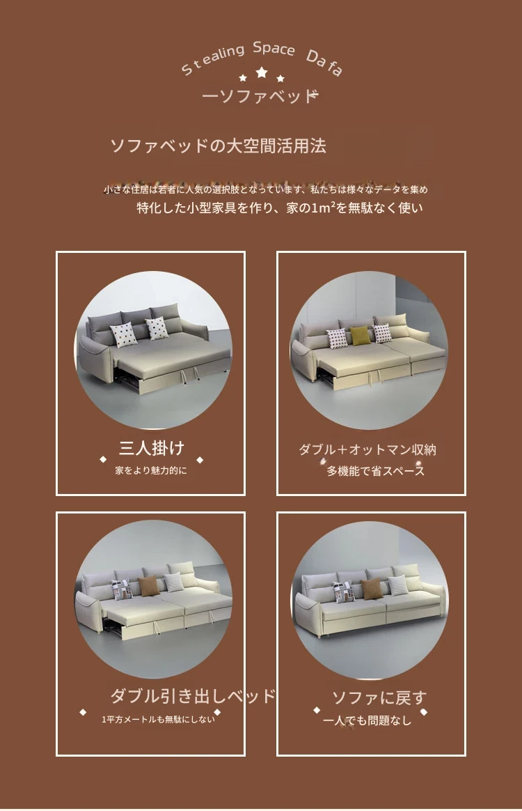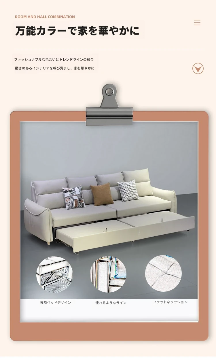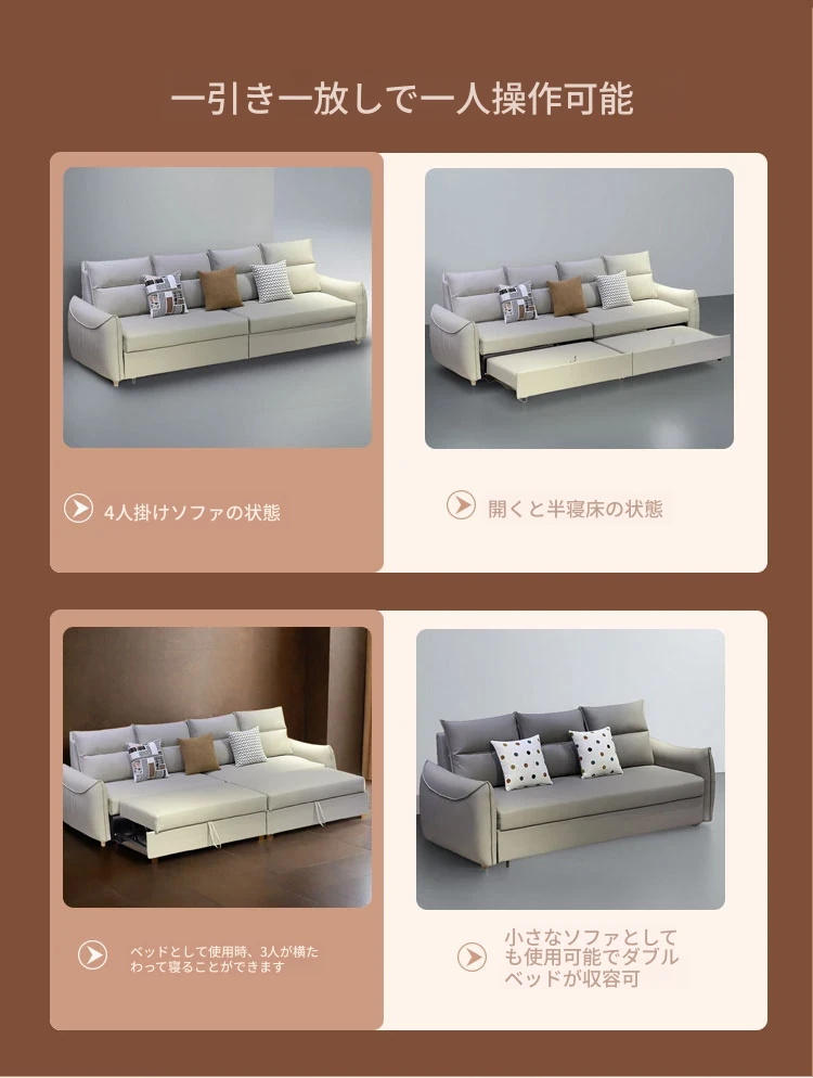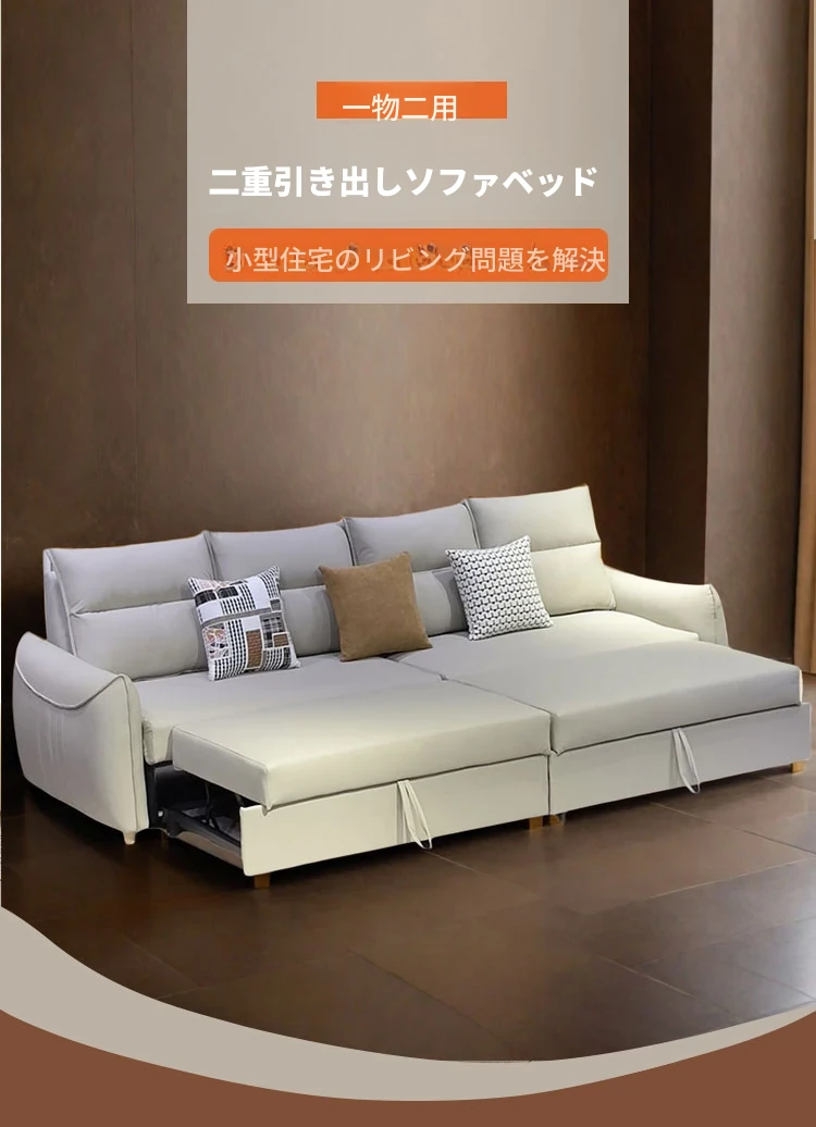 2025年最新モデル!モダンミニマリストデザインのソファベッド。狭いリビングにも最適なコンパクトサイズ。ダブルドロワー付きで伸縮可能、折りたたみ式の多機能ファブリックベッド。お家でのくつろぎ時間をもっと快適に!