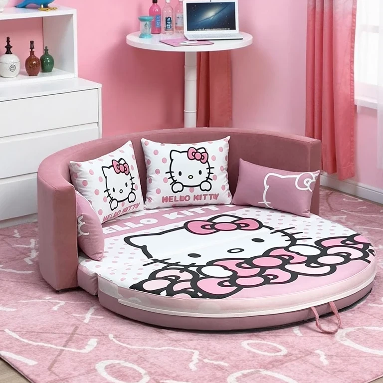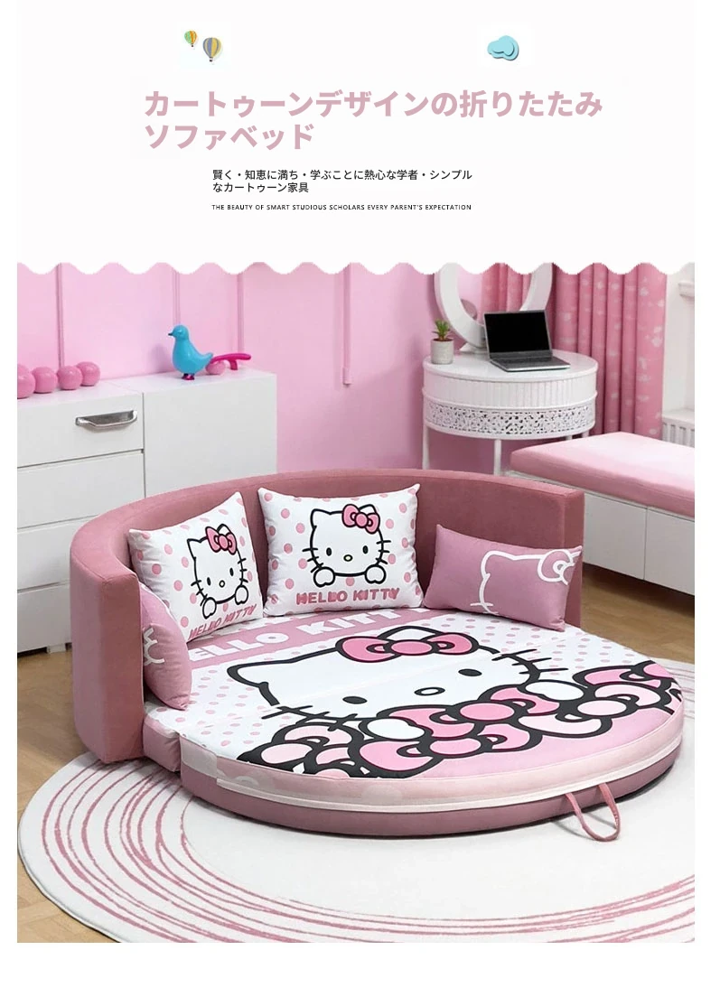2025年新作!かわいいキャラクターの子供用ソファベッド - 折りたたみ可能な畳スタイル、半円形デザインで多機能!寝室とリビング両方で使えるダブルベッド。お子様の夢の空間を演出します!