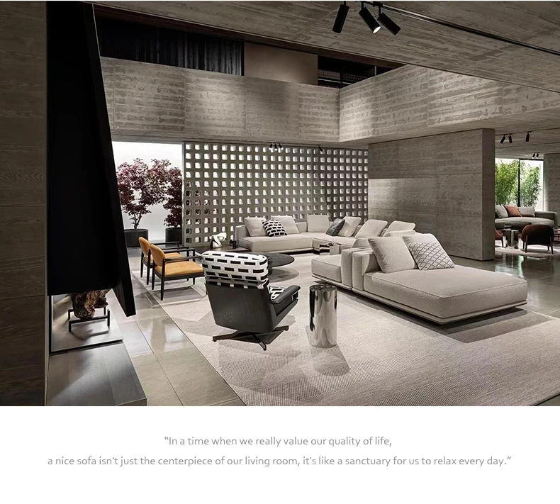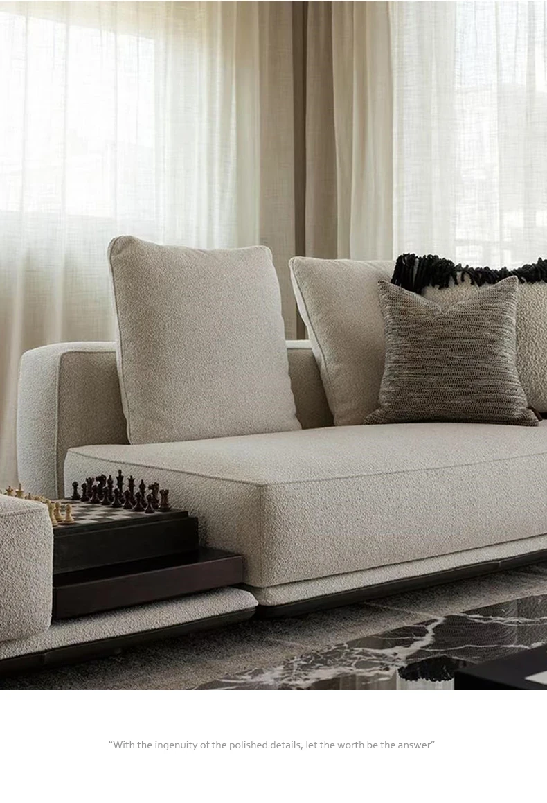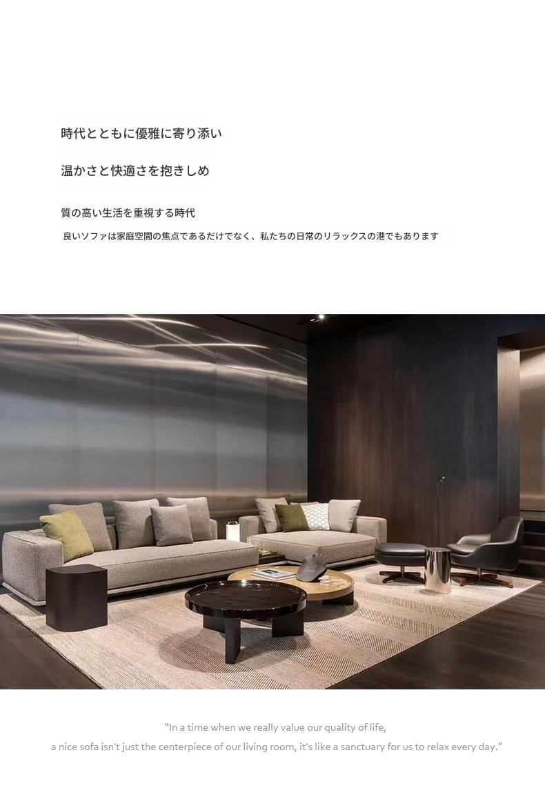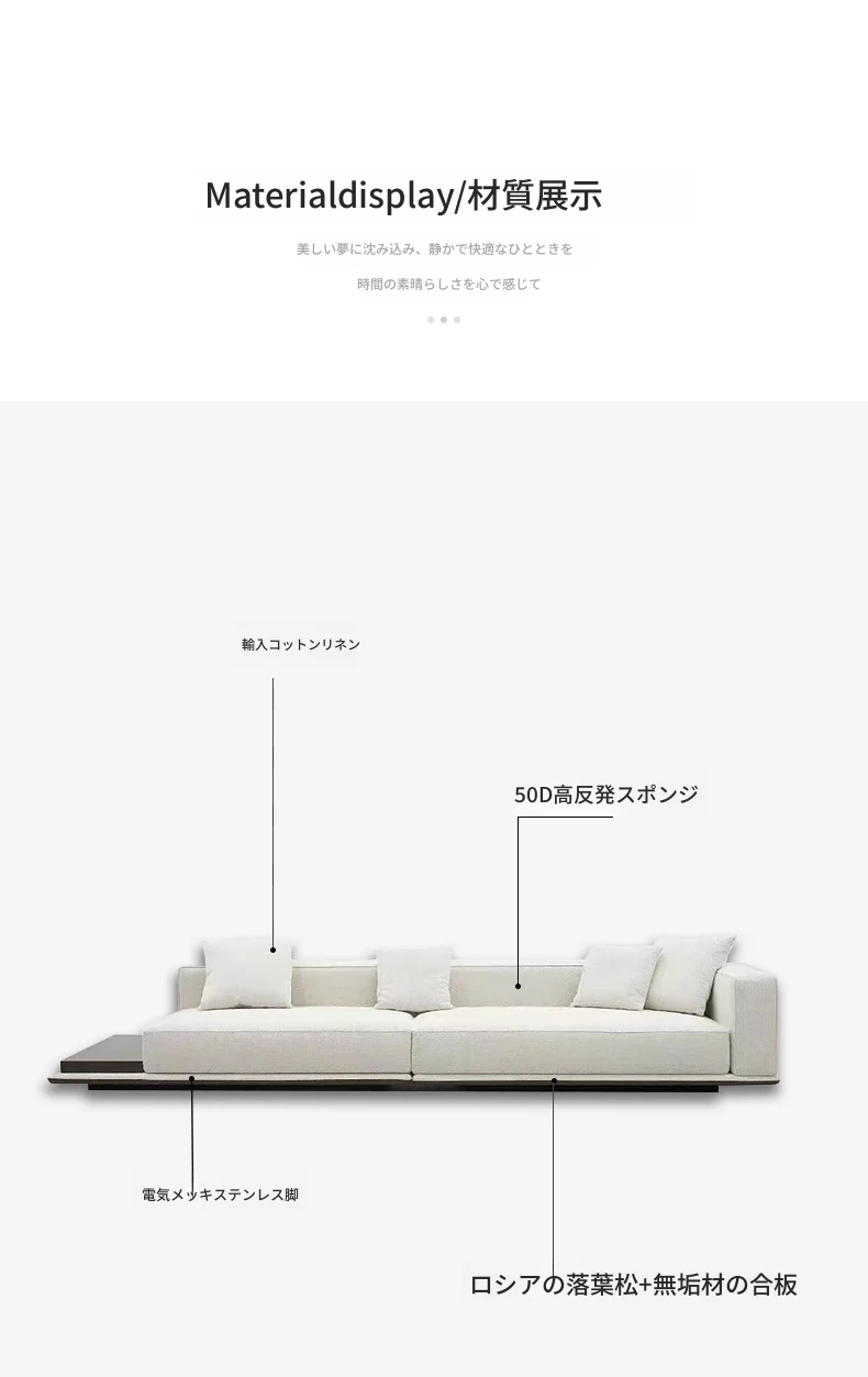 イタリアンミニマルデザインのリネンソファ - 2025年新作、ラグジュアリーな別荘スタイルのトーフブロックソファで、リビングルームをスタイリッシュに演出!