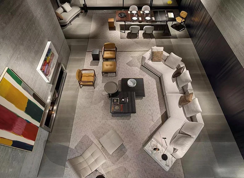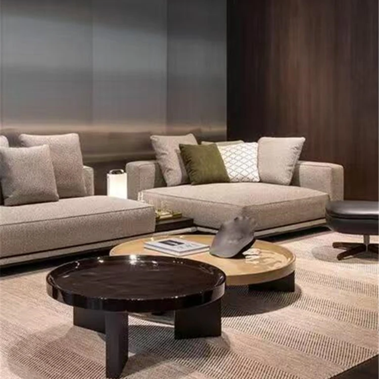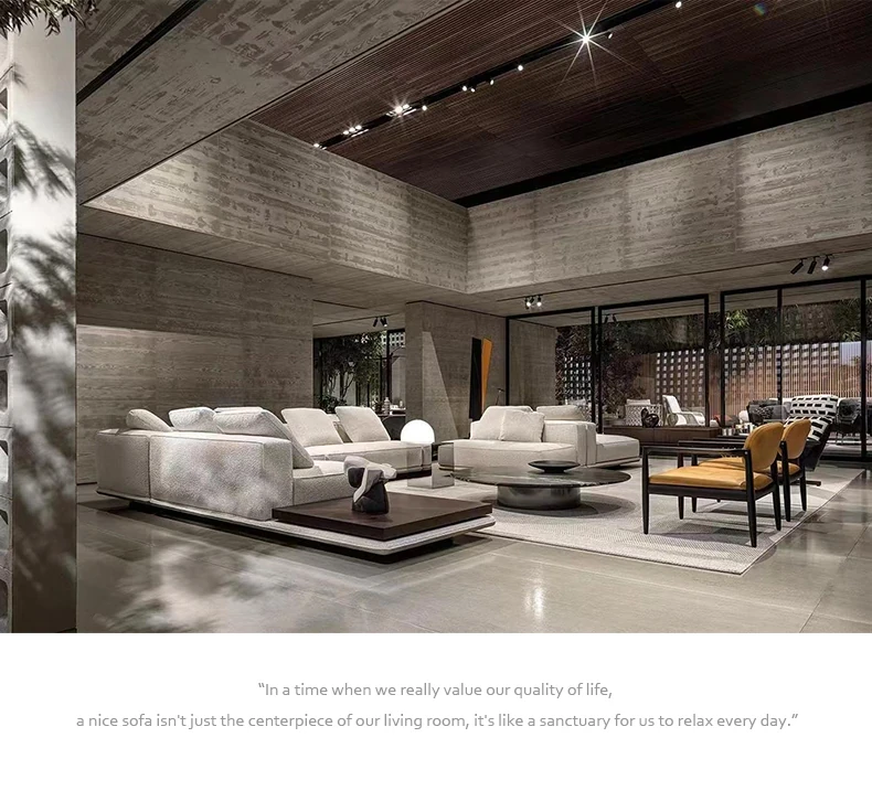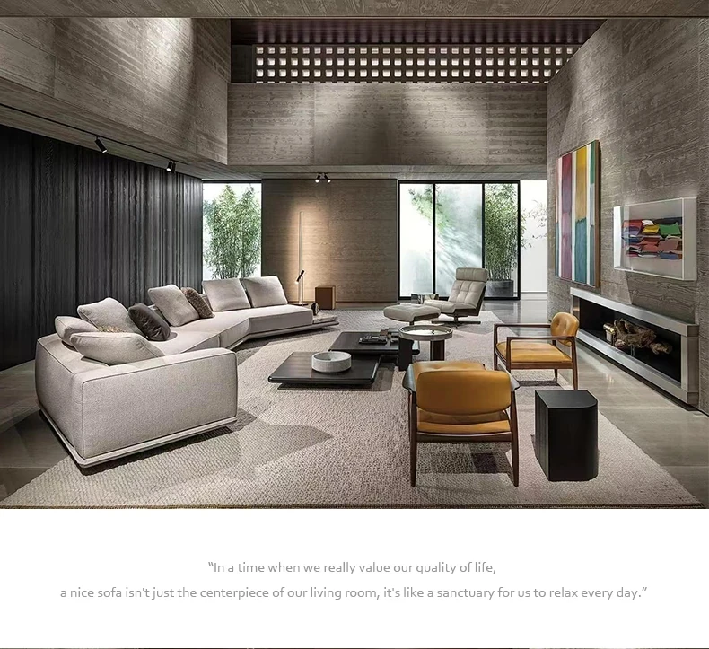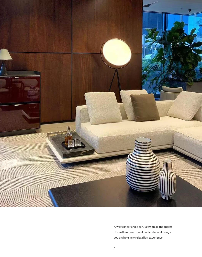 イタリアンミニマルデザインのリネンソファ - 2025年新作、ラグジュアリーな別荘スタイルのトーフブロックソファで、リビングルームをスタイリッシュに演出!
