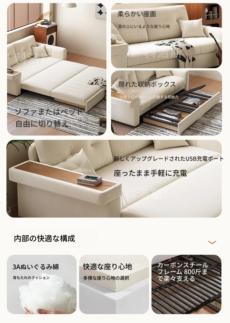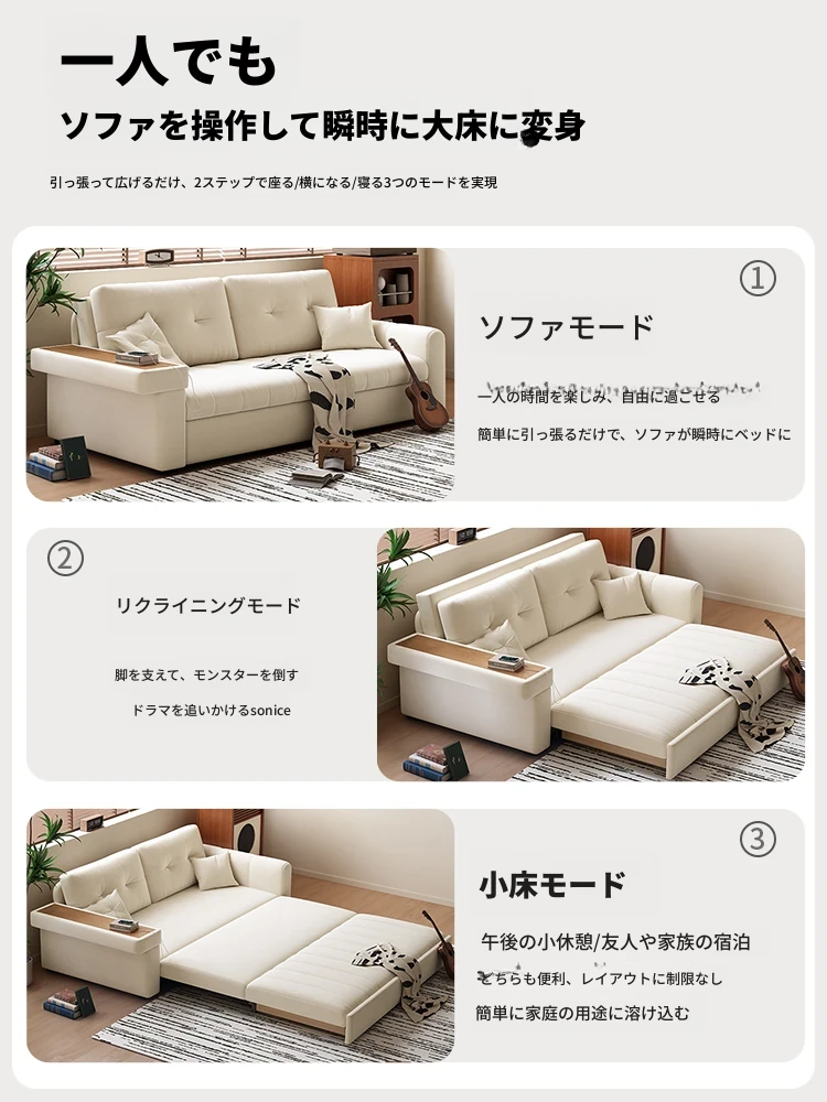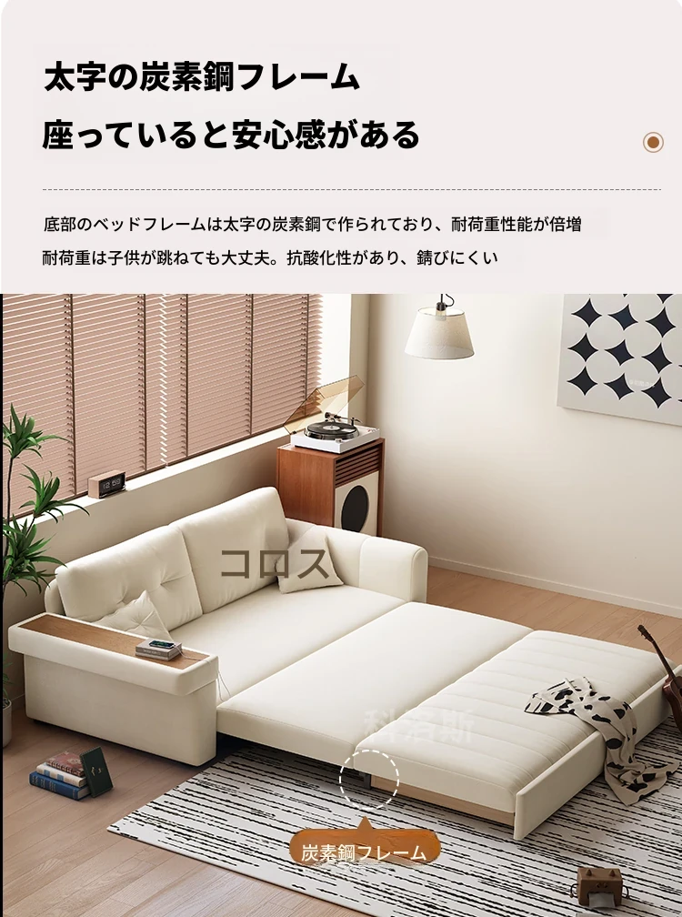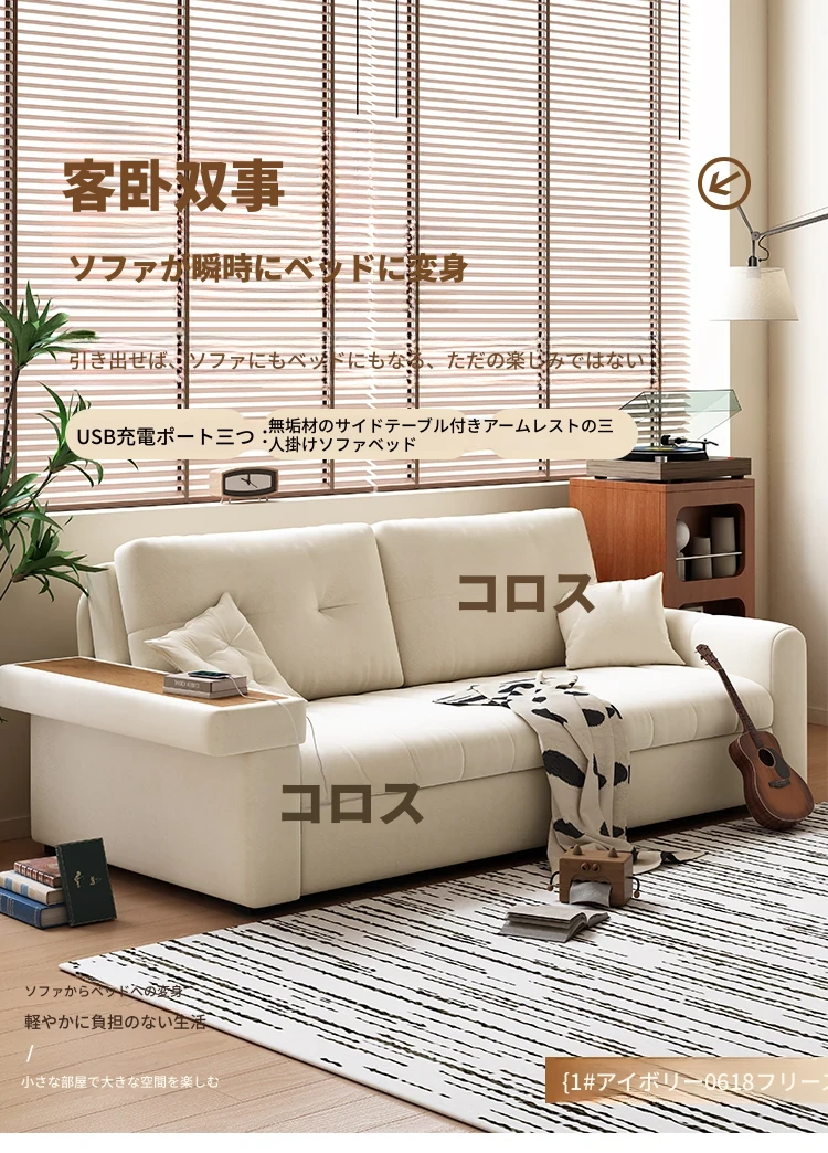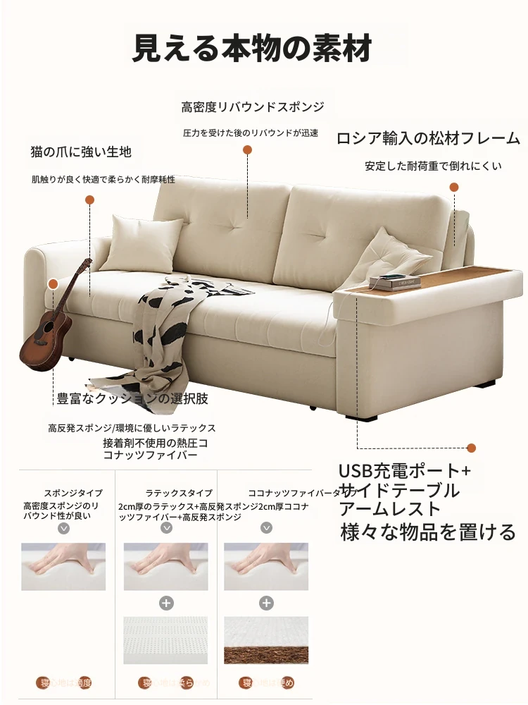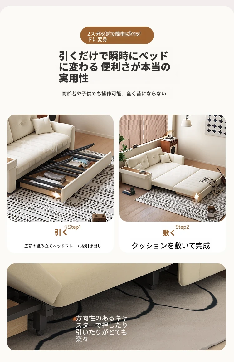 2025年新作!おしゃれなクリーム色の一体型ソファベッド - 多機能で折りたたみ可能なリビング用ソファ、シンプルでモダンなデザインで、どんなお部屋にもぴったり!快適さとスタイルを両立した一品です。
