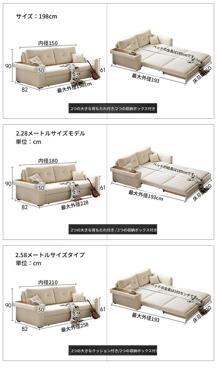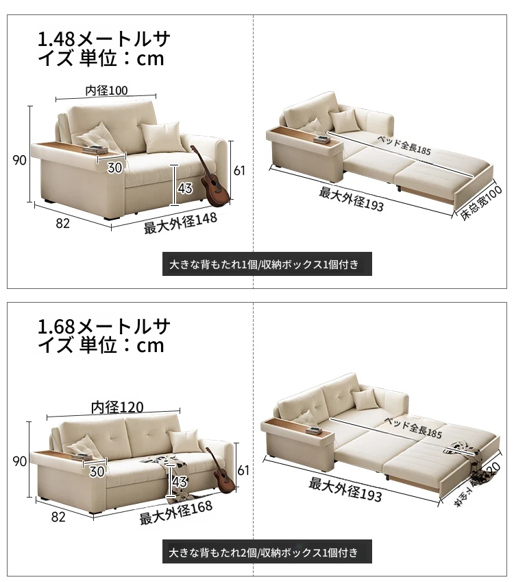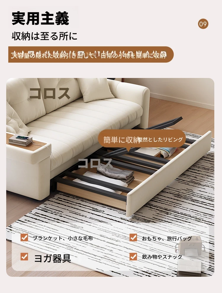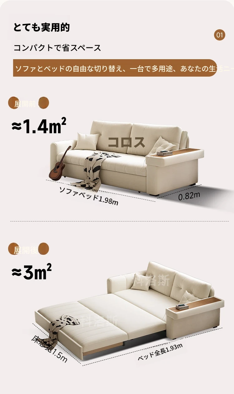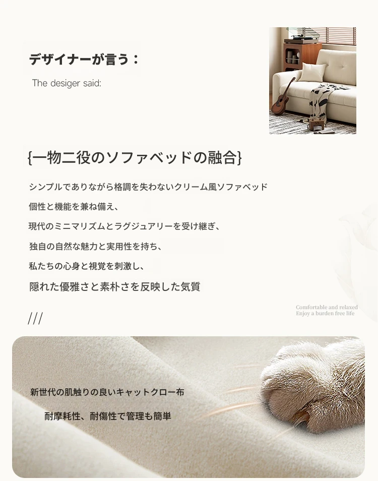 2025年新作!おしゃれなクリーム色の一体型ソファベッド - 多機能で折りたたみ可能なリビング用ソファ、シンプルでモダンなデザインで、どんなお部屋にもぴったり!快適さとスタイルを両立した一品です。