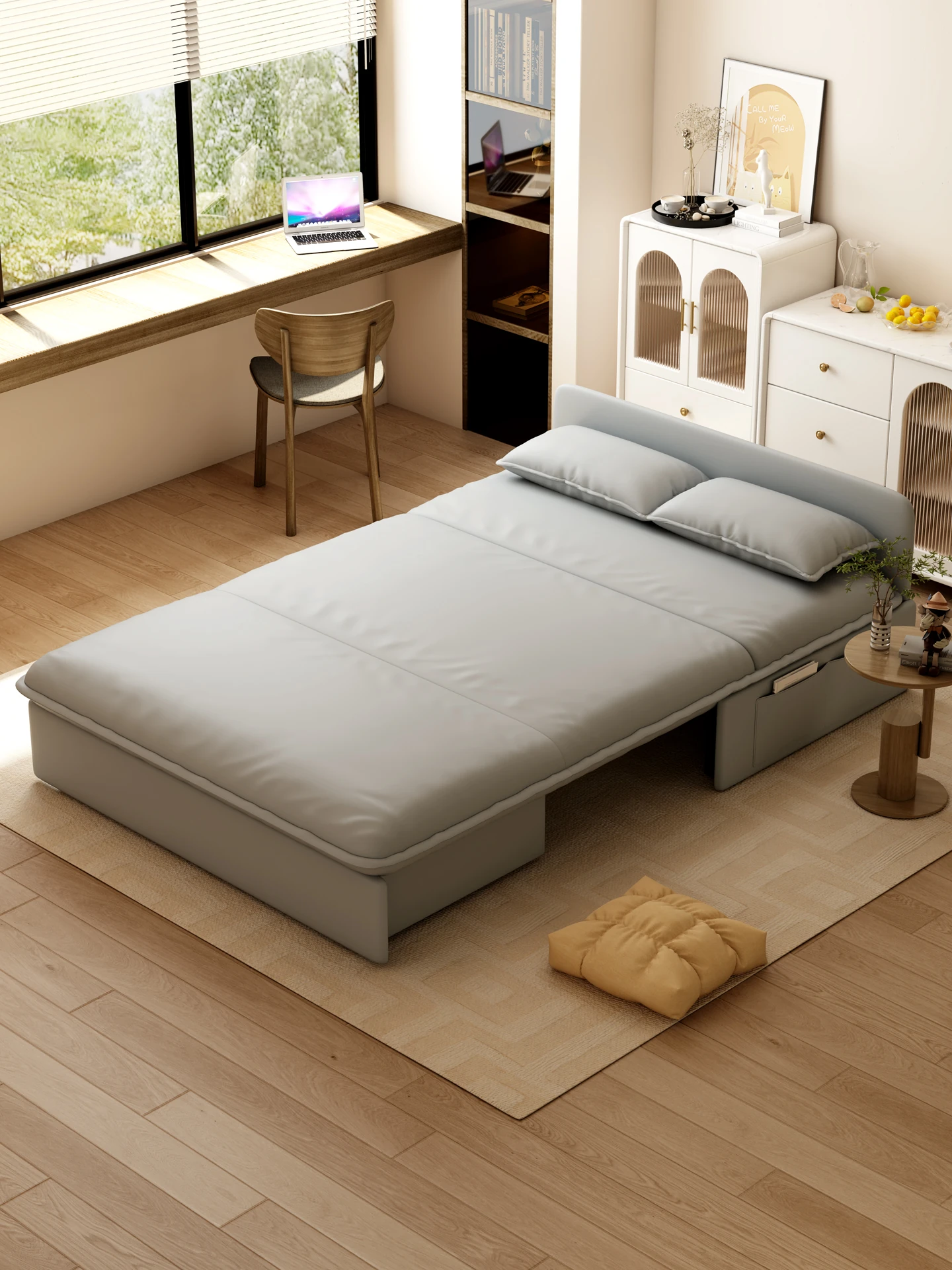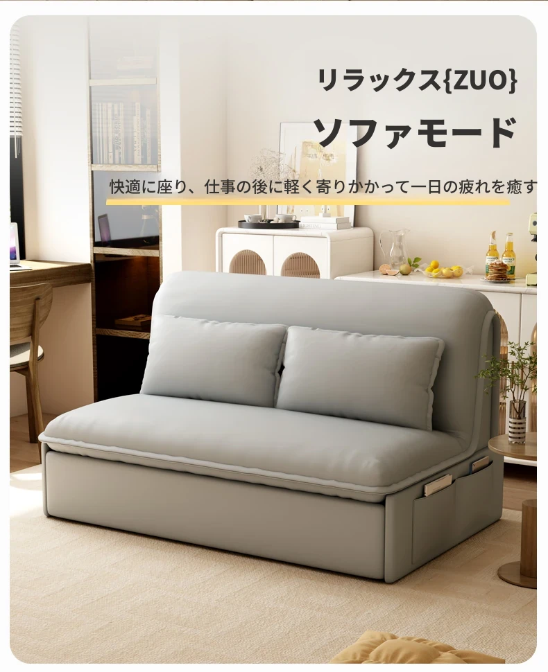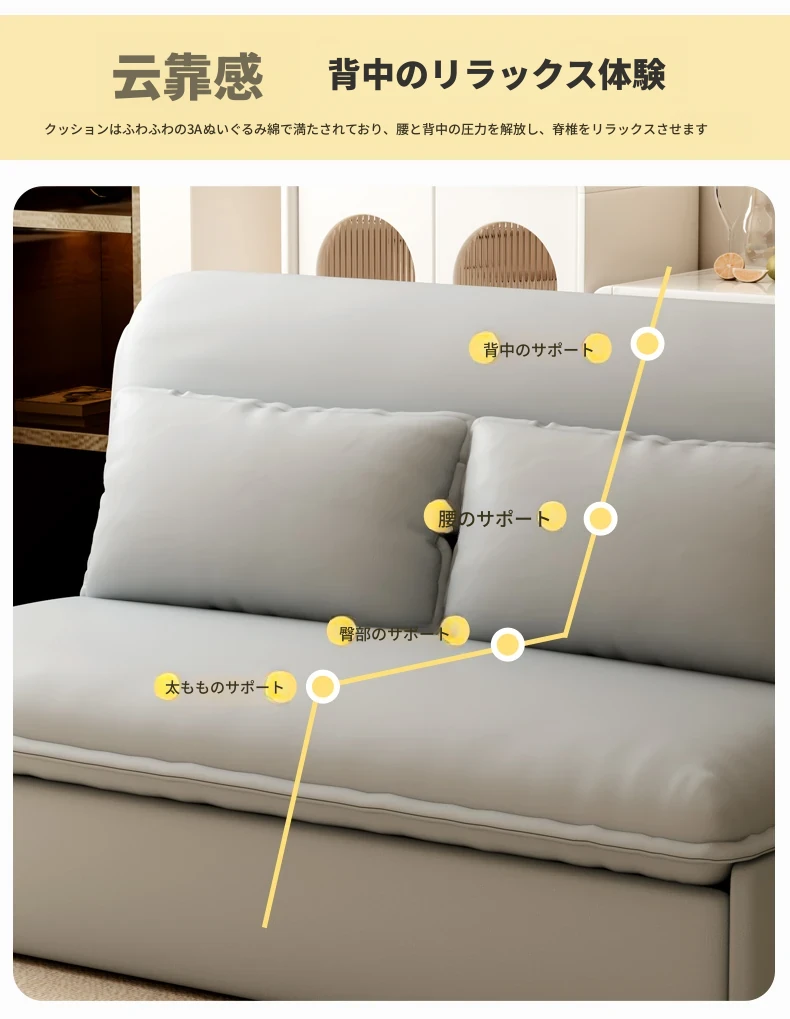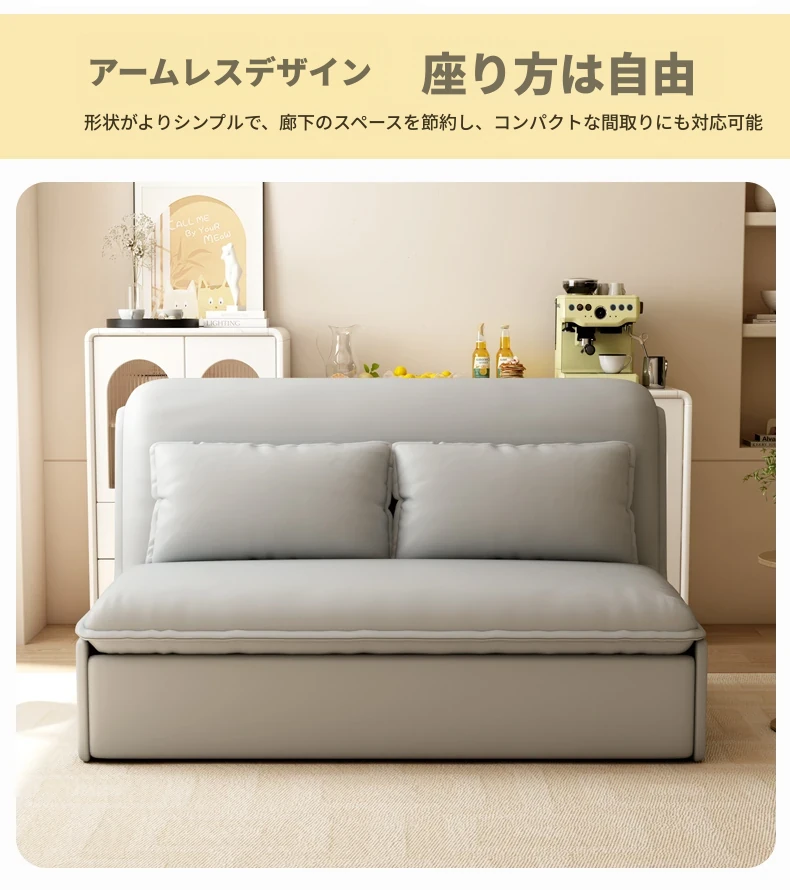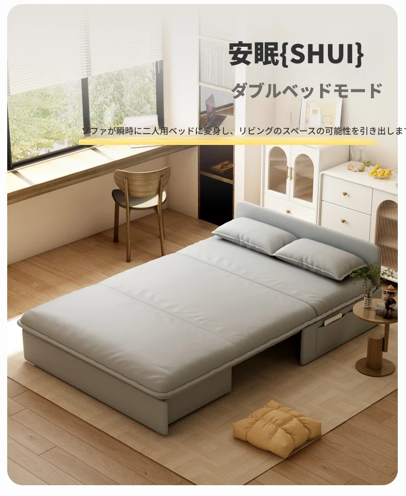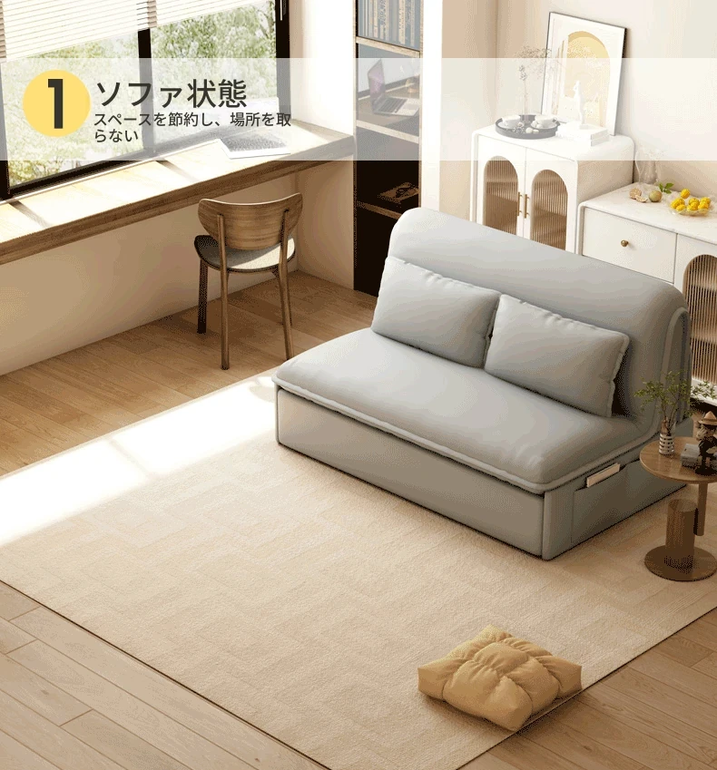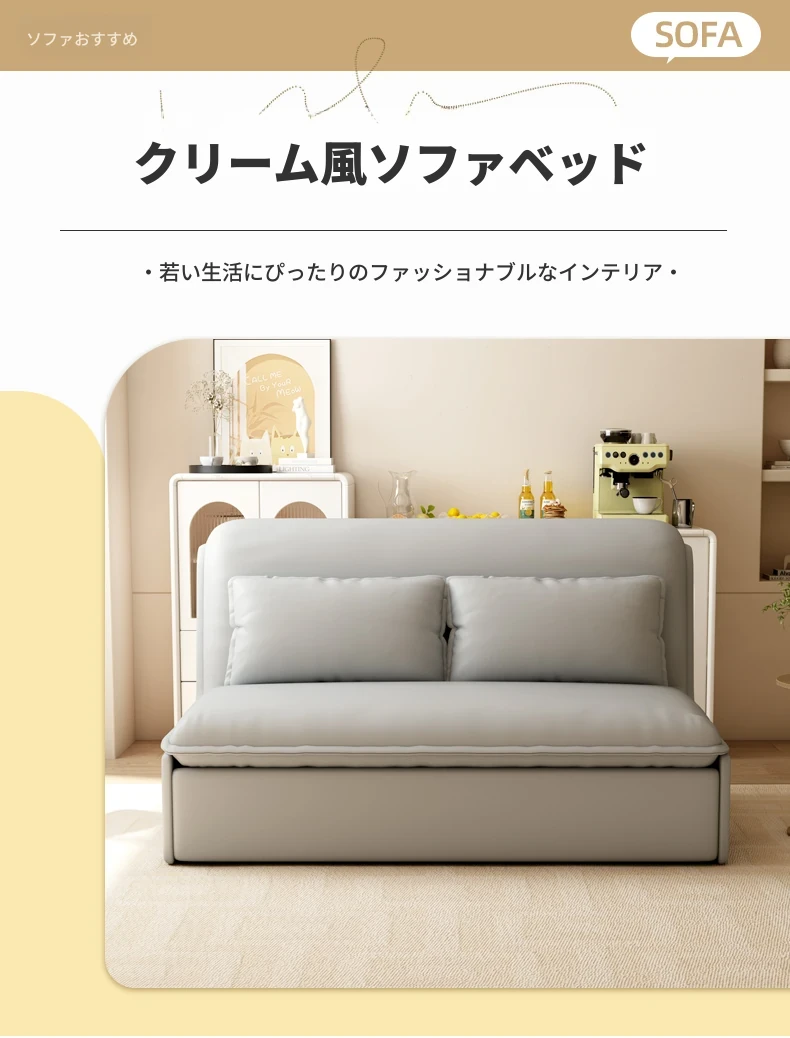 2025年新登場!おしゃれで多機能なクリーム色ソファベッド - 小型リビングや寝室に最適!折りたたみ可能な一人用ソファベッドで、スペースを有効活用しながら快適な眠りを提供します。