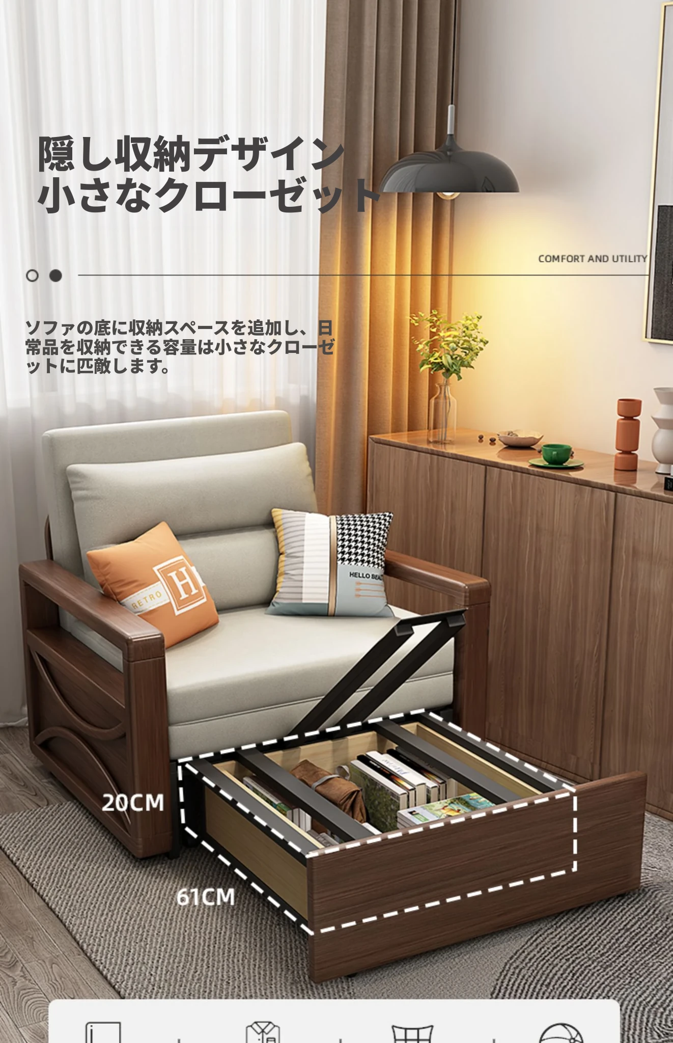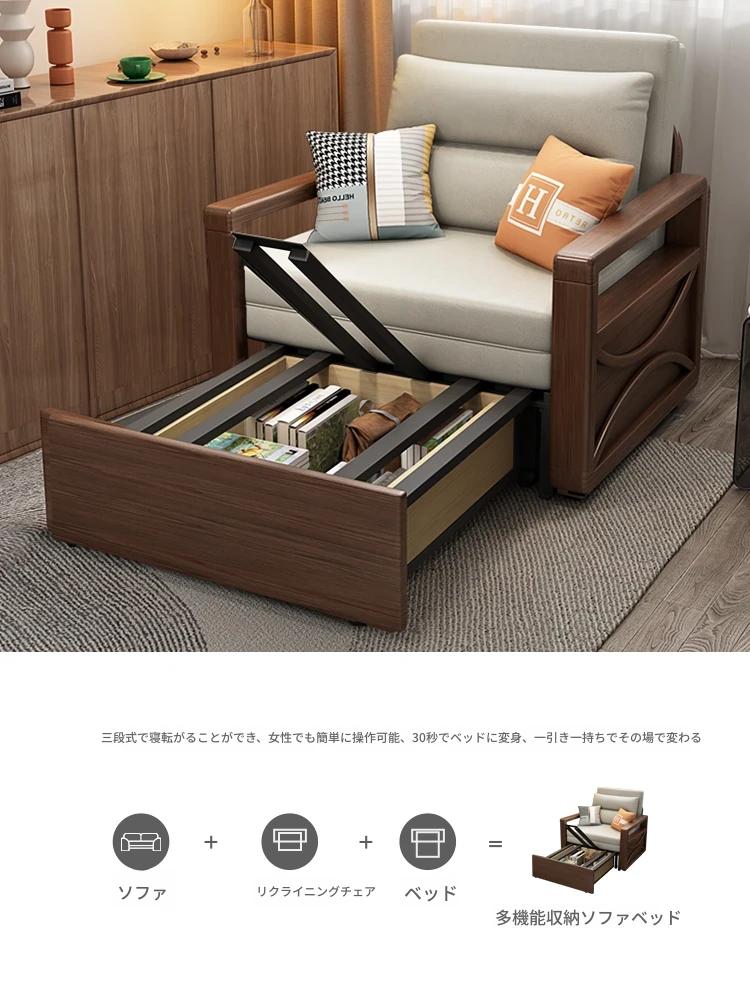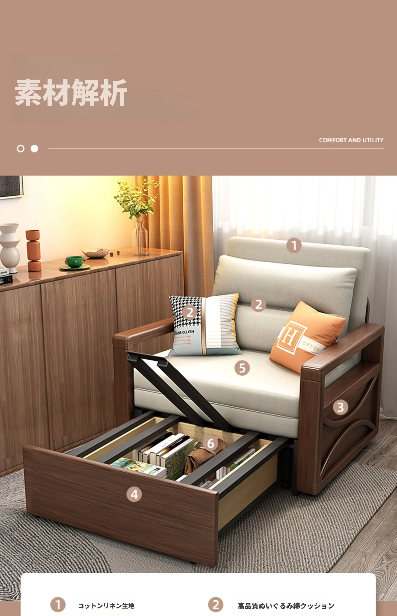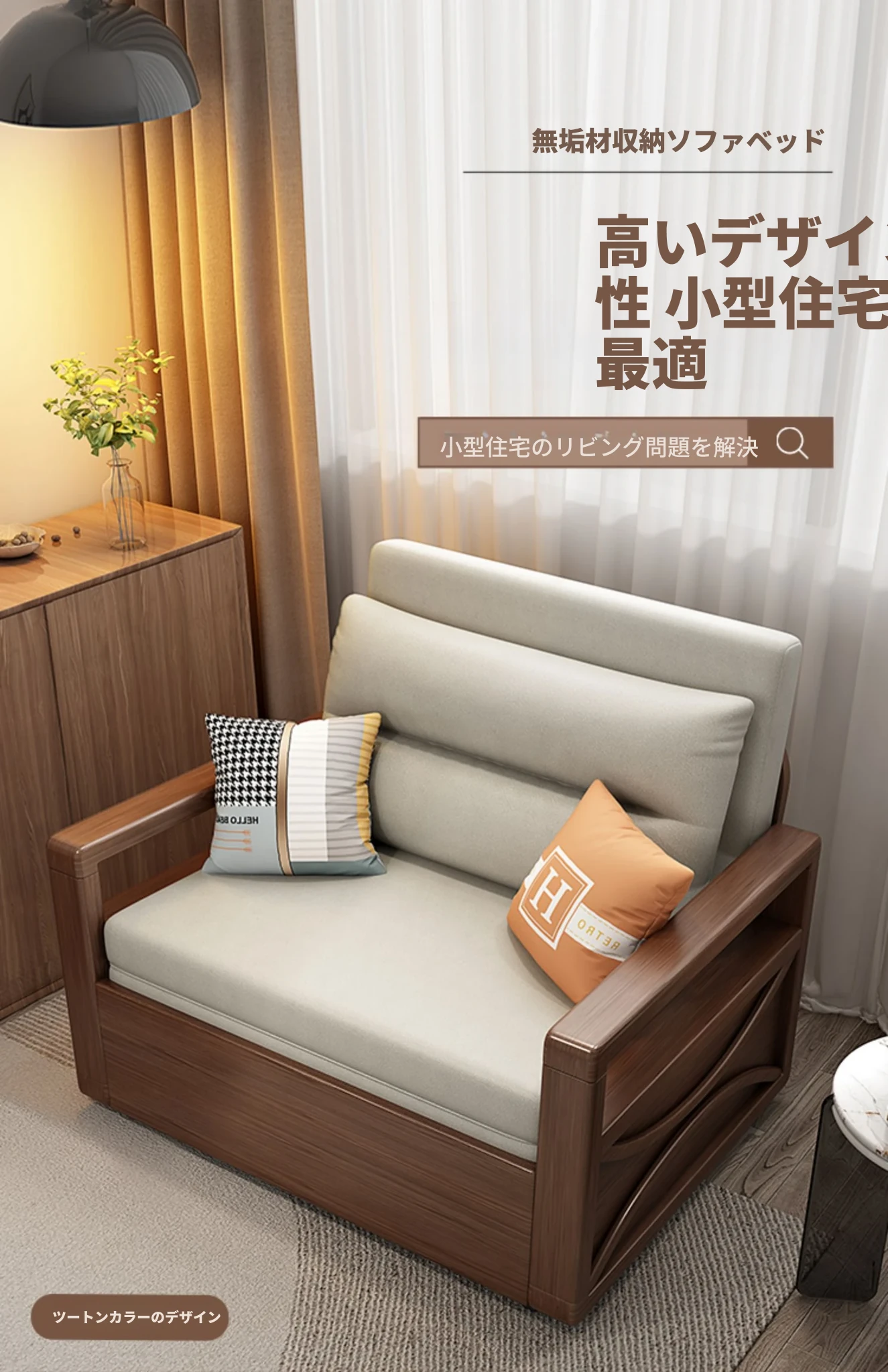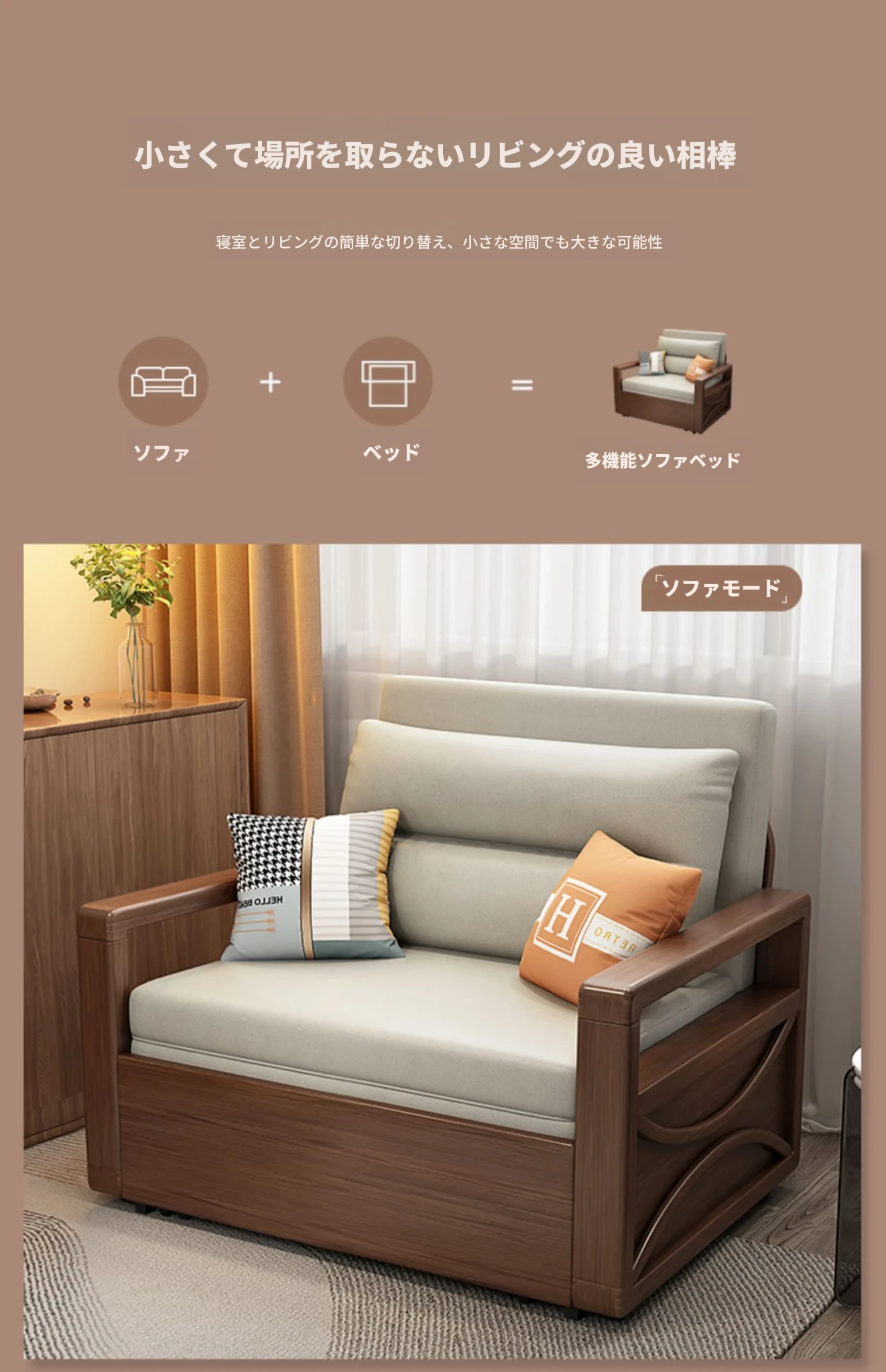 2025年新款!便利な折りたたみ機能付きの実木製パームシングルソファベッド - 小型リビングやバルコニーに最適な多機能ソファ!快適さとスタイルを両立させた一台です。