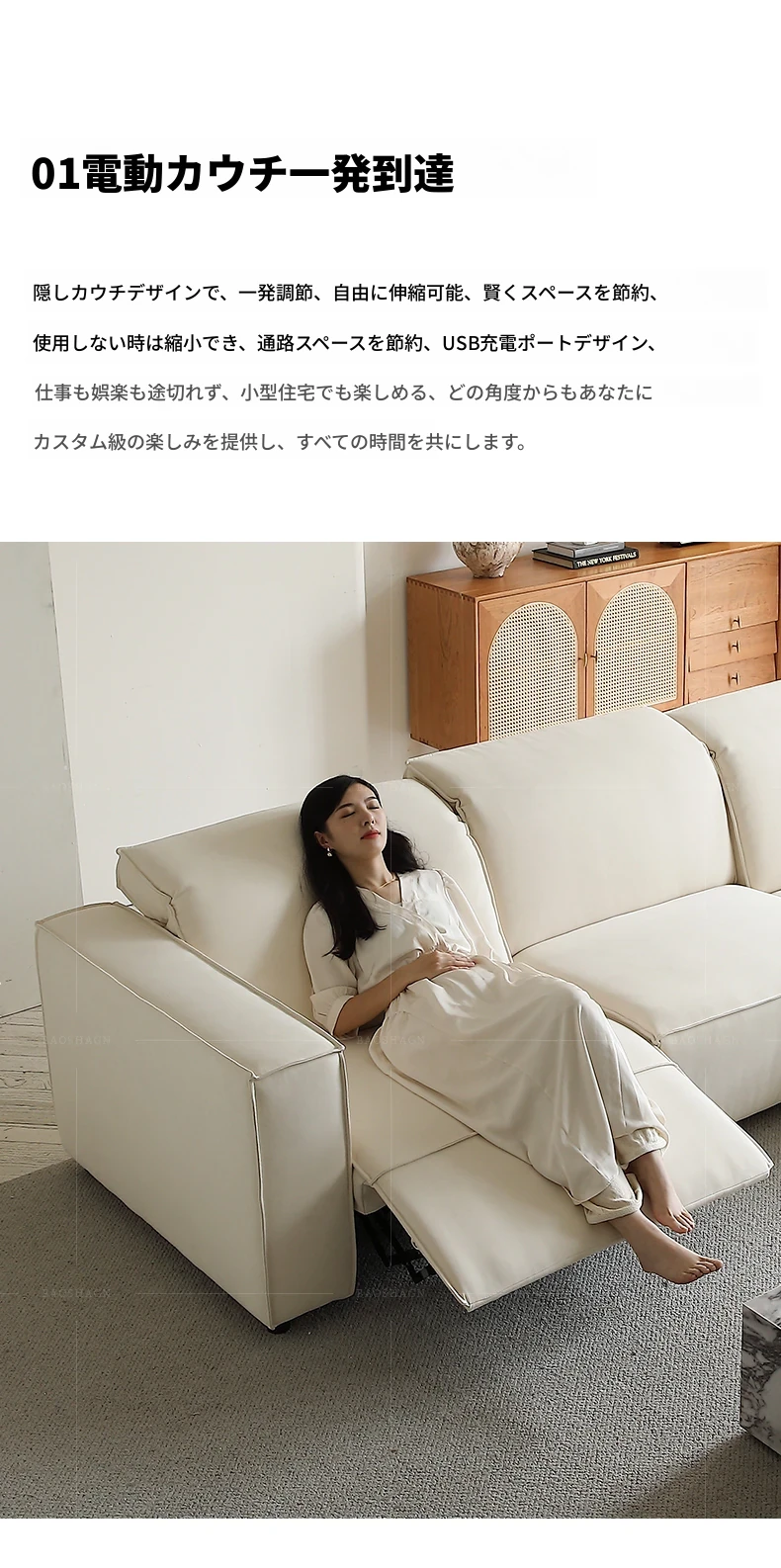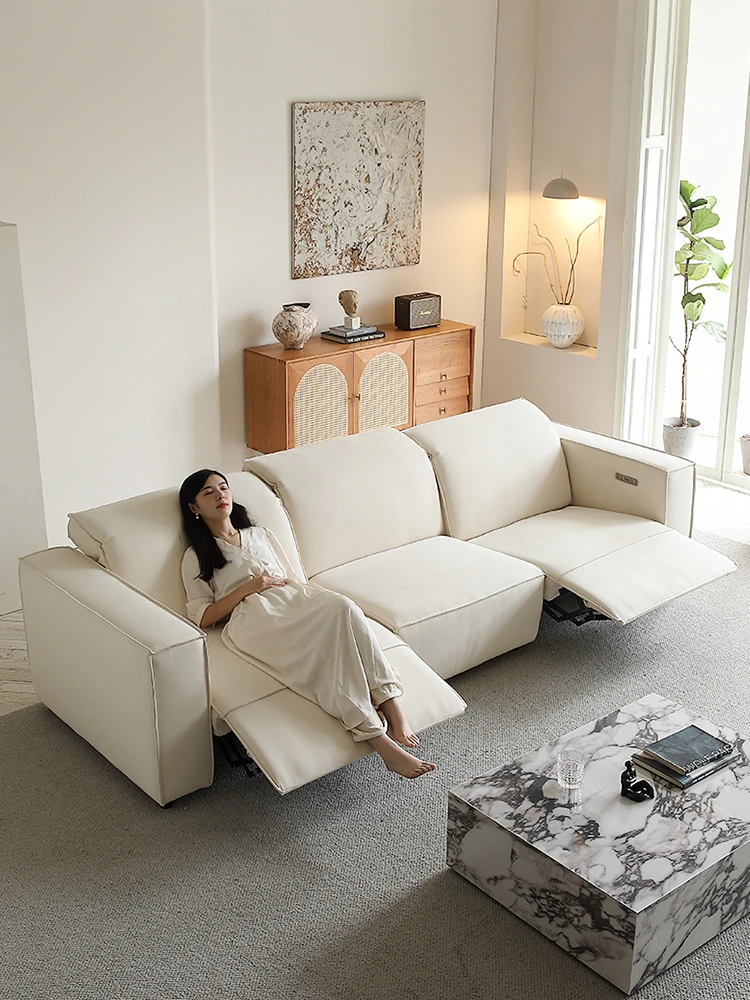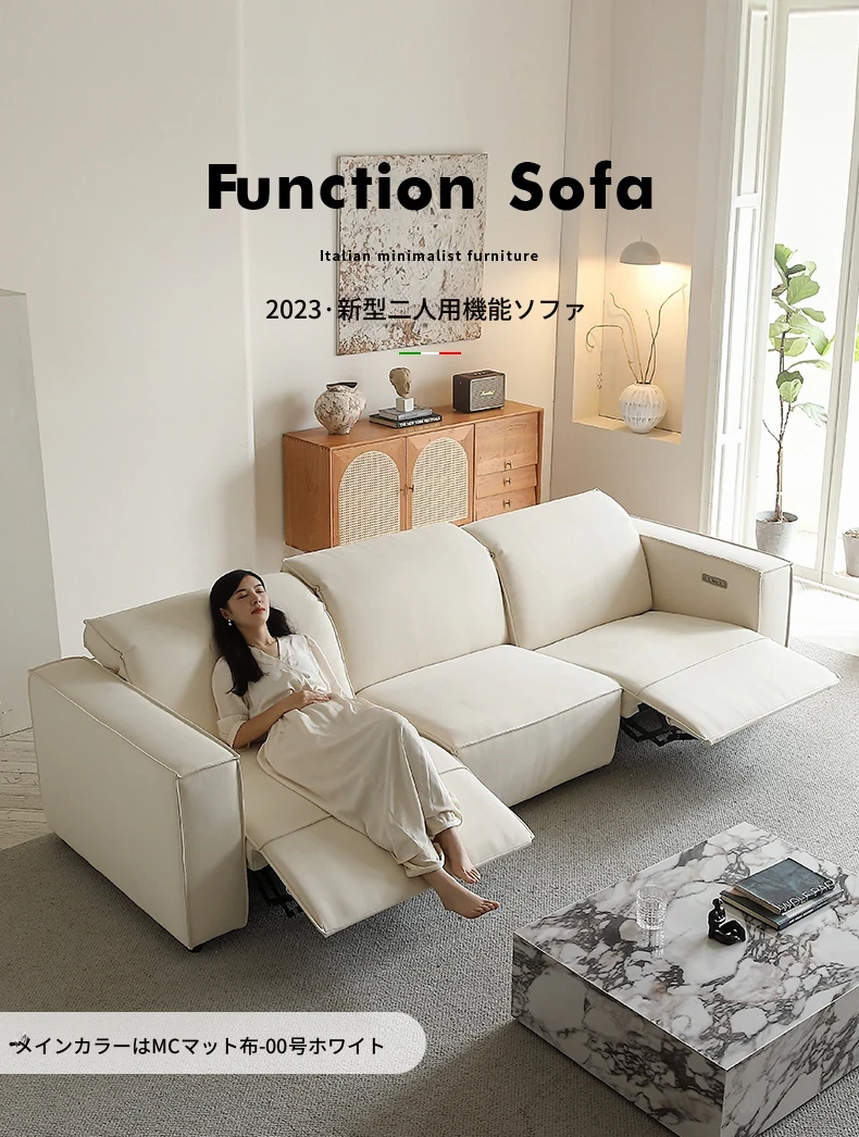電動ソファベッド 2WAY 調節可能 多機能 高背もたれ 豆腐ブロック デザイン 直排 スエード生地 ワイヤレスリモコン 伸縮式 - 快適さとスタイルを兼ね備えた理想の家具!
