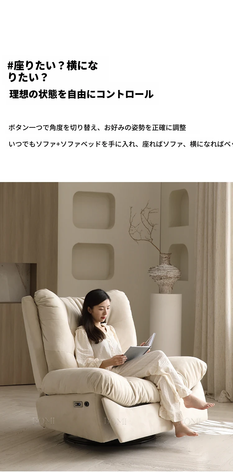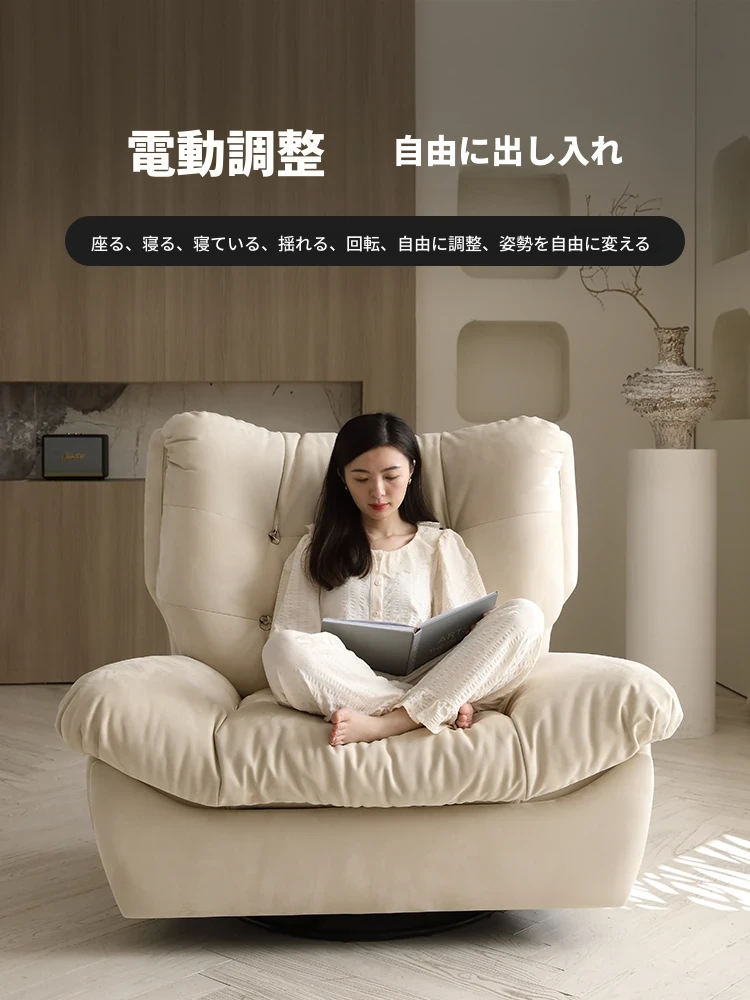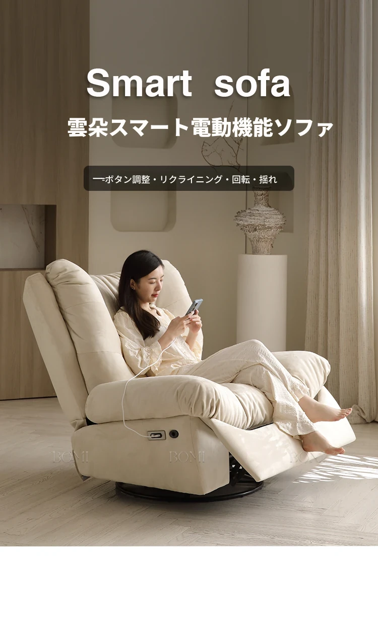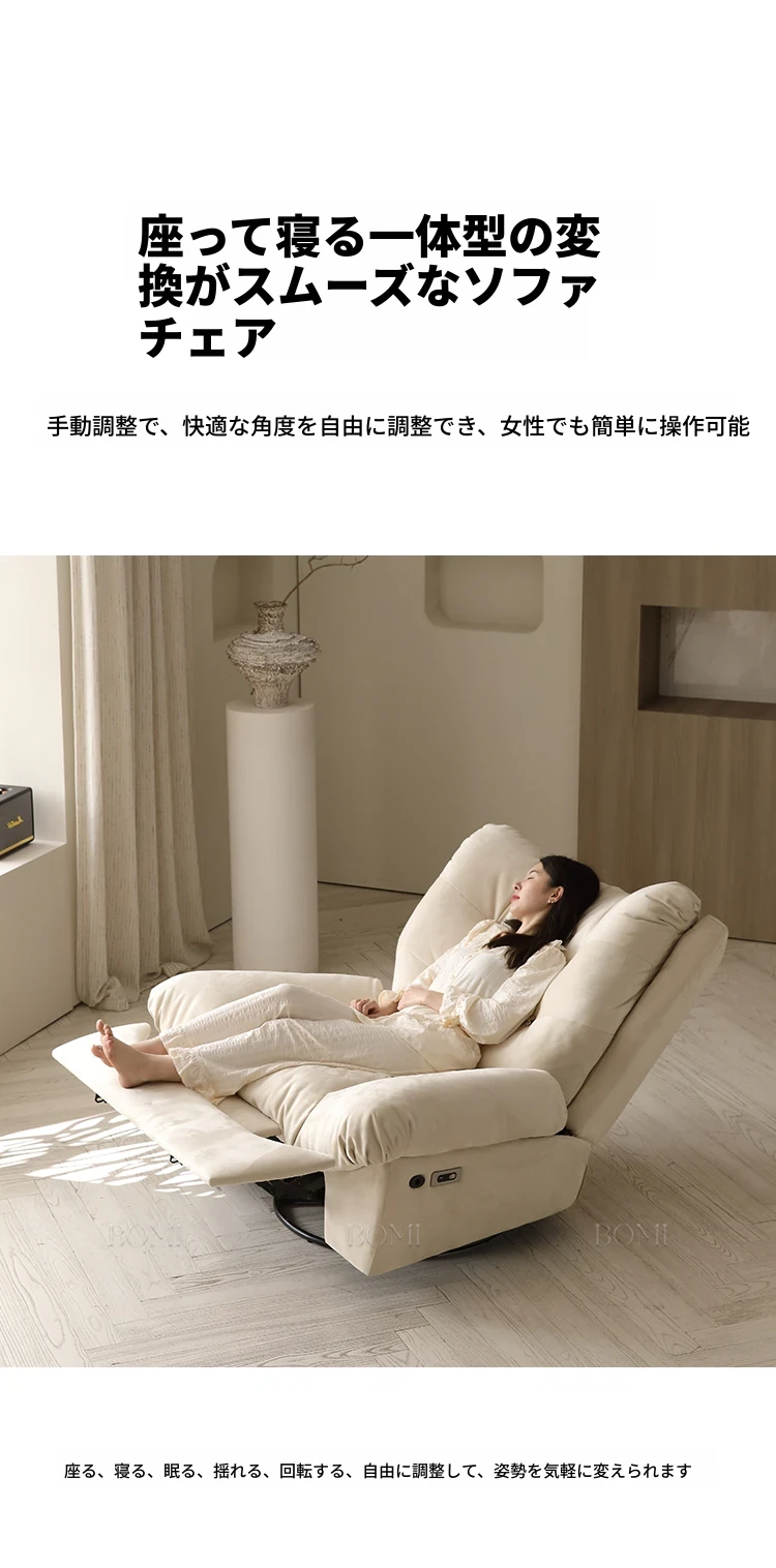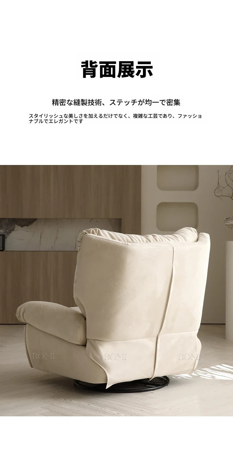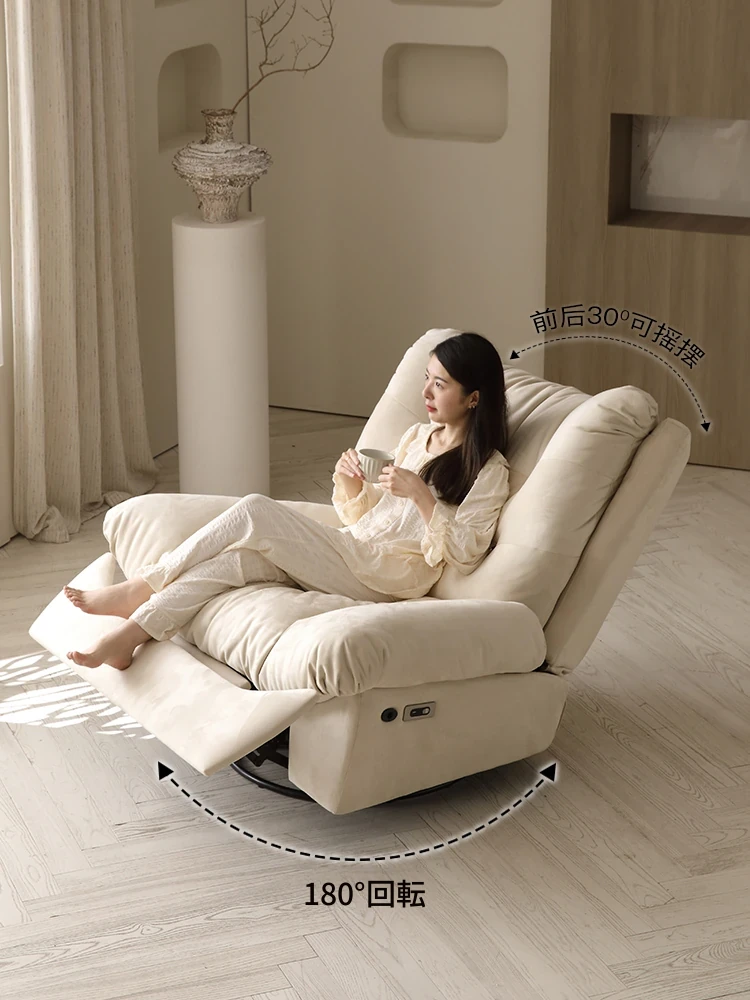 バクスター雲朵シングル電動リクライニングソファチェア|イタリアンミニマリズムの極み!回転機能付きで、リラックスと快適さを追求した怠け者必見の休憩用ロッキングチェア!
