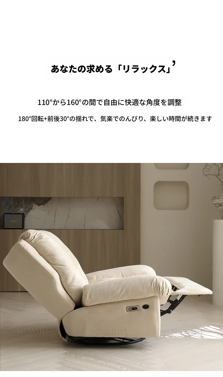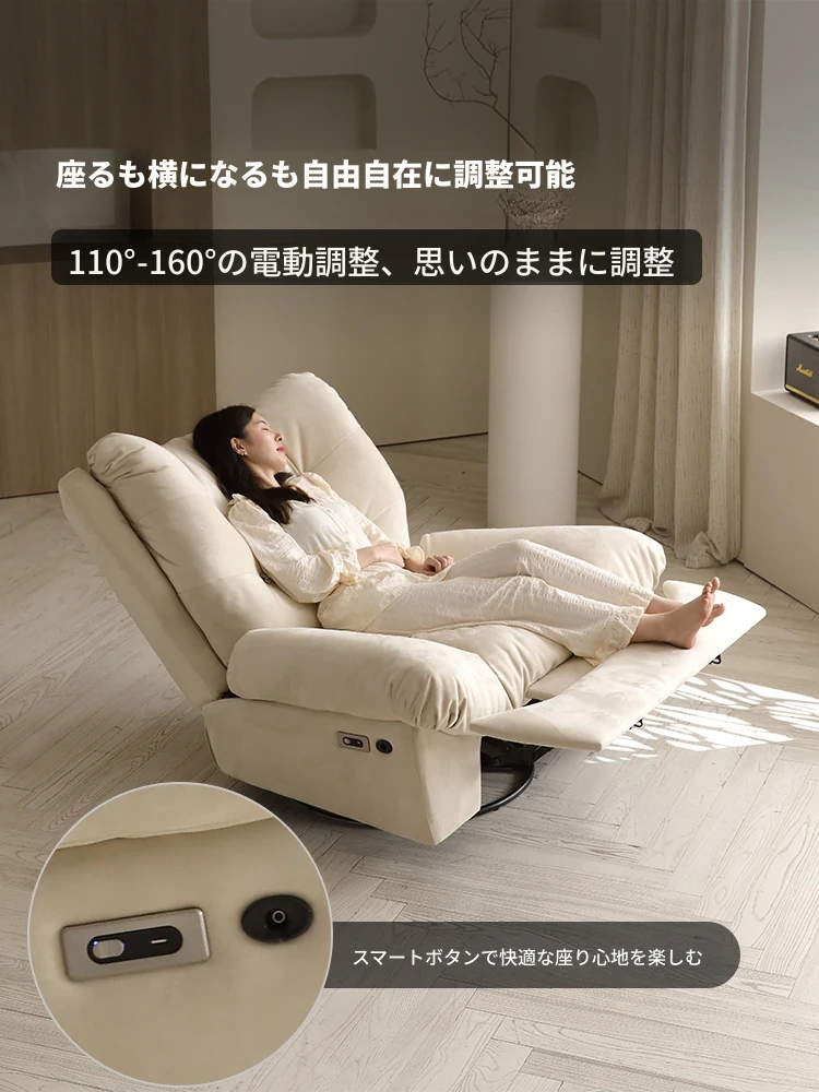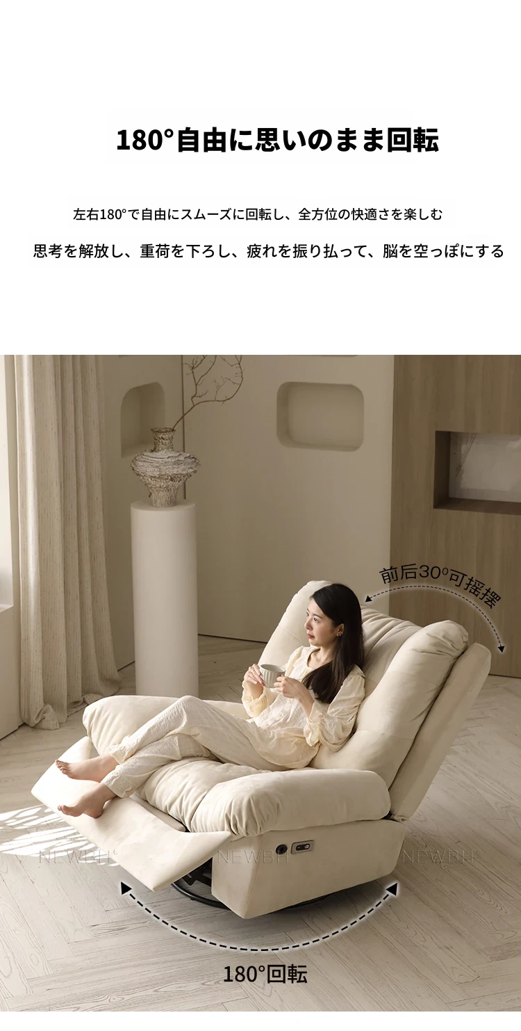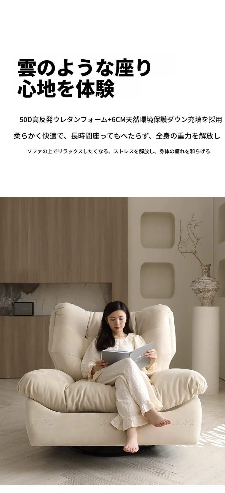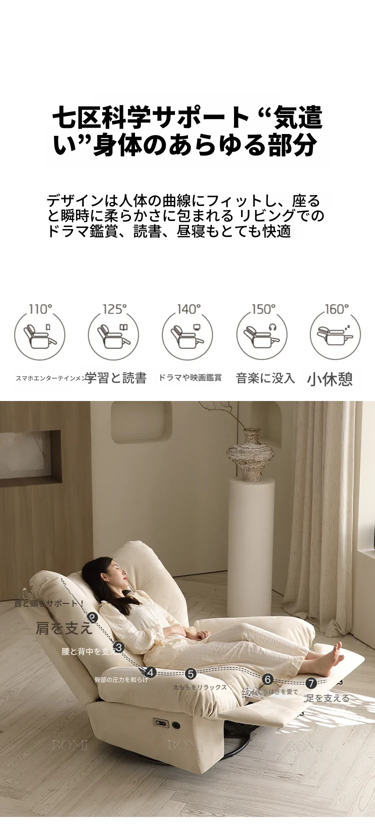 バクスター雲朵シングル電動リクライニングソファチェア|イタリアンミニマリズムの極み!回転機能付きで、リラックスと快適さを追求した怠け者必見の休憩用ロッキングチェア!
