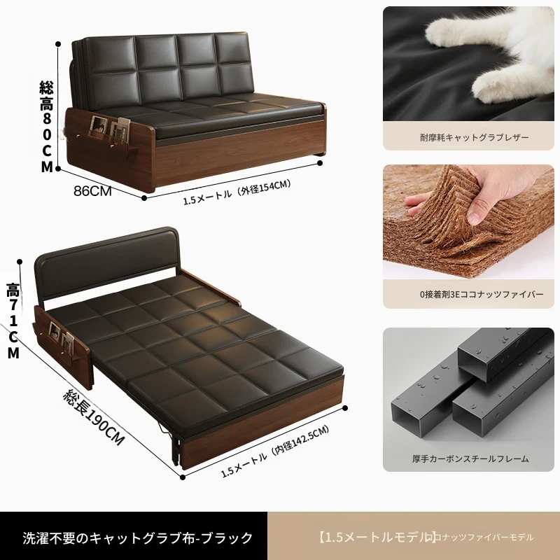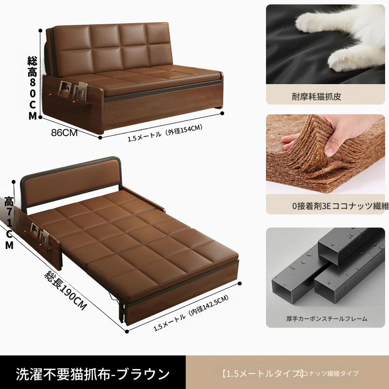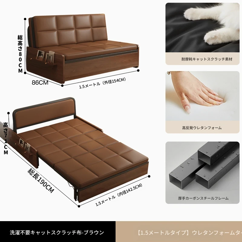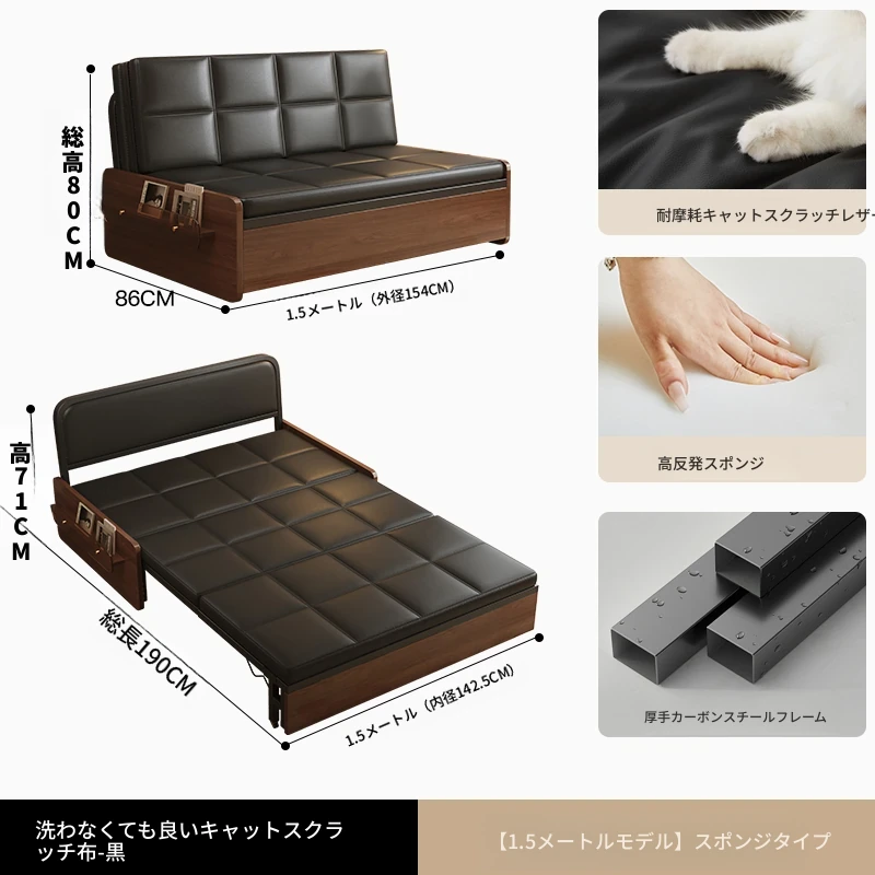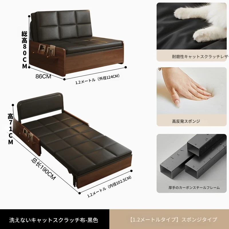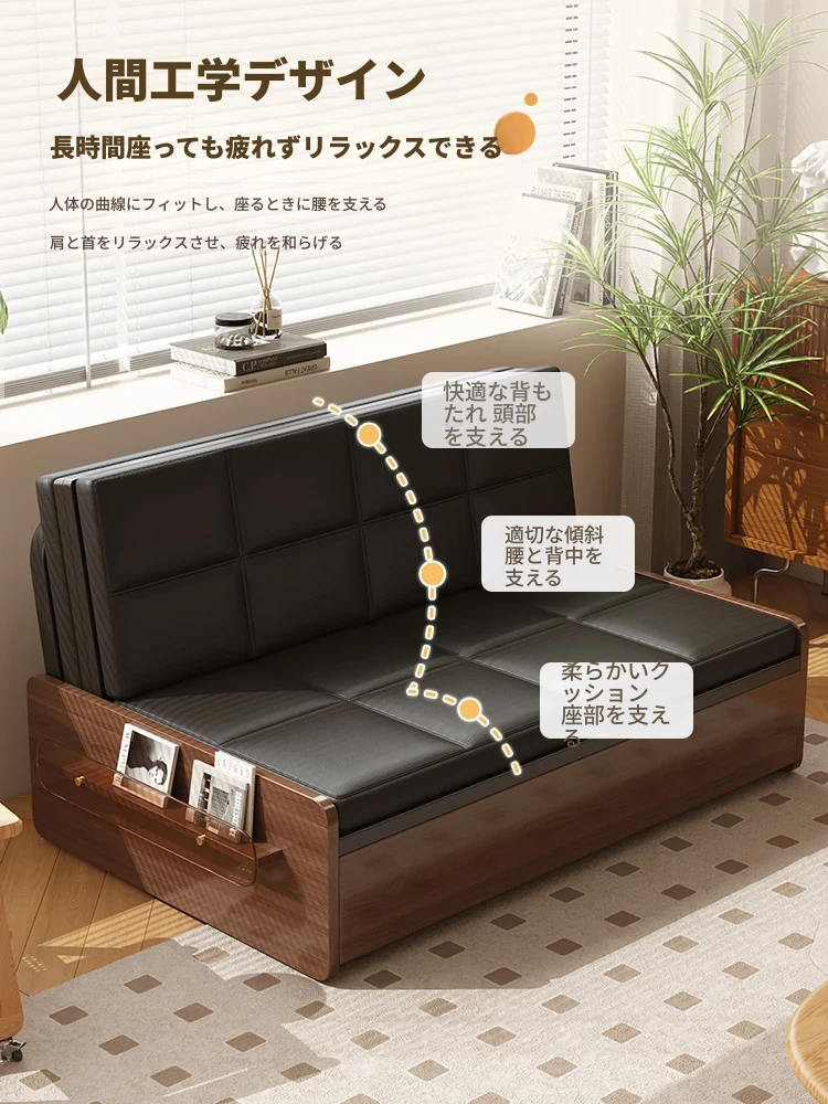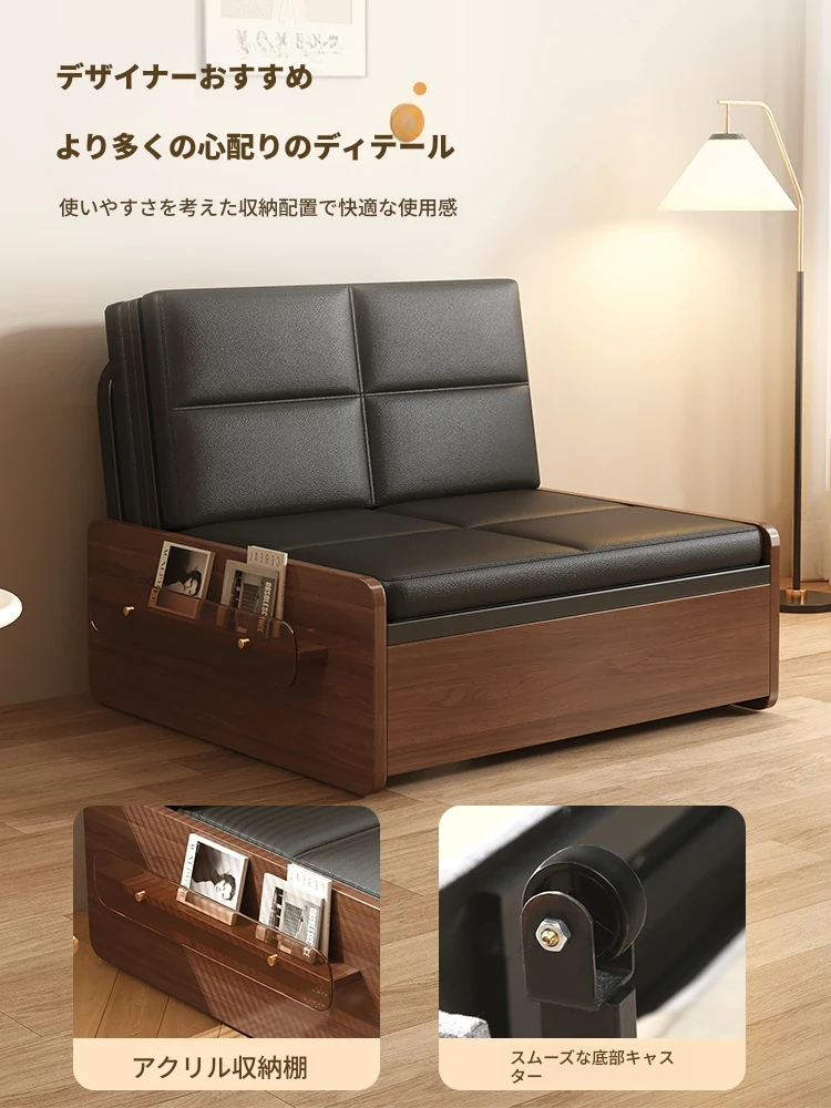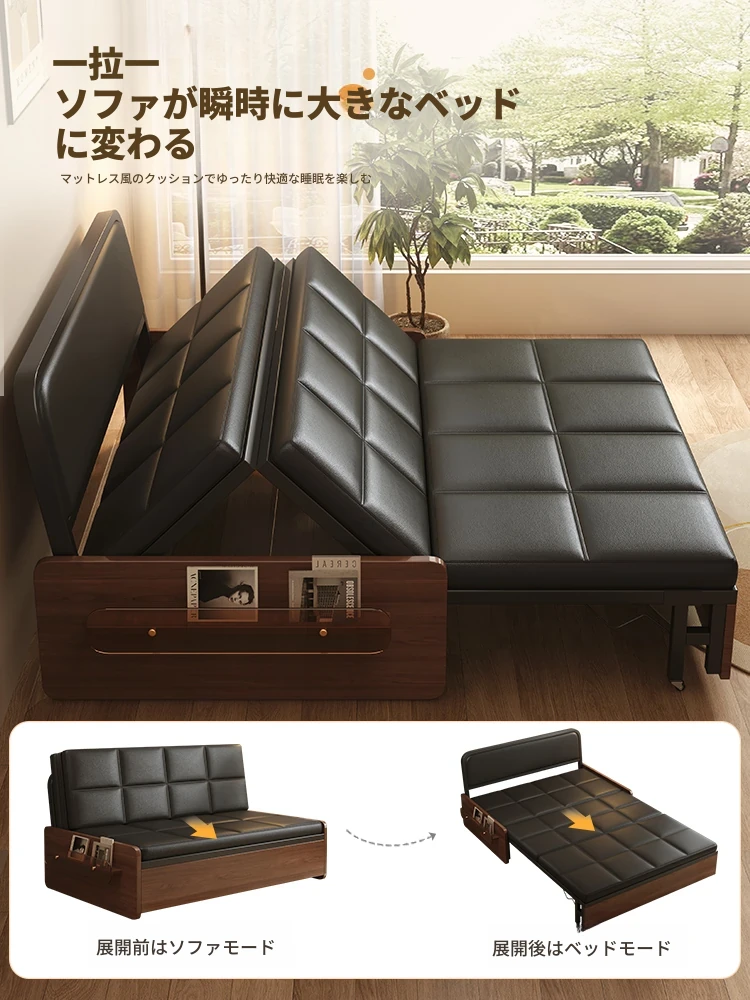 伸縮式ソファベッド|家庭用・リビングに最適!新しいアンティーク風デザインの折りたたみ式ダブル・シングル兼用多機能スライドベッド!快適な眠りとおしゃれな空間を実現!