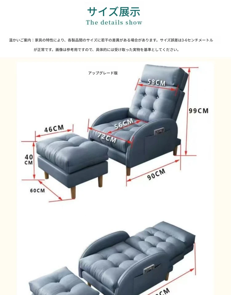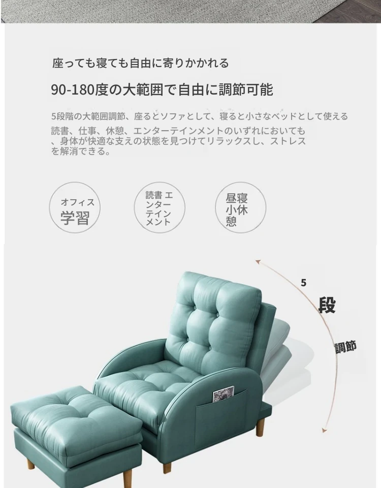 リラックスできる!寝転びながらくつろげる小型ソファ - バルコニーや休憩に最適な快適なリクライニングチェア。人気の一人用ソファ、フェンシーチェアで午後のひとときを贅沢に!