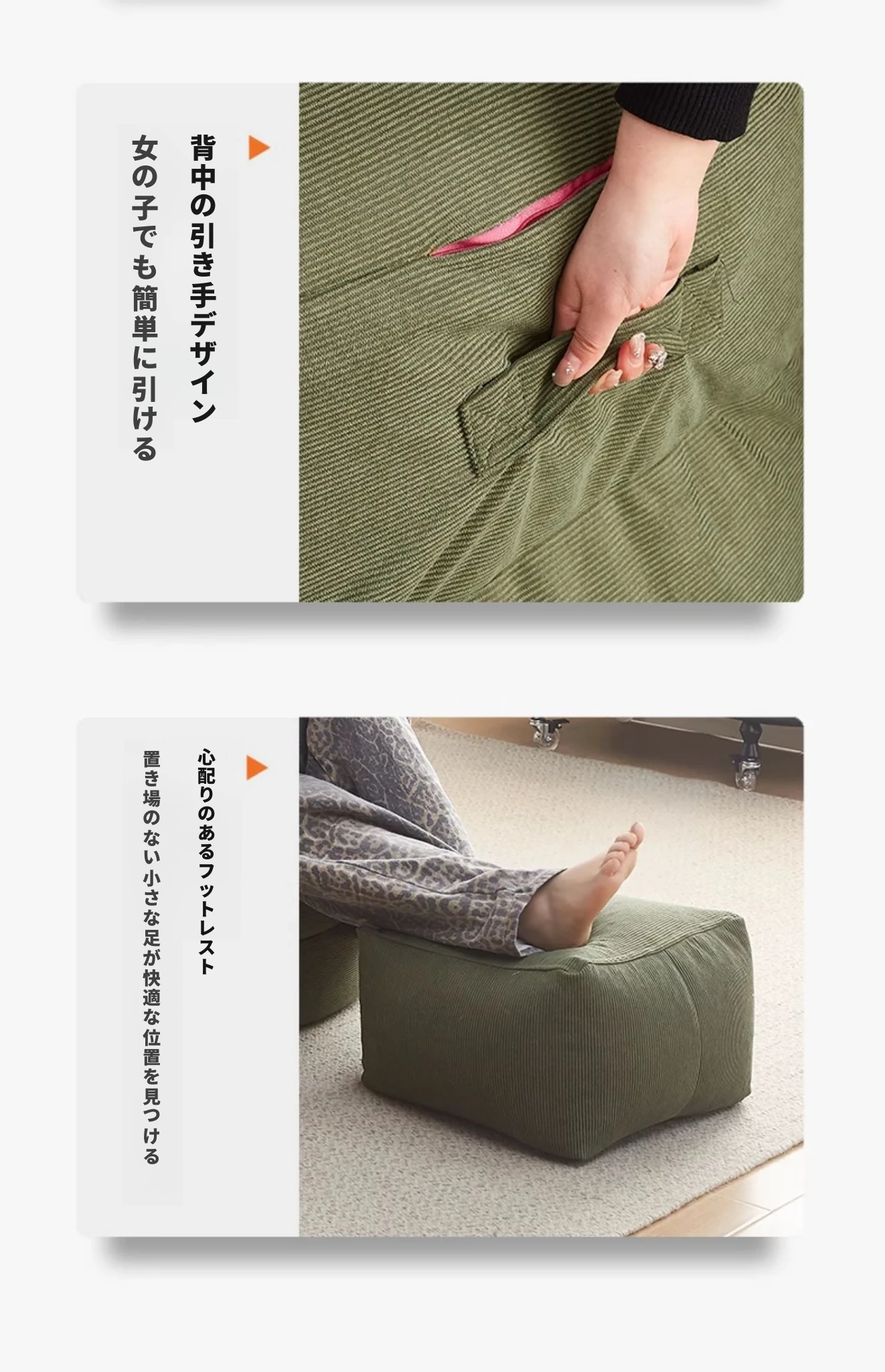 リラックスできるおしゃれなソファ!寝転びながらくつろげるタタミスタイルの一人用ソファ。人気のデザインで、寝室やバルコニー、リビングにもぴったりの休憩スペースを提供します。