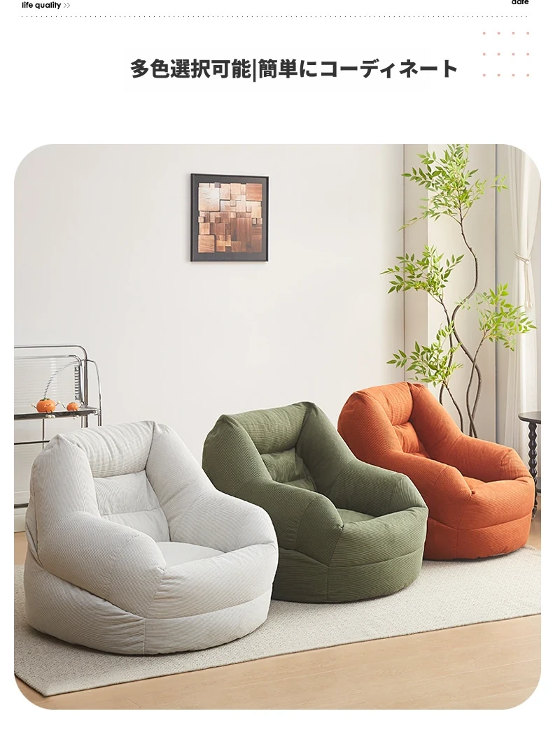 リラックスできるダウンソファ!寝転んでも快適、シングルサイズで省スペース。寝室やバルコニー、リビングに最適。読書やリラックスタイムにぴったりの癒しの椅子です!