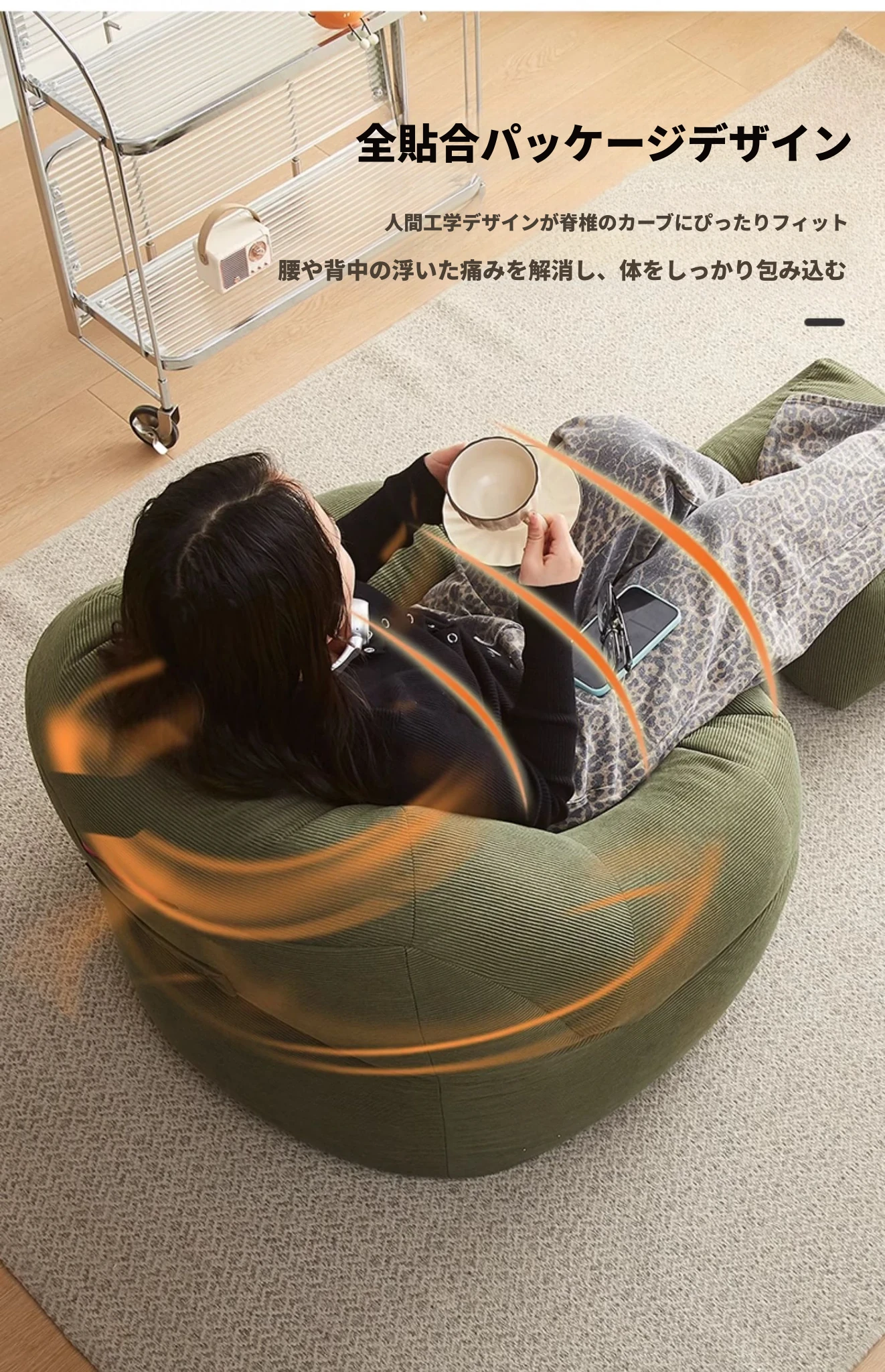 リラックスできる!寝転びもできる一人用毛虫型ソファ - 寝室やバルコニーにぴったりの快適な座椅子、畳にも最適!