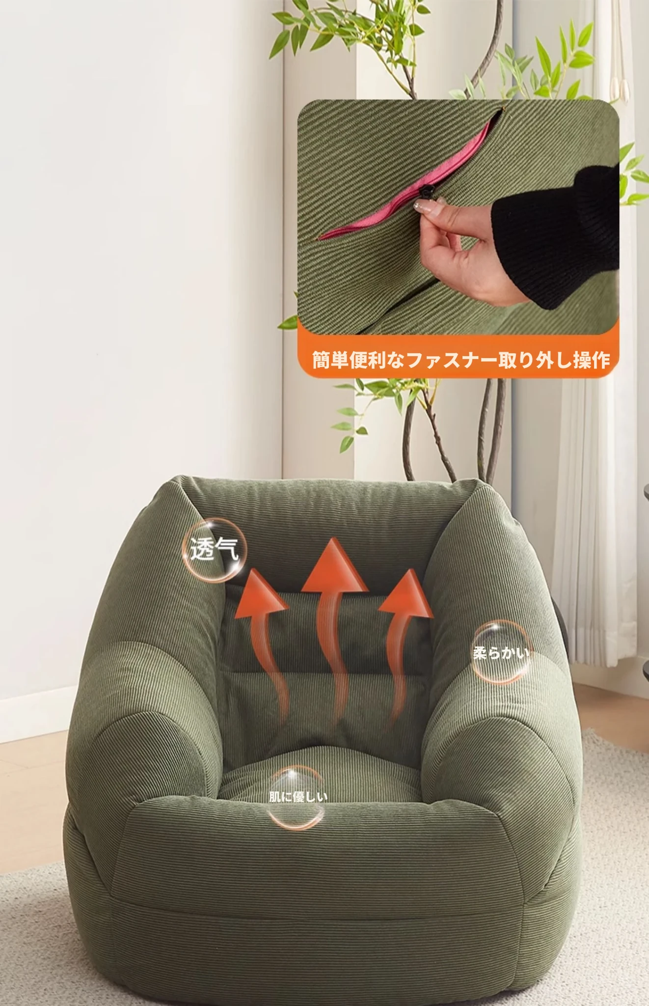 【エコ粒子】厚手コーデュロイ-オリーブグリーン-フットレスト付き