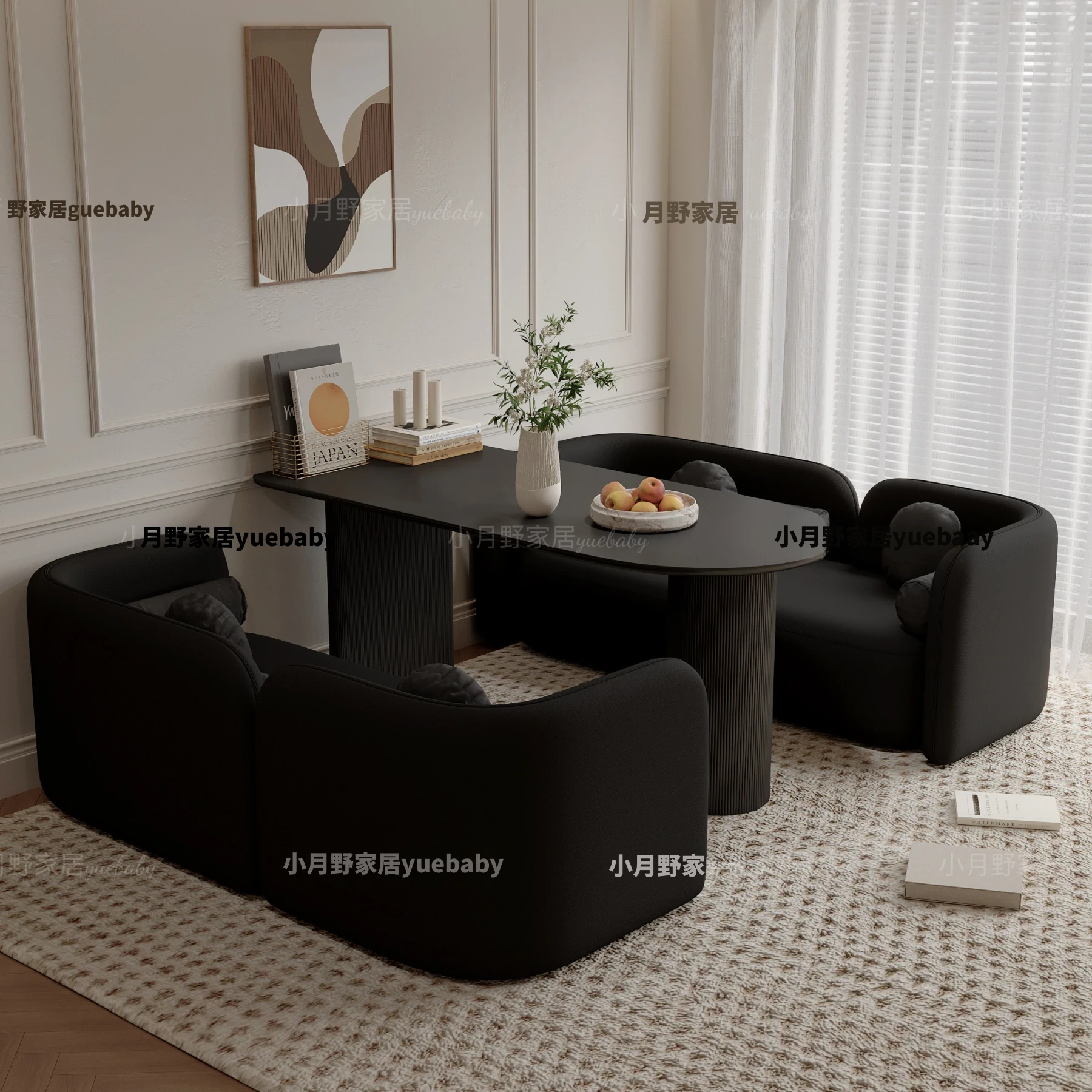 黒色:黒いテーブル180*70*75+2脚ソファ2メートル