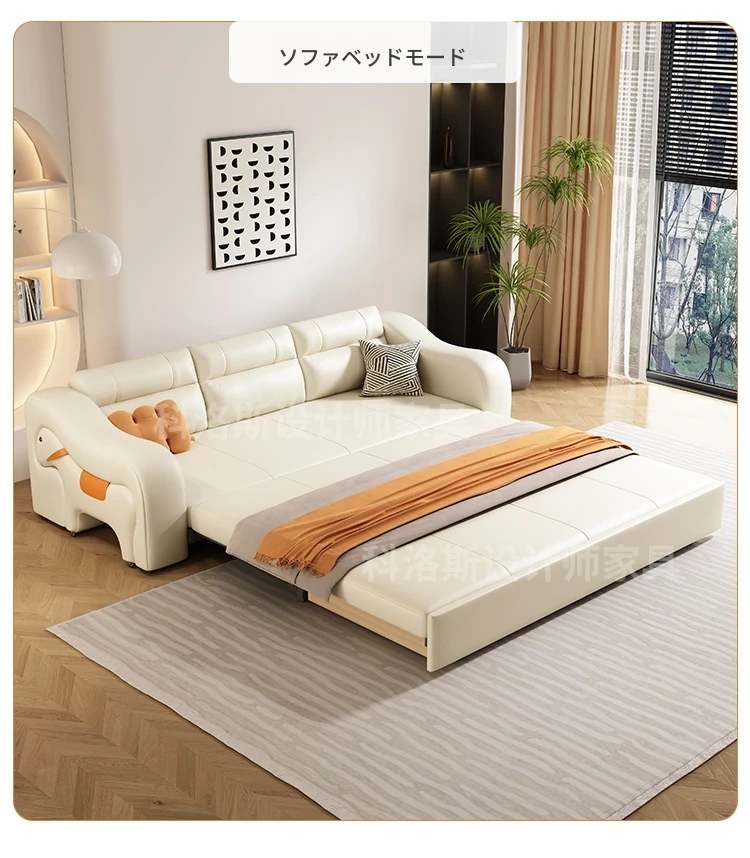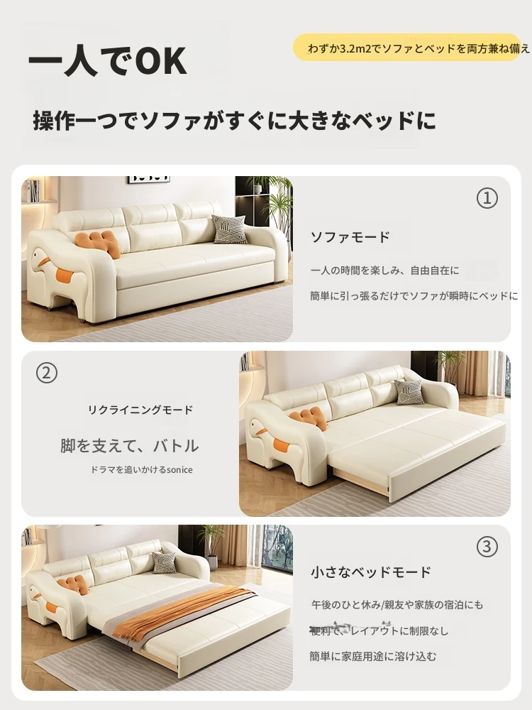 クリーム風の小型リビング用ソファベッド、折りたたみ式で2WAY使用可能!2025年新作、伸縮可能なダブルサイズの高級ソファベッドで、快適な座り心地と眠りを提供します。おしゃれで機能的な空間を演出!