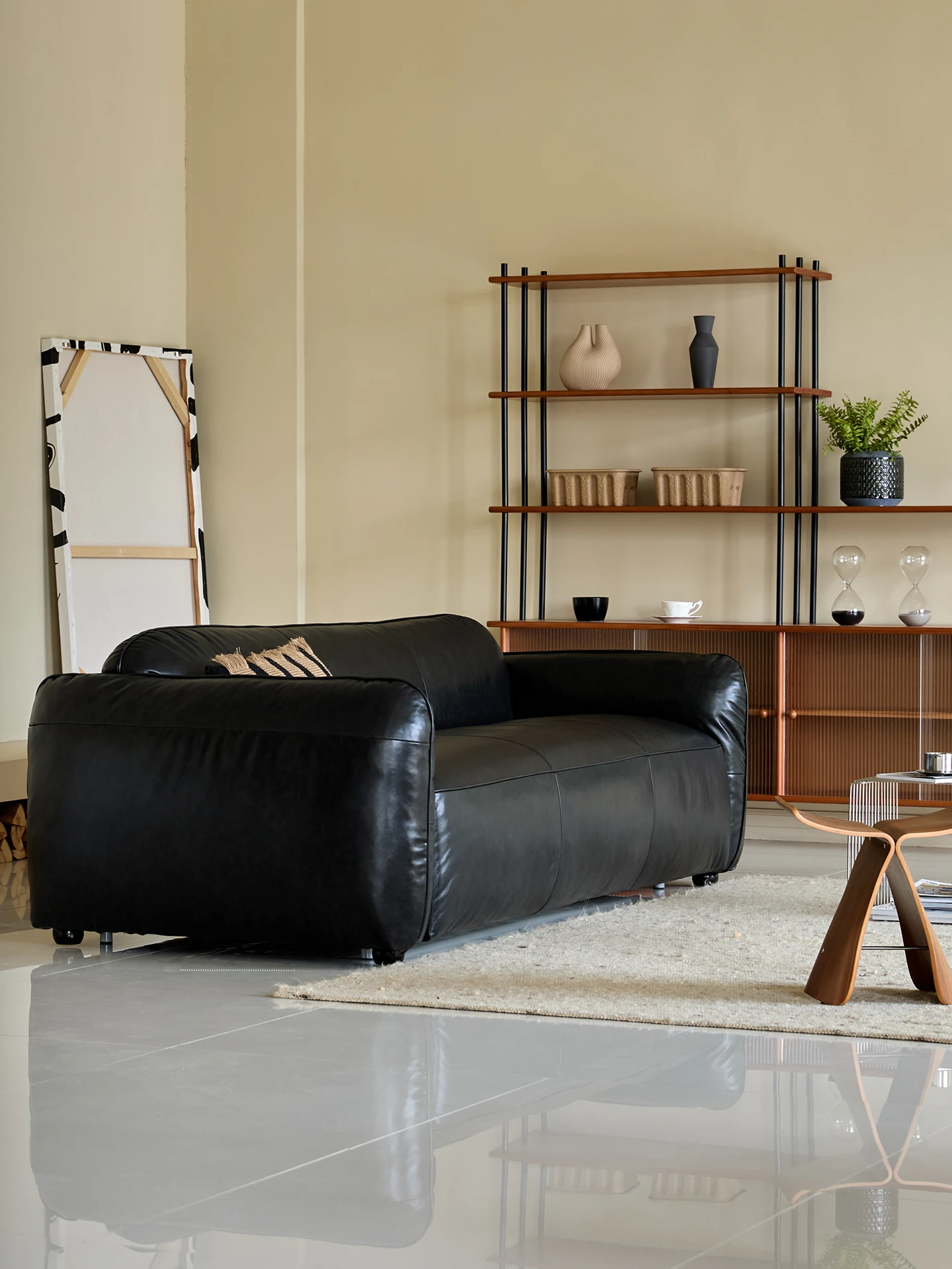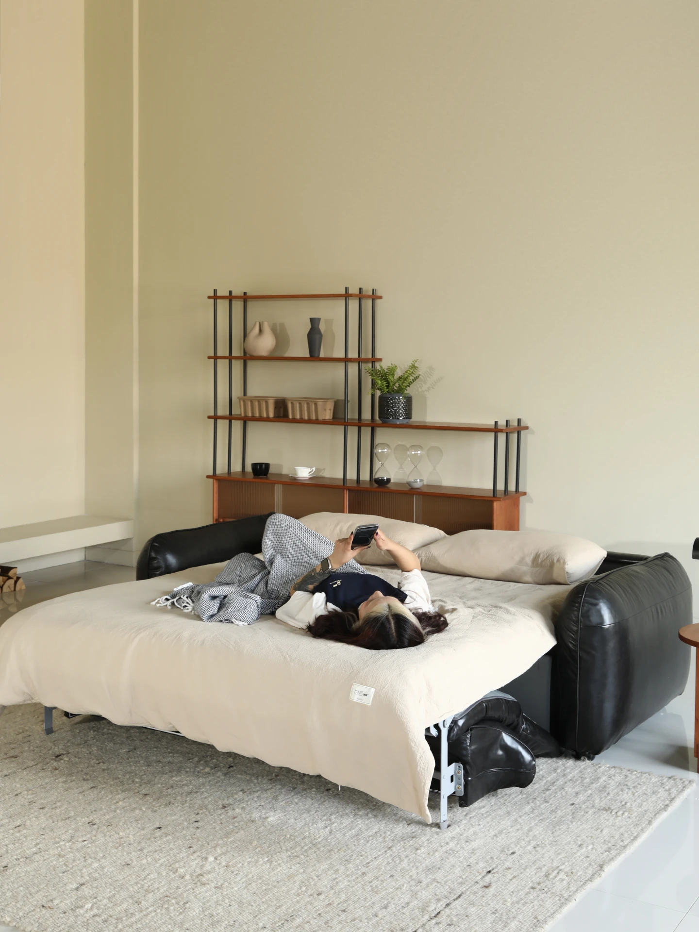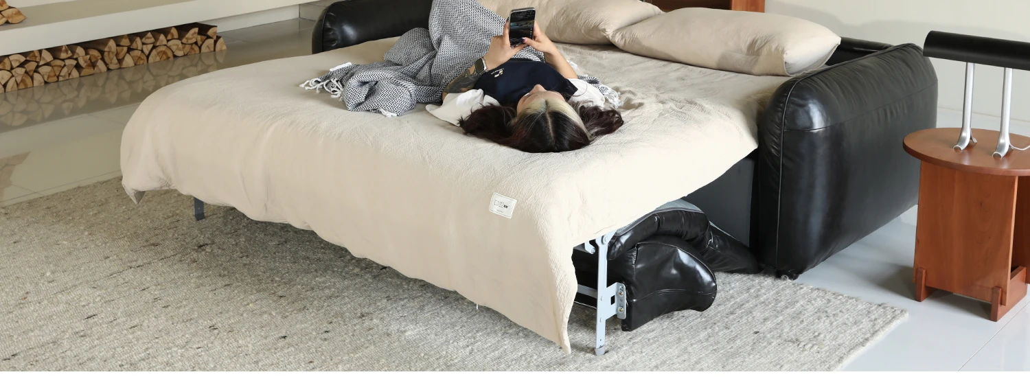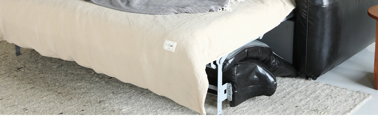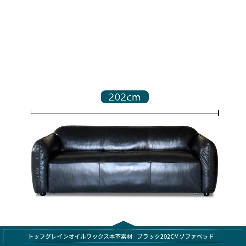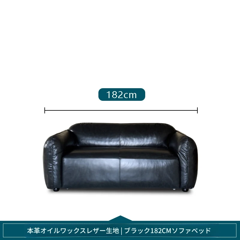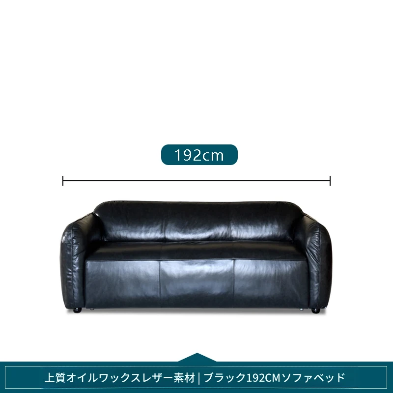 DAHOON 知古ソファベッド - バウハウス風のヴィンテージデザイン、上質なオイルワックス牛革使用、ふわふわのダウンクッションで快適な折り畳み2WAYソファベッド!あなたのリビングにスタイリッシュなアクセントを!