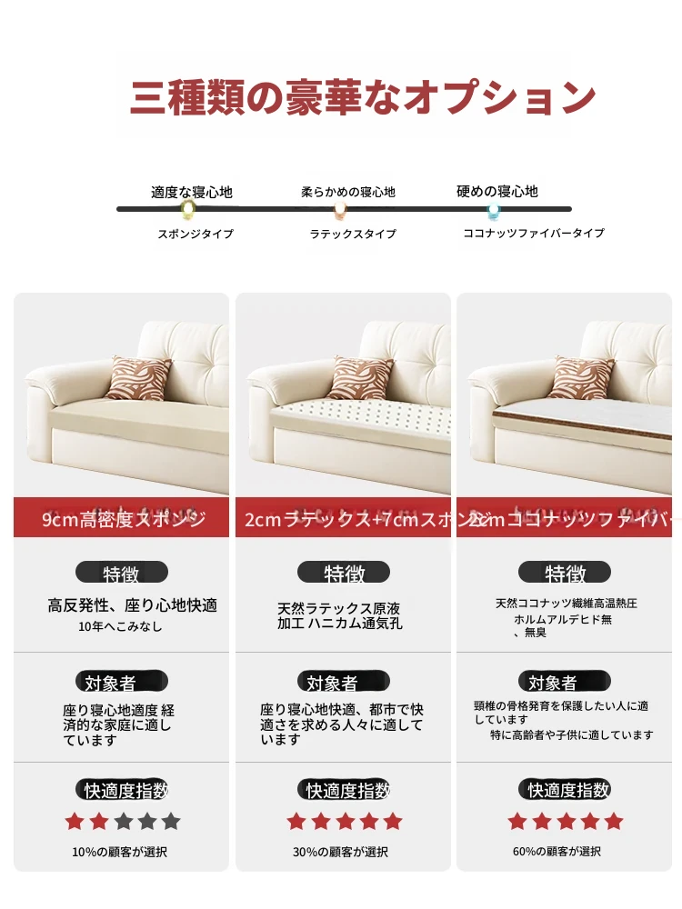 含扶手2.58米-快適ラテックスモデル-収納付き