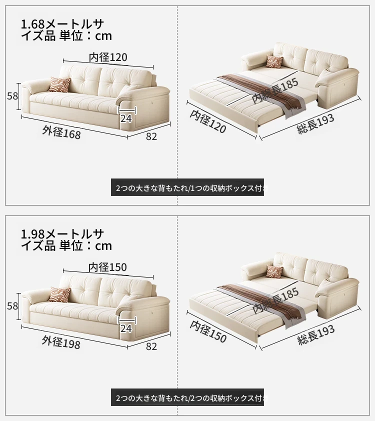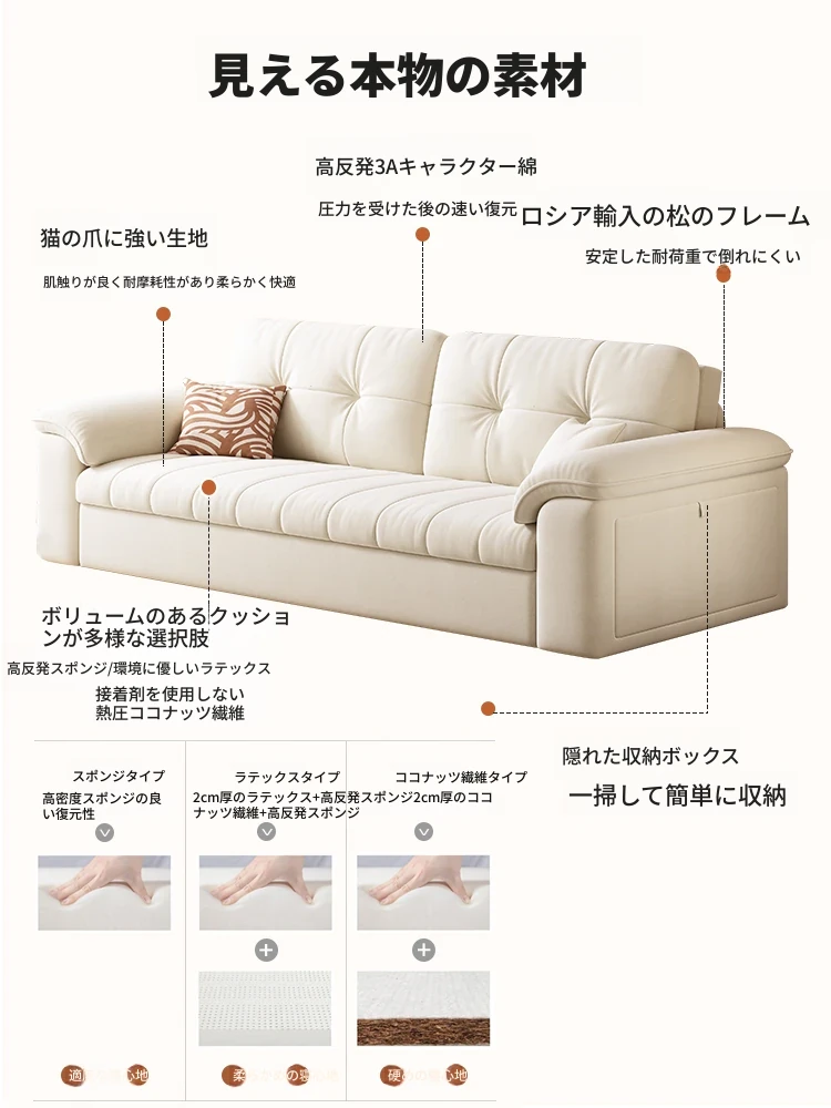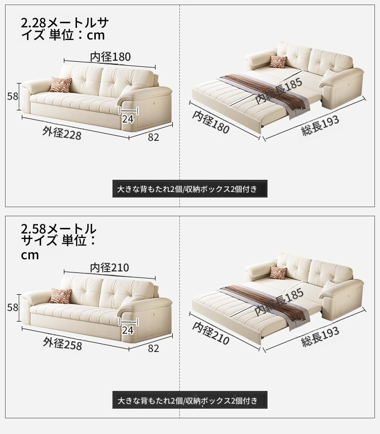 含扶手2.28米-高反発ウレタンモデル-収納付き