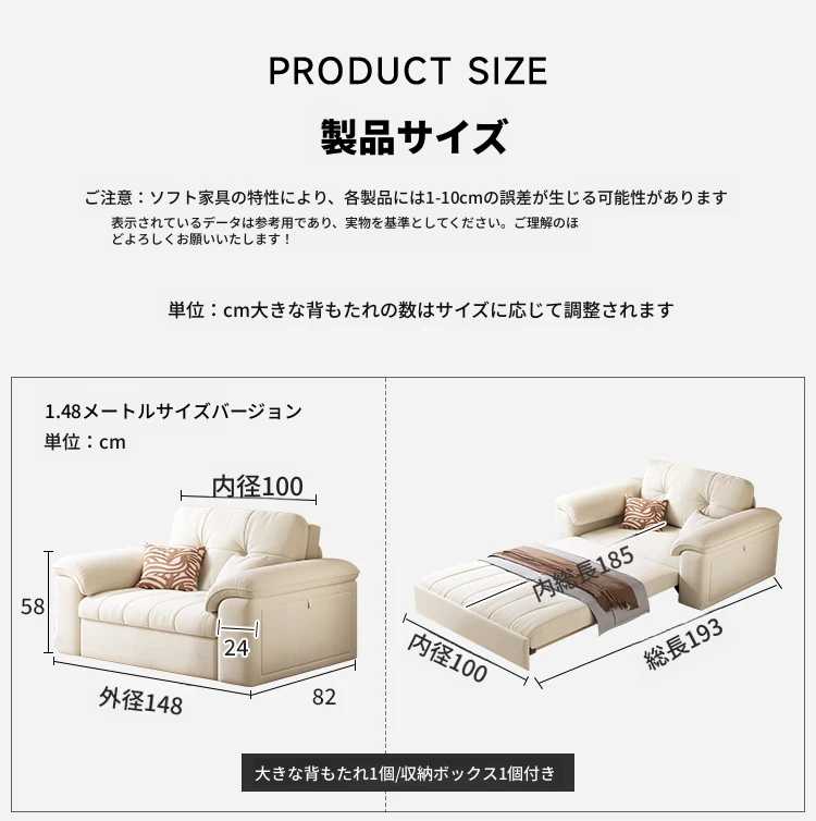 含扶手1.48米-護脊ココナッツモデル-収納付き