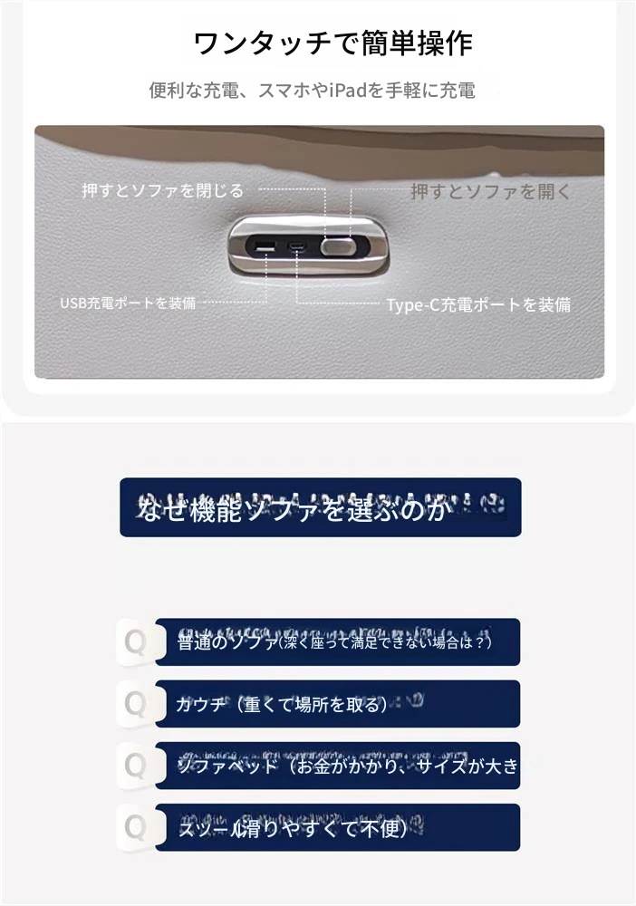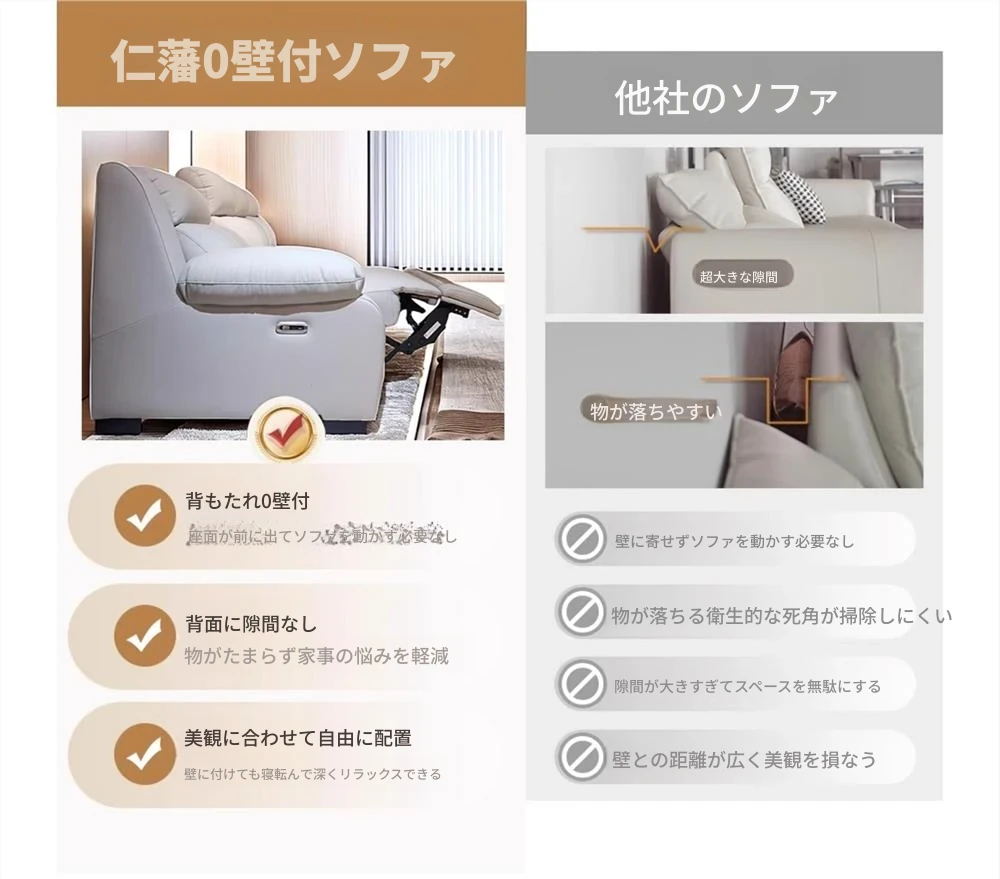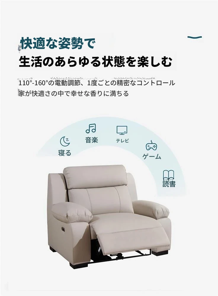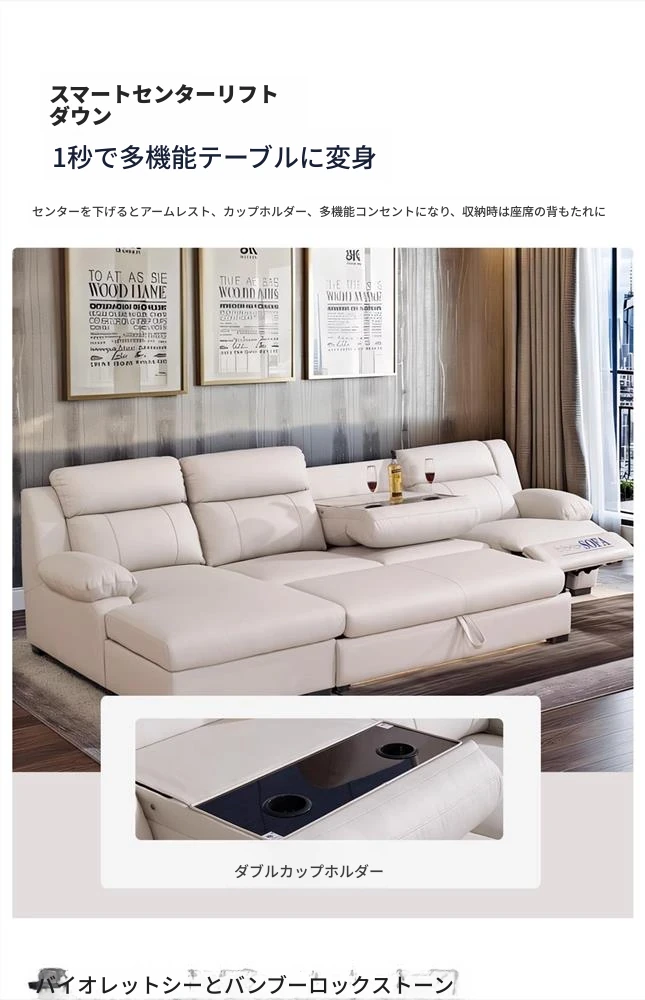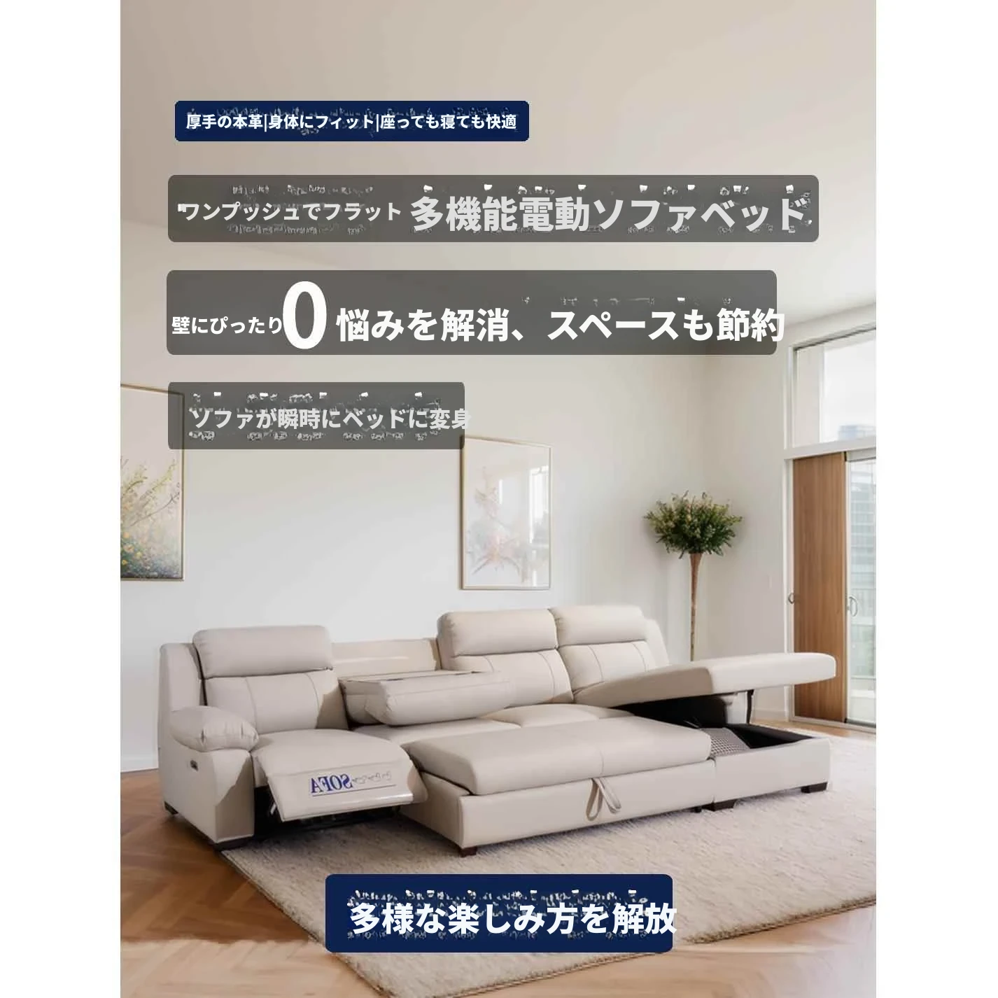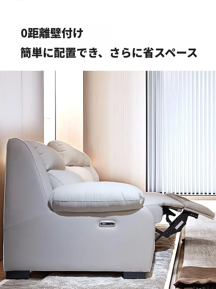 電動多機能ソファ|壁にぴったりの小型スペース向け!宇宙船デザインの本革製、フラットに伸びるデイベッドタイプ。貴婦人スタイルで収納も完備!快適な空間を演出する理想的なソファベッドです。