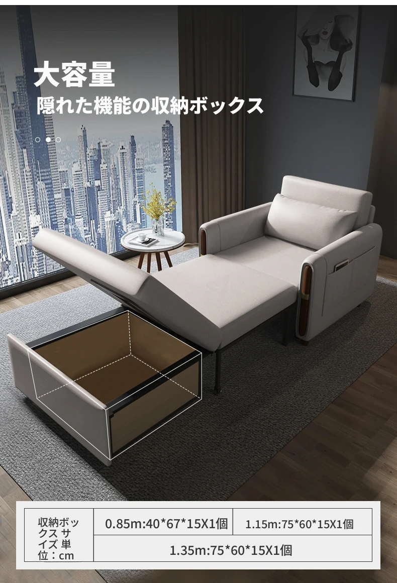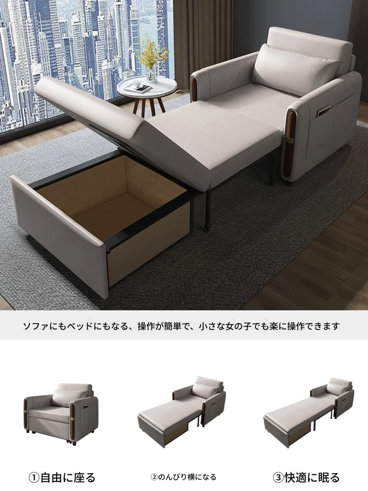折りたたみソファベッド アメリカンスタイル 多機能 リビングにぴったり!小型住宅にも最適な収納付き、座る・寝る両用の伸縮式ベッド。今話題のデザインで、おしゃれな空間を演出!