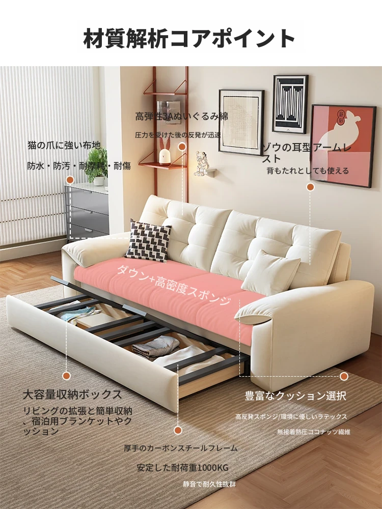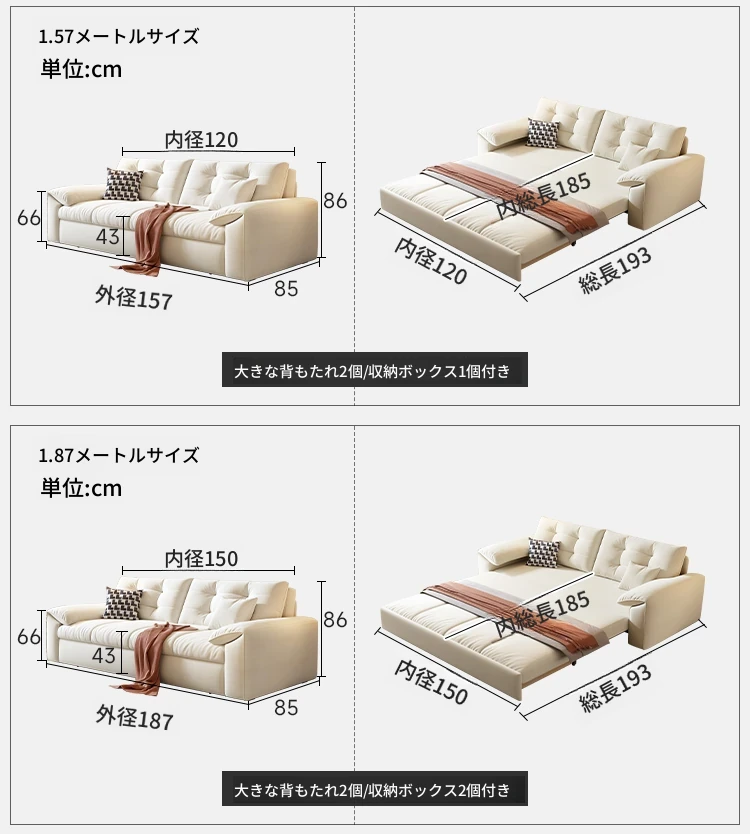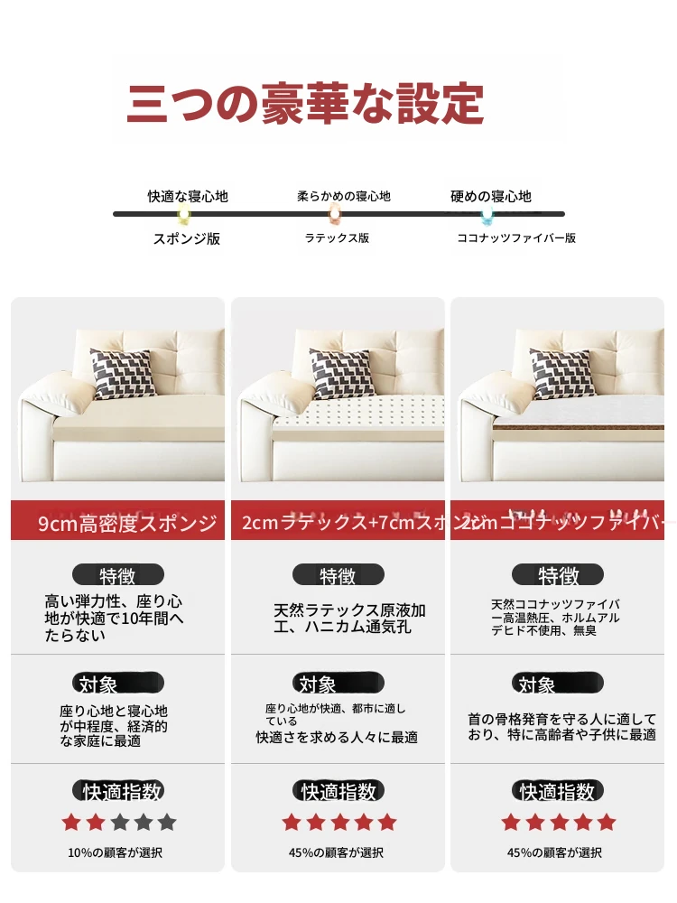 (クッション性がある座り心地)4.57mソファベッド【天然ラテックスタイプ+収納ボックス】