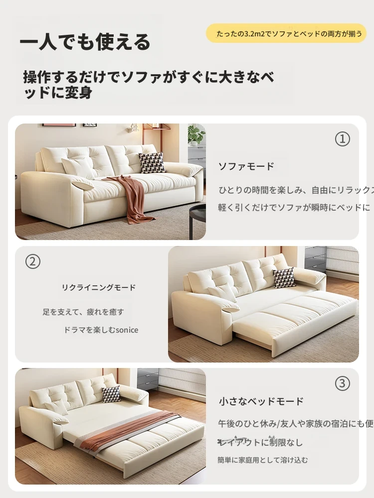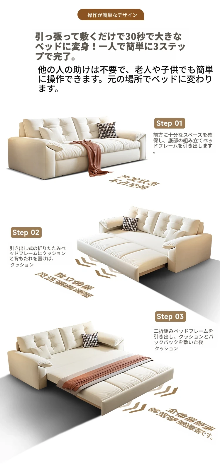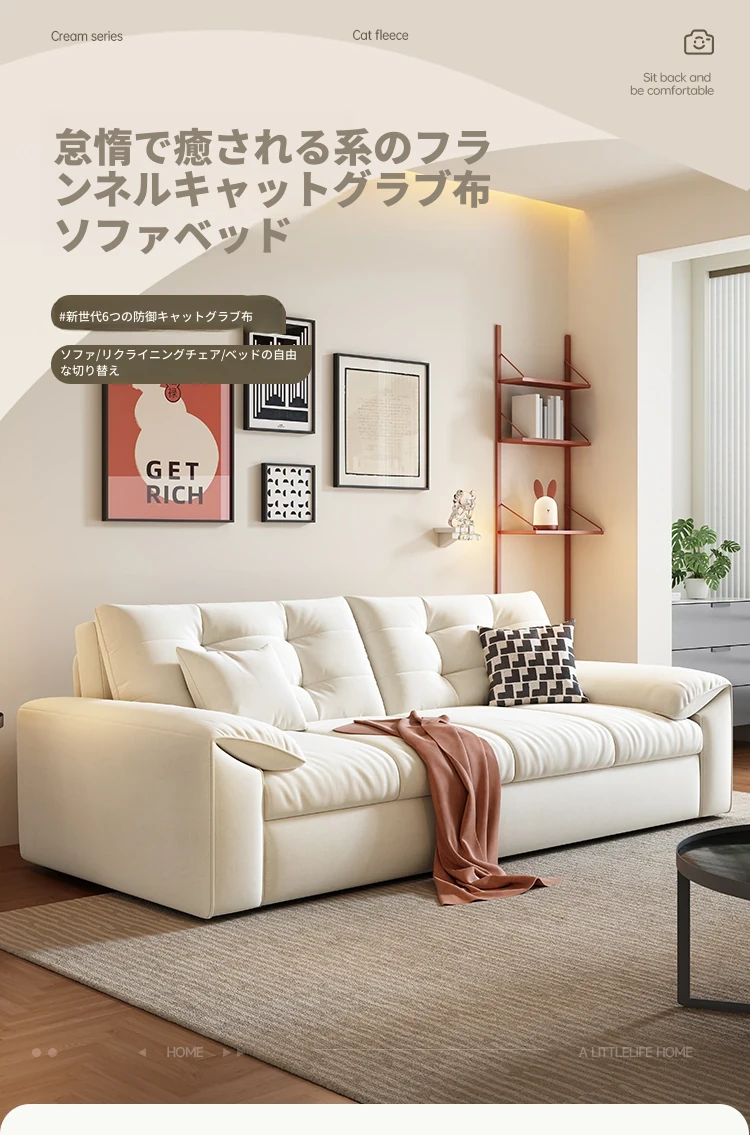 折りたたみ式雲のソファベッド|クリーム風の猫爪防止フリース素材|リビングに最適なコンパクトデザイン|収納可能で小さなお部屋にもぴったり!