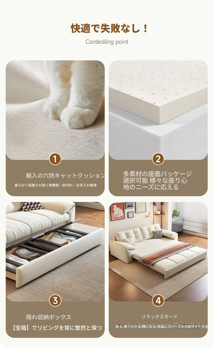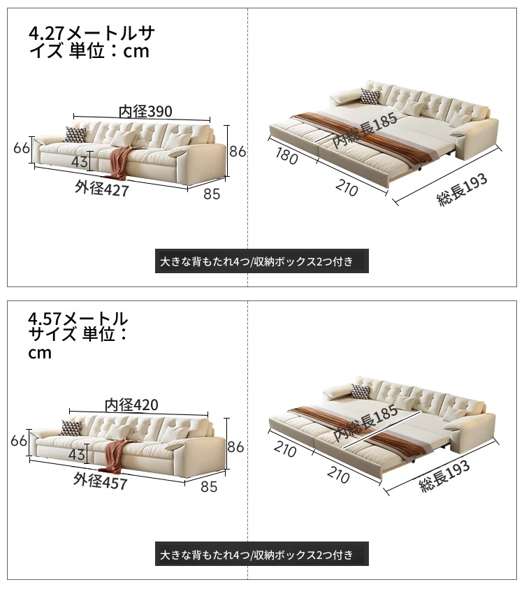 (クッション性がある座り心地)4.27mソファベッド【天然ラテックスタイプ+収納ボックス】