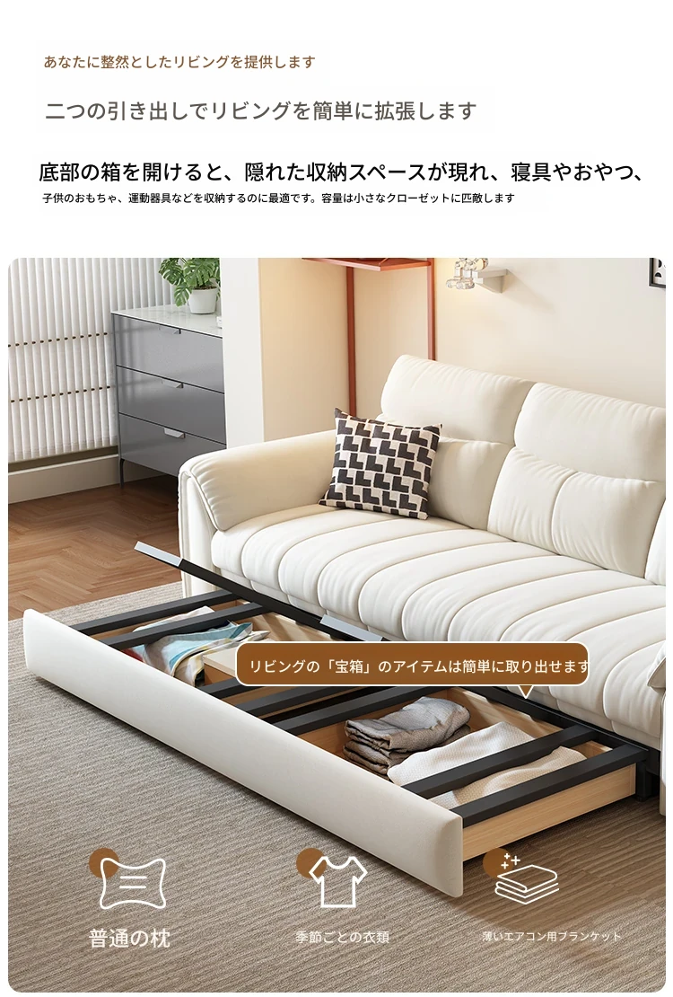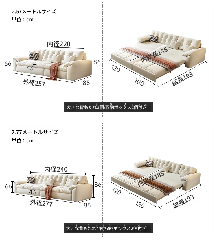 (クッション性がある座り心地)2.77mソファベッド【天然ラテックスタイプ+収納ボックス】