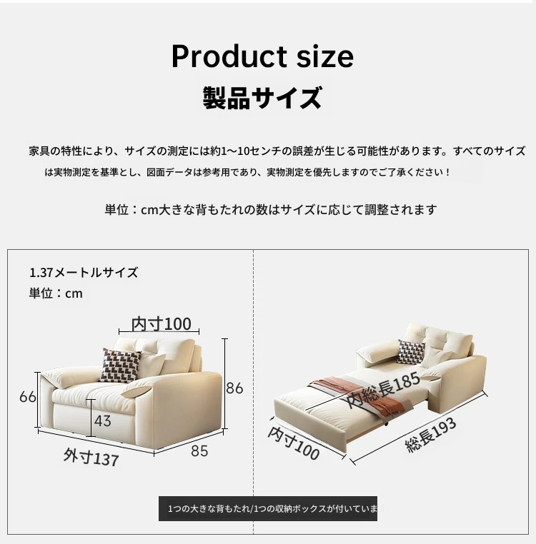 (適度な硬さ)1.37mソファベッド【粉なしスポンジタイプ+収納ボックス】