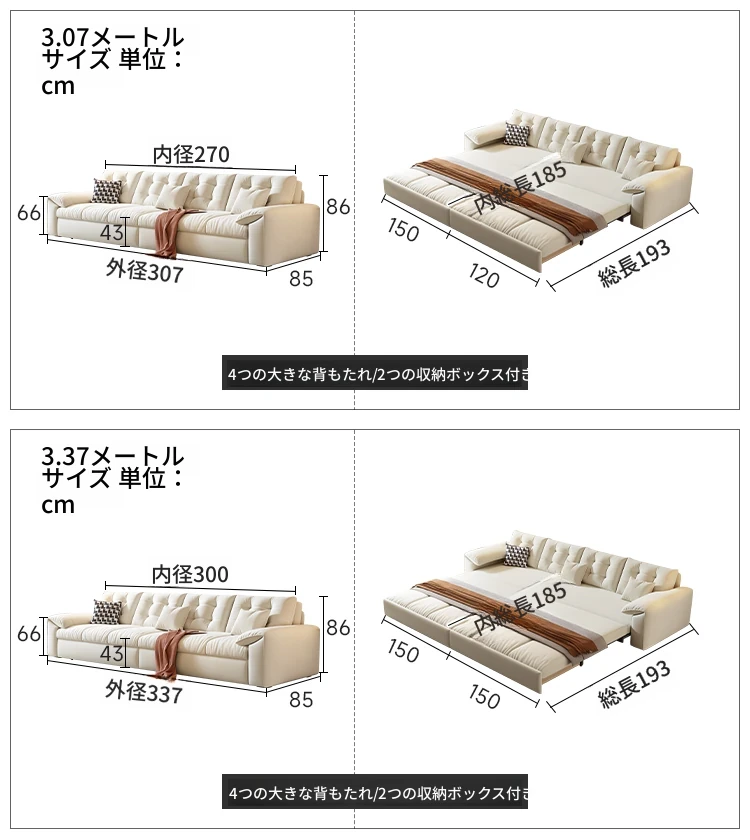 (適度な硬さ)3.37mソファベッド【粉なしスポンジタイプ+収納ボックス】