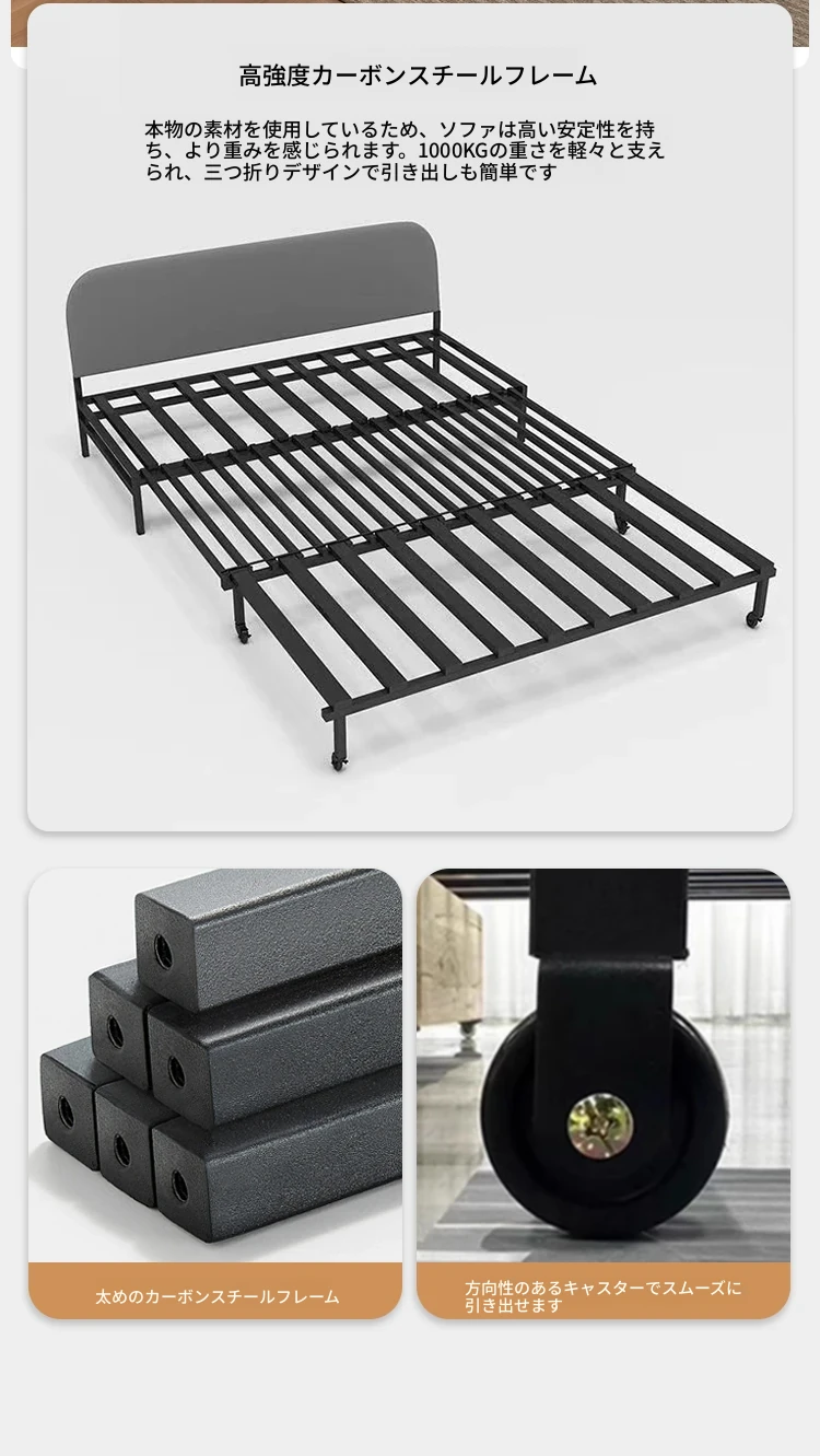 (適度な硬さ)4.57mソファベッド【粉なしスポンジタイプ+収納ボックス】