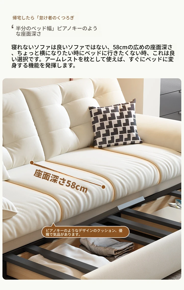 (クッション性がある座り心地)2.17mソファベッド【天然ラテックスタイプ+収納ボックス】