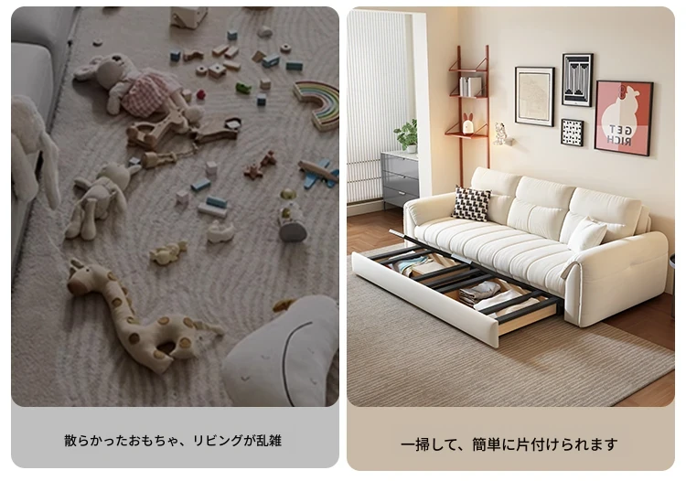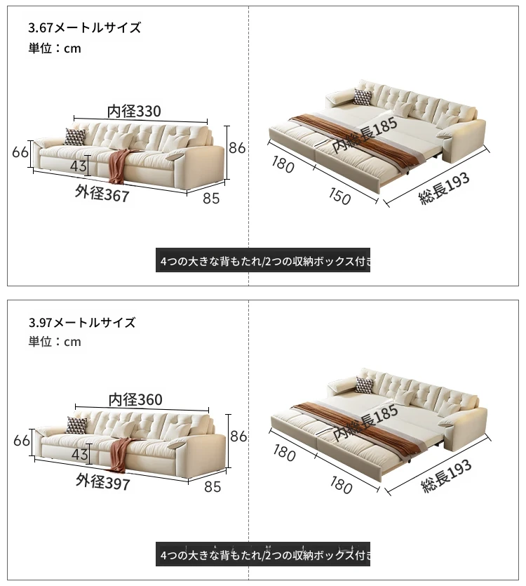 (適度な硬さ)3.67mソファベッド【粉なしスポンジタイプ+収納ボックス】