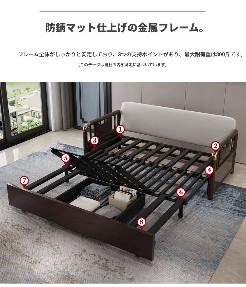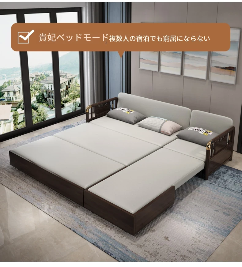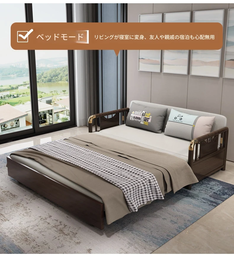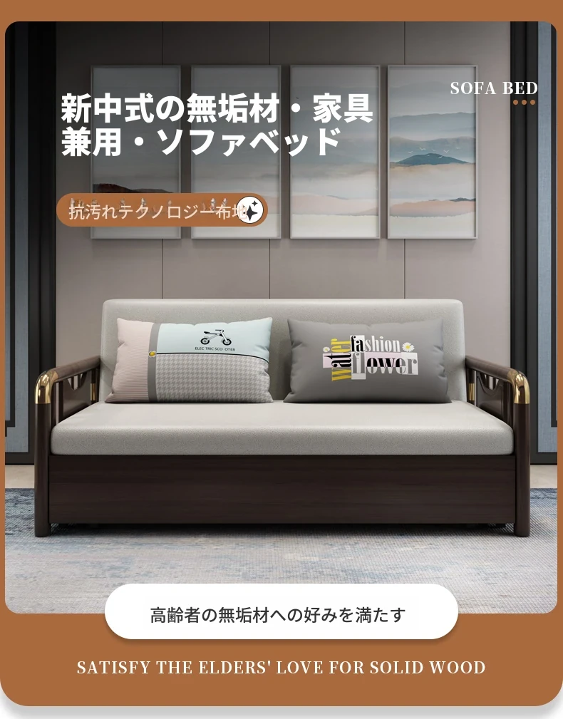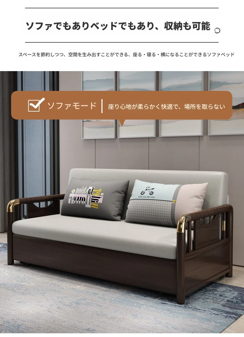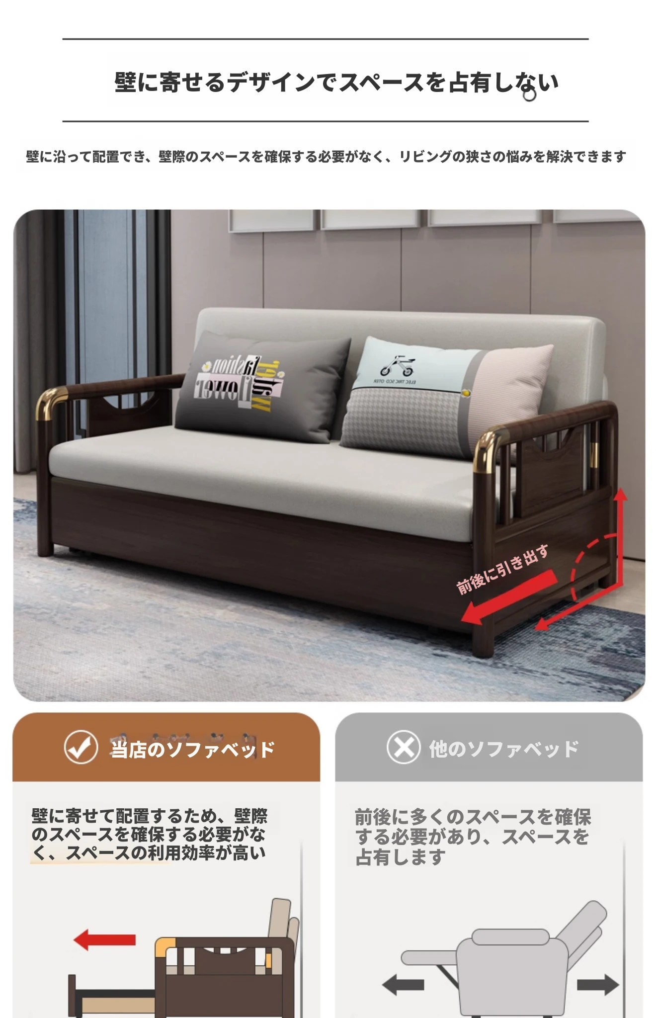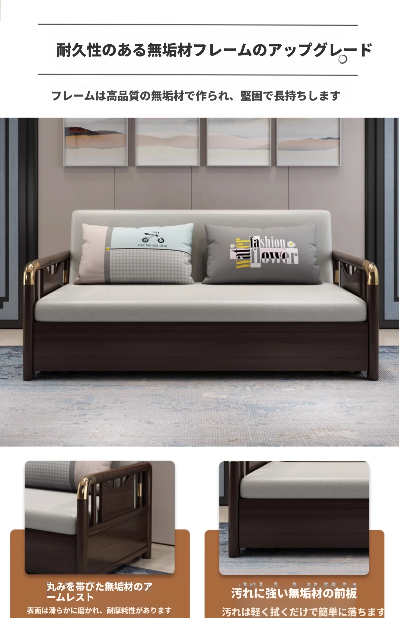 折りたたみ式ソファベッド|リビングにも最適な軽やかでラグジュアリーなデザイン|一人暮らしや狭小スペースにぴったりの多機能天然木製ソファベッド|おしゃれなインフルエンサーおすすめ!