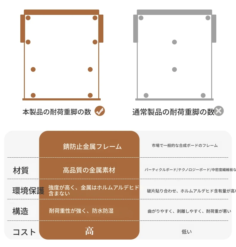 フェイスタイプ2.6メートルココナッツブラウンモデル収納付き 薄灰色