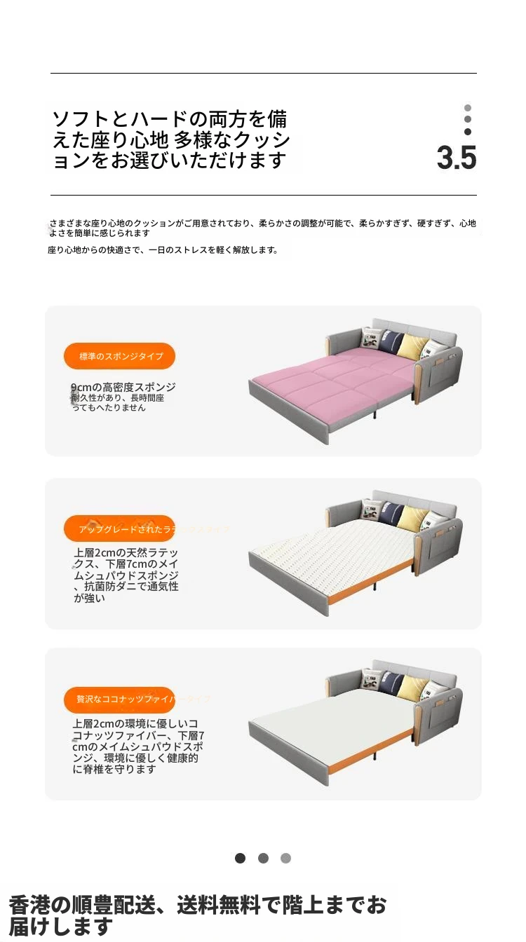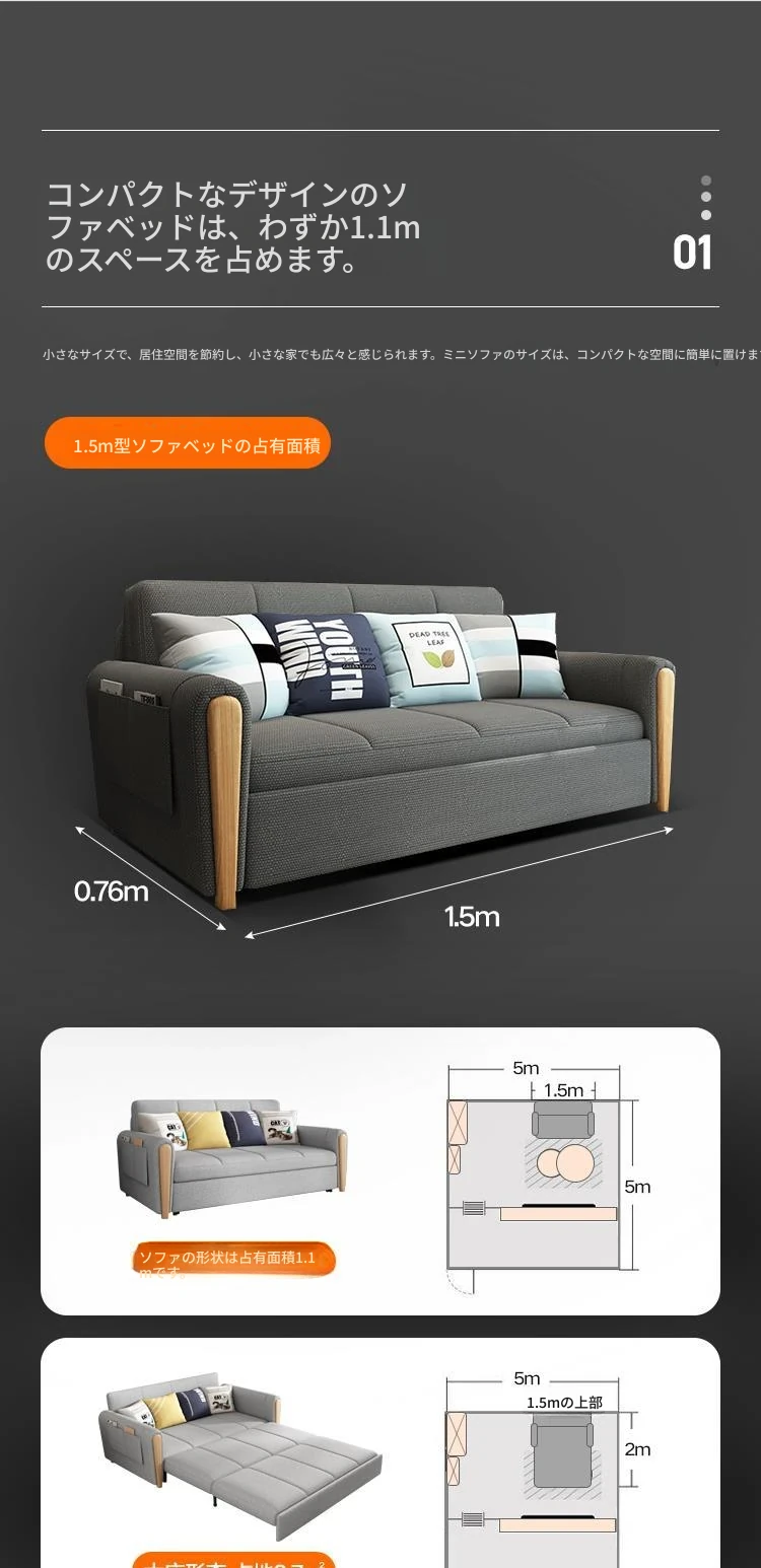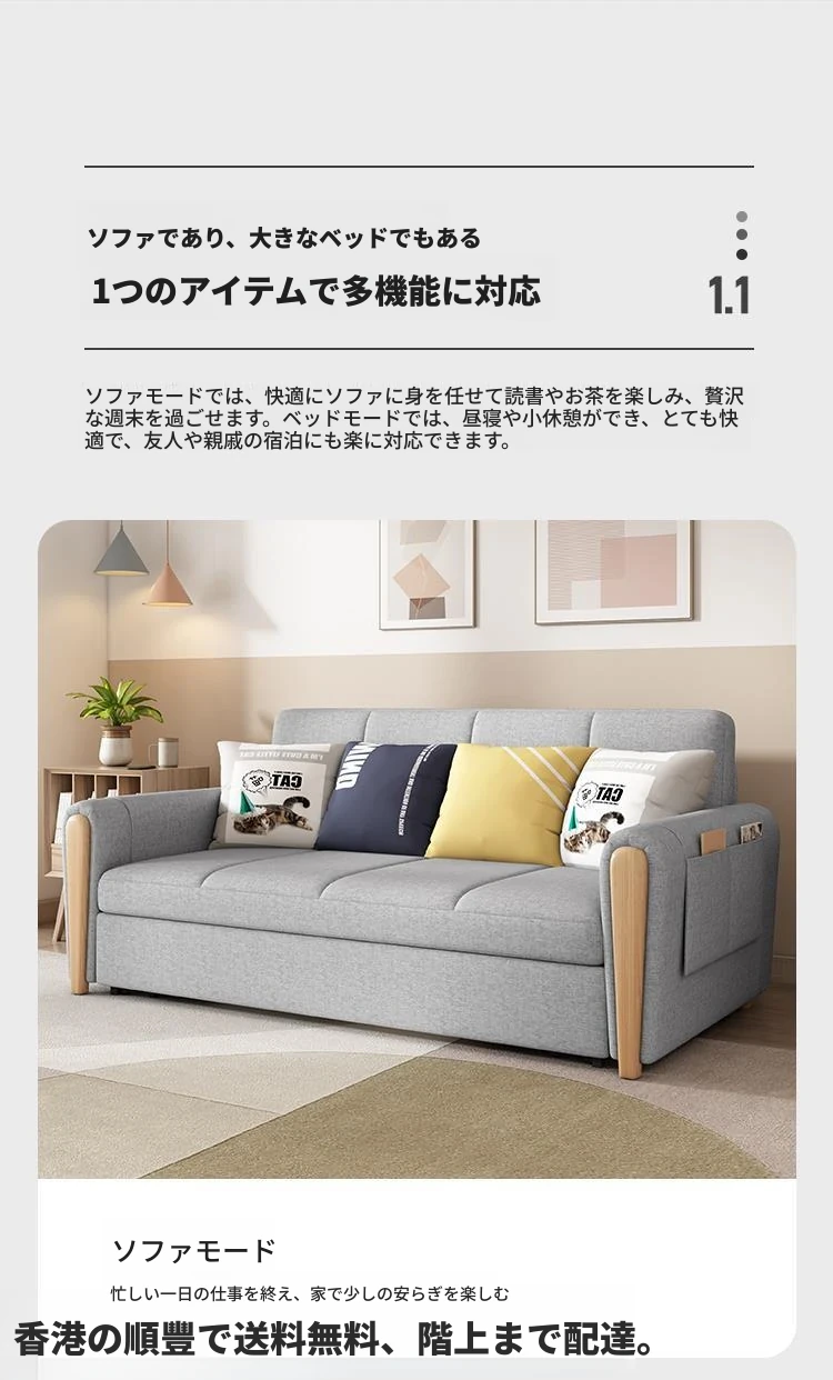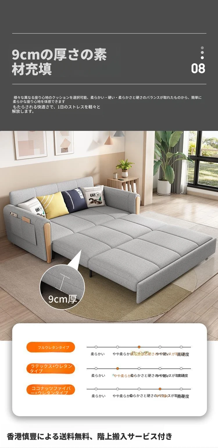 【香港送料無料】フィマシソファベッド - テクノロジー布製、折りたたみ式マルチファンクションソファベッド、コンパクトなリビングルームに最適!