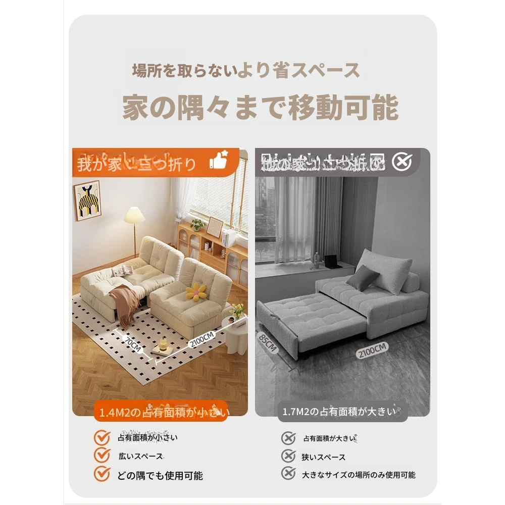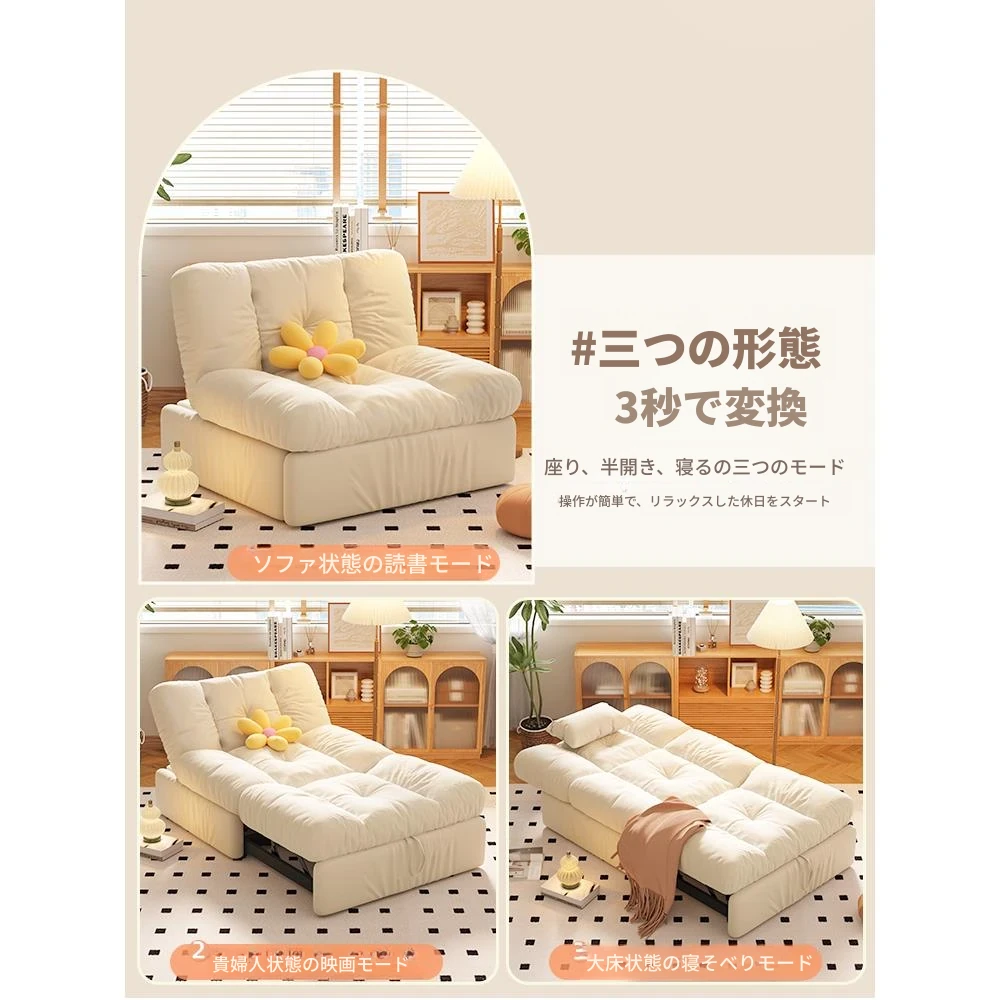 【香港送料無料】2024新作!ソファベッド・シングル折りたたみ二用途、小型住宅に最適なスリムデザイン、ふんわり雲のような優しい質感。快適な寝心地を実現した折りたたみベッド!