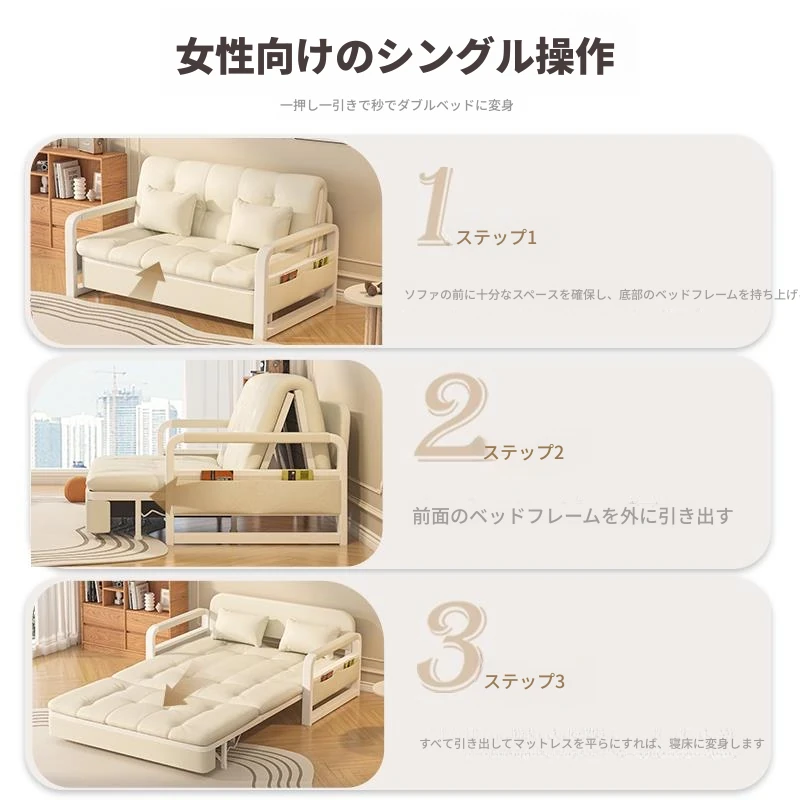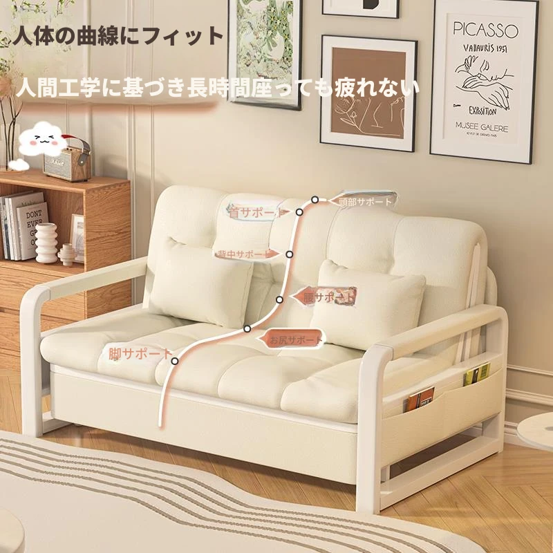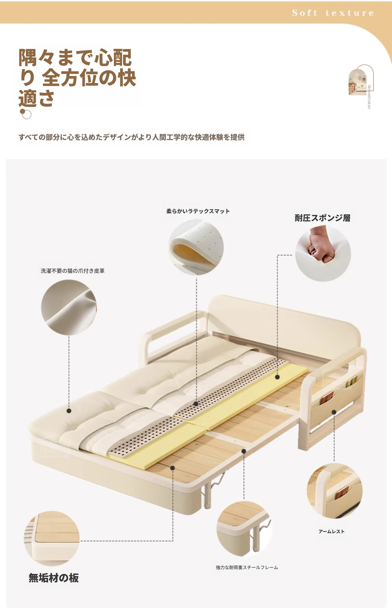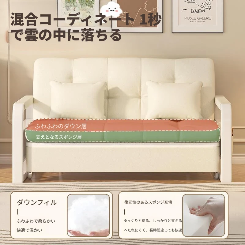 【香港送料無料】2024新作!折りたたみソファベッド・リビングに最適な雲のようなクリーム色のコンパクトデザイン。伸縮可能でスペースを有効活用!スタイリッシュな小型住居にぴったりのアイテムです!