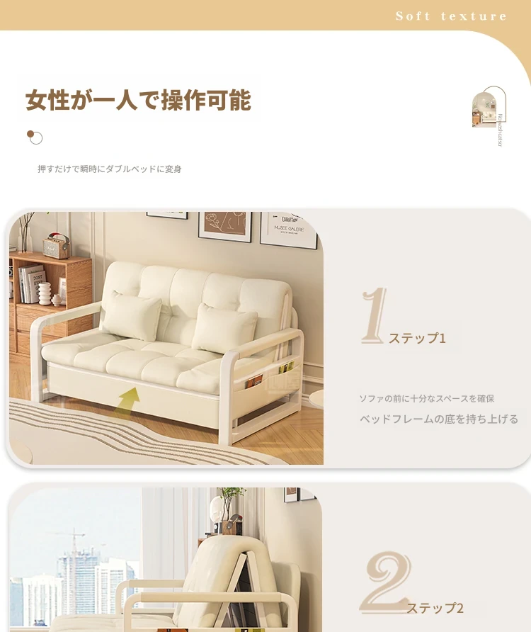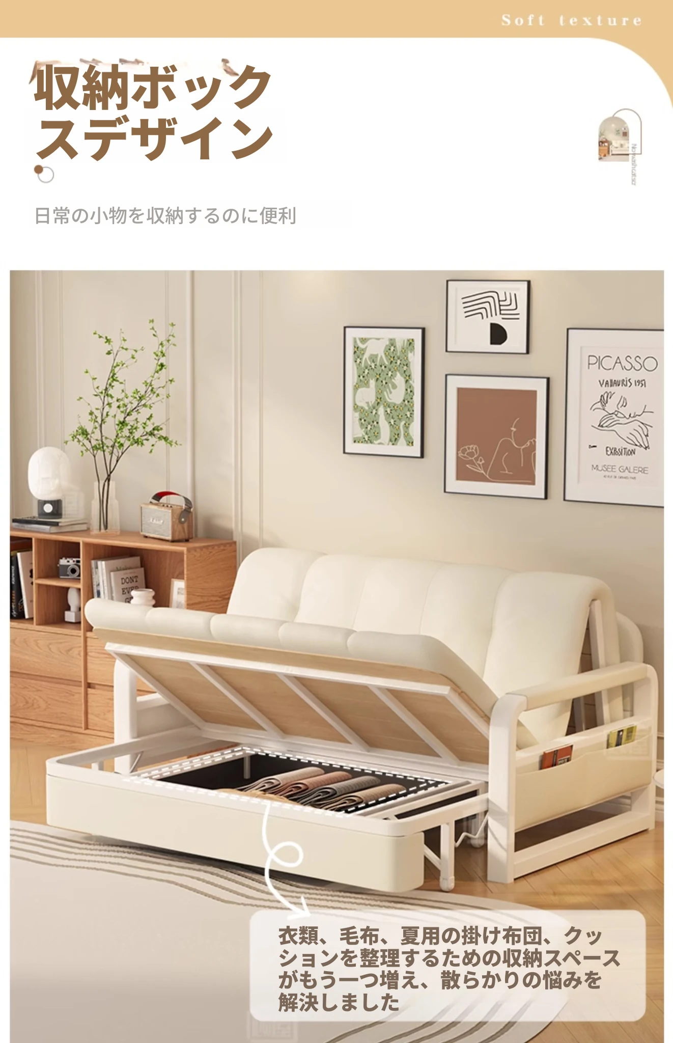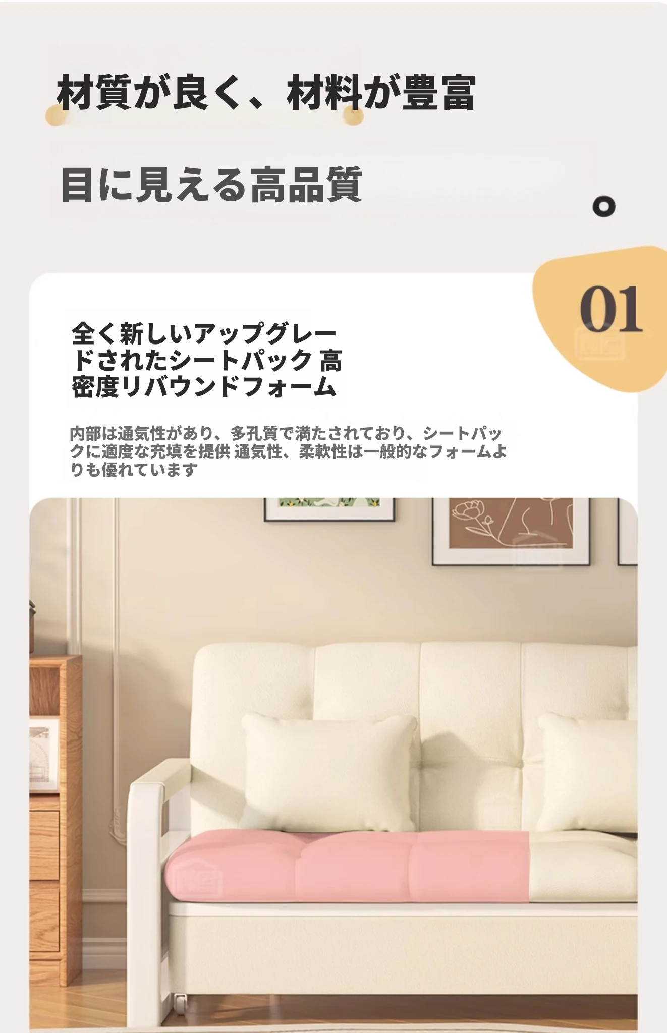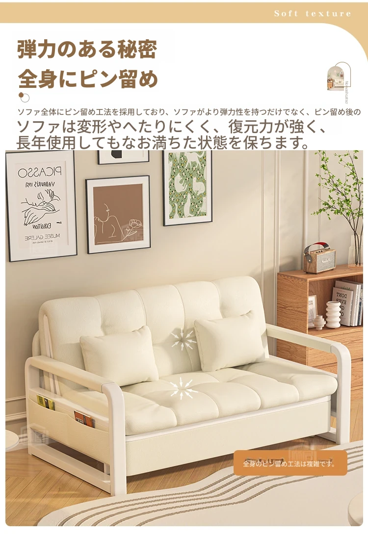 【香港送料無料】2024新作!折りたたみソファベッド・リビングに最適な雲のようなクリーム色のコンパクトデザイン。伸縮可能でスペースを有効活用!スタイリッシュな小型住居にぴったりのアイテムです!