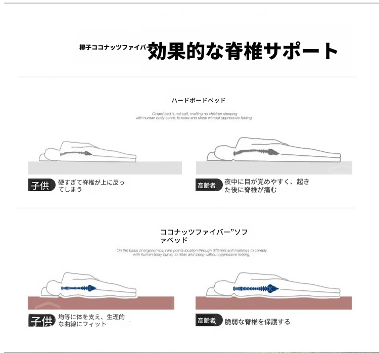 【脊椎保護ココナッツファイバータイプ⭐幅0.82メートル】アイボリー+収納付き