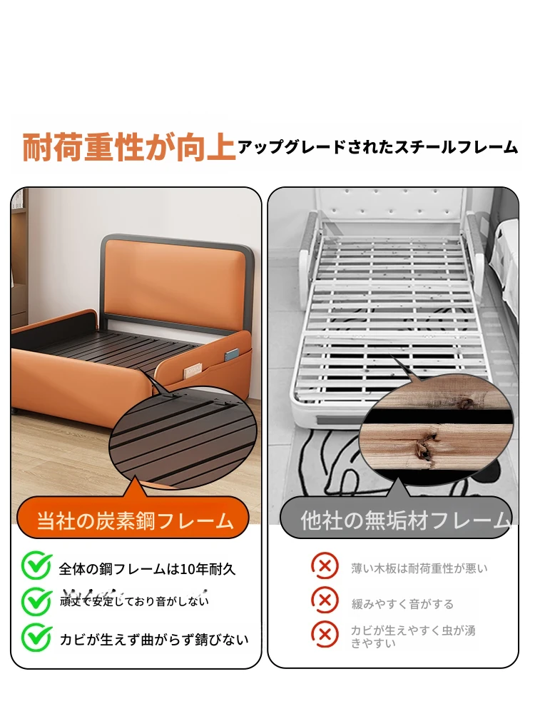 【収納付きココナッツブラウンタイプ】幅0.9メートルオレンジ色