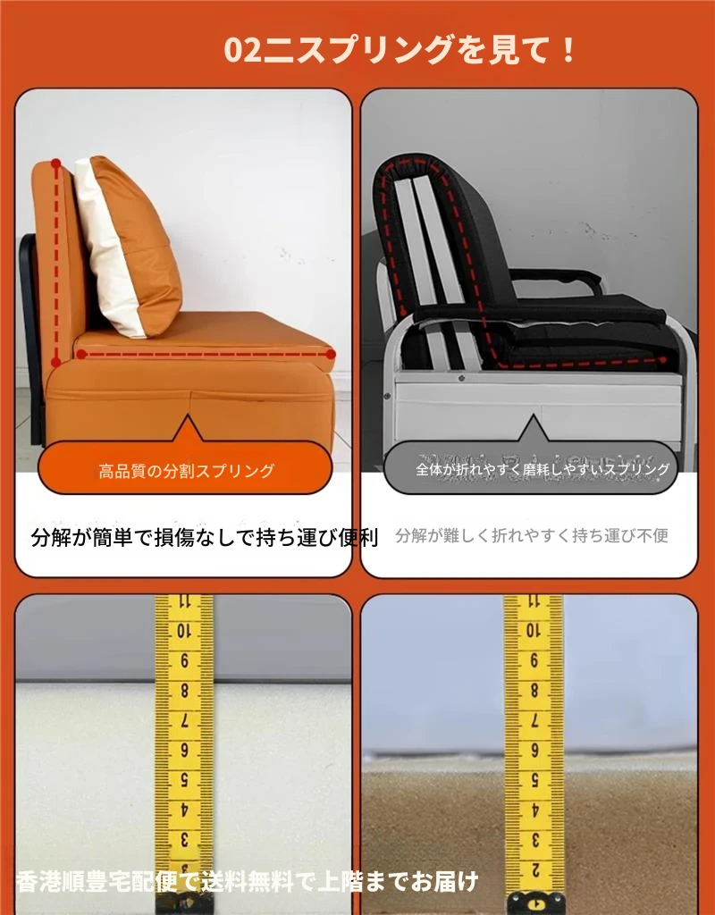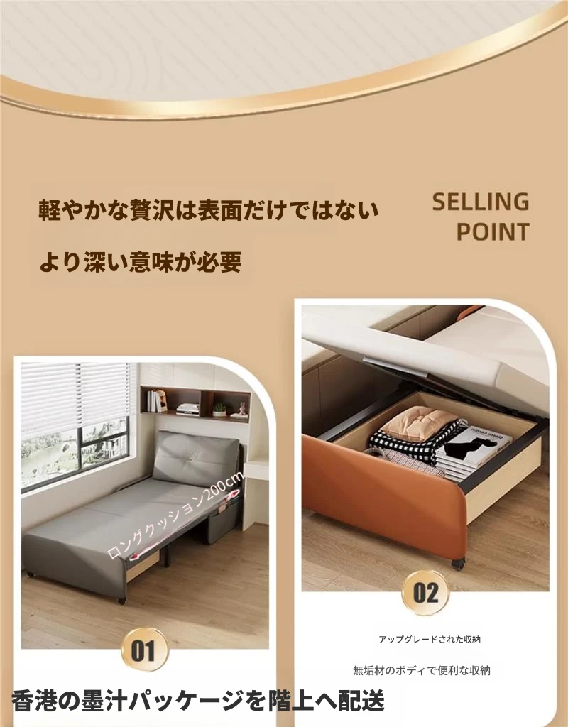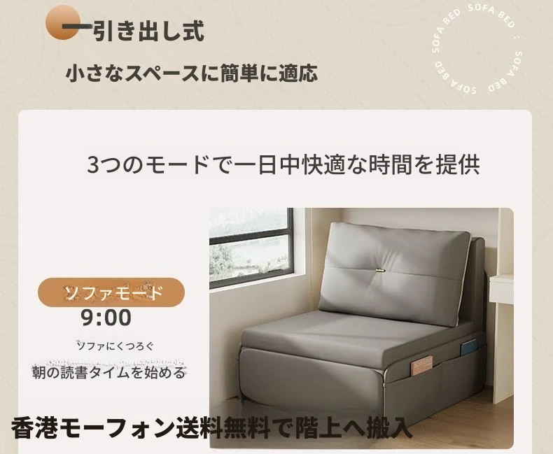【香港送料無料】2023年新作!一人用折りたたみソファベッド - バルコニーや小さな部屋に最適な多機能ベッド!快適さとスタイリッシュさを兼ね備えた一台二役のアイテム!
