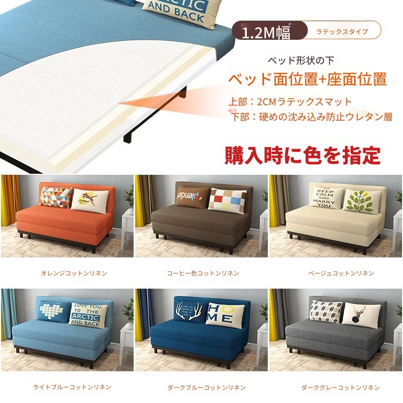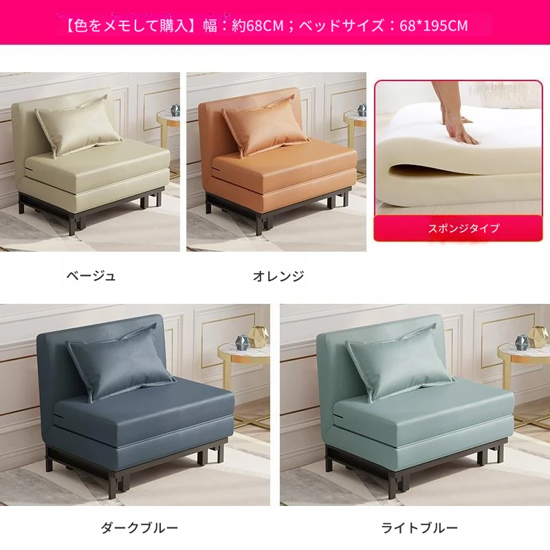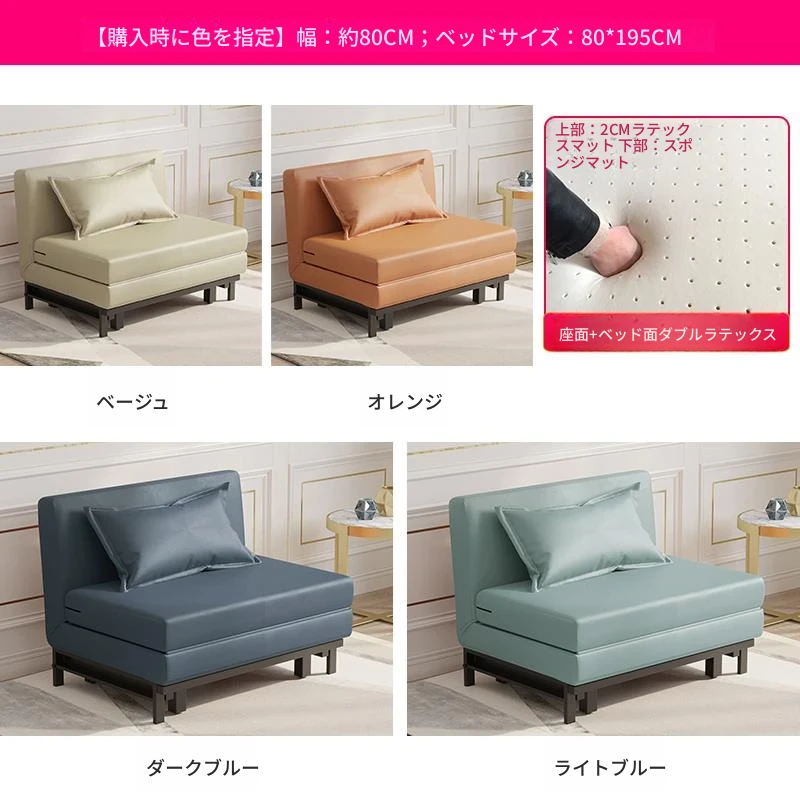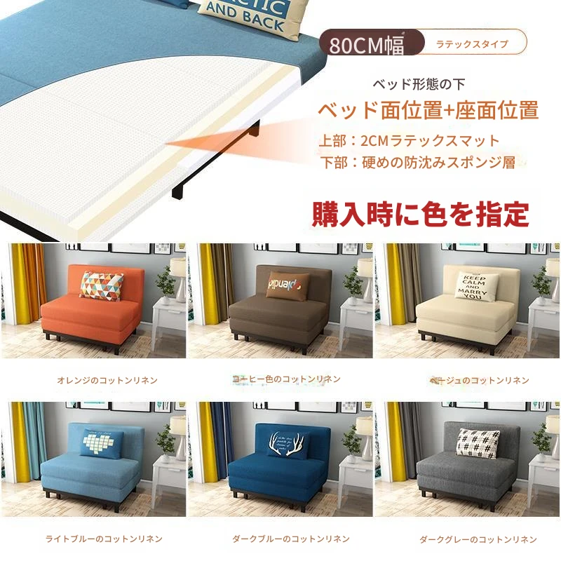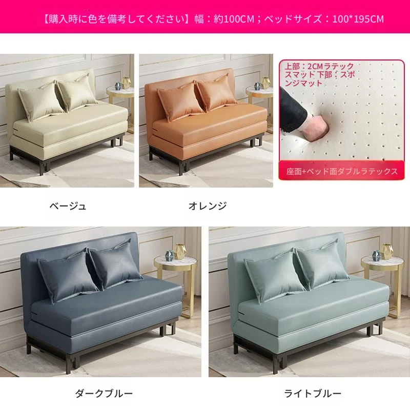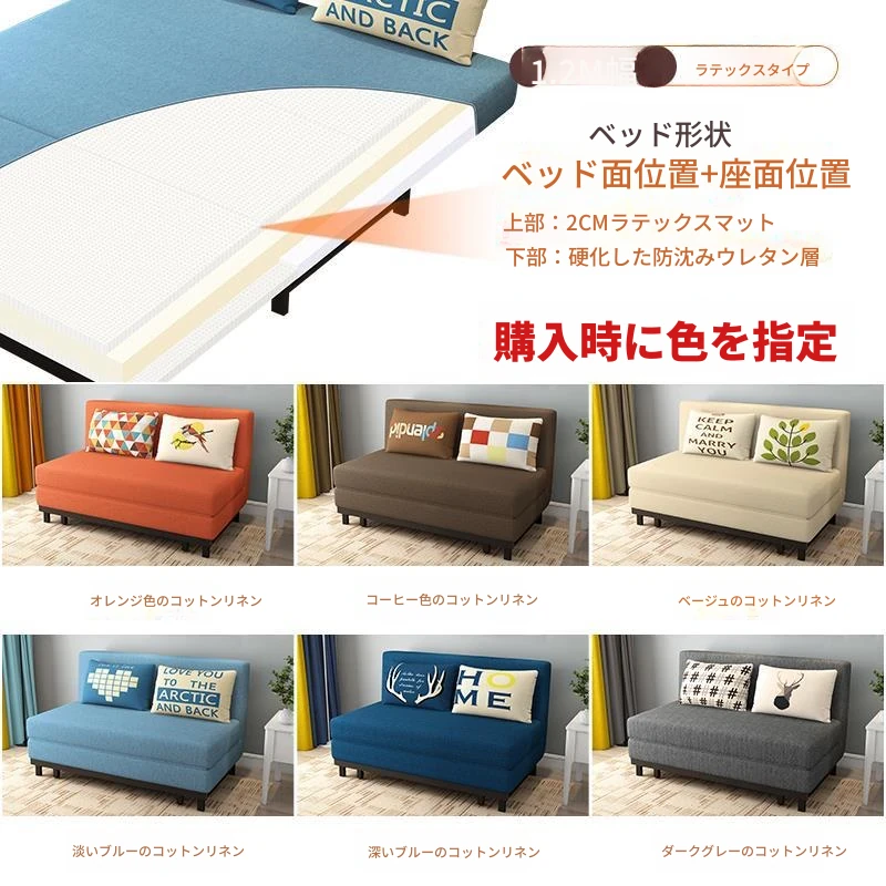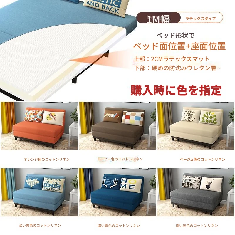 【香港送料無料】折りたたみ式ソファベッド!多機能スライド式シングルソファ、小型住宅に最適な二人用ラテックスマットレス付き!快適でスタイリッシュな空間を実現します!