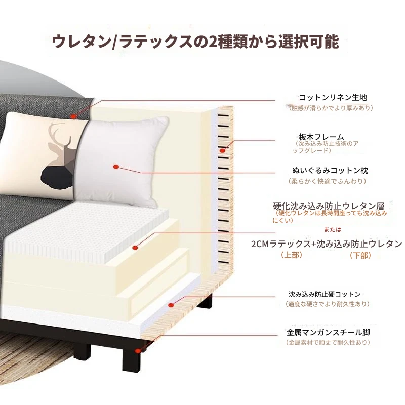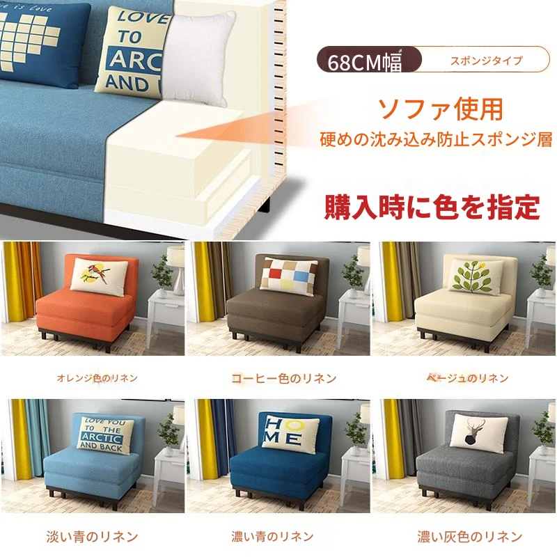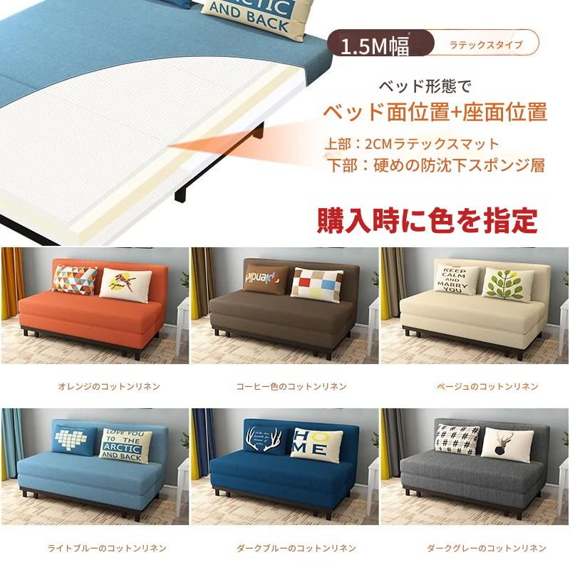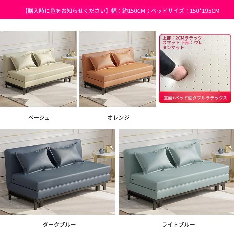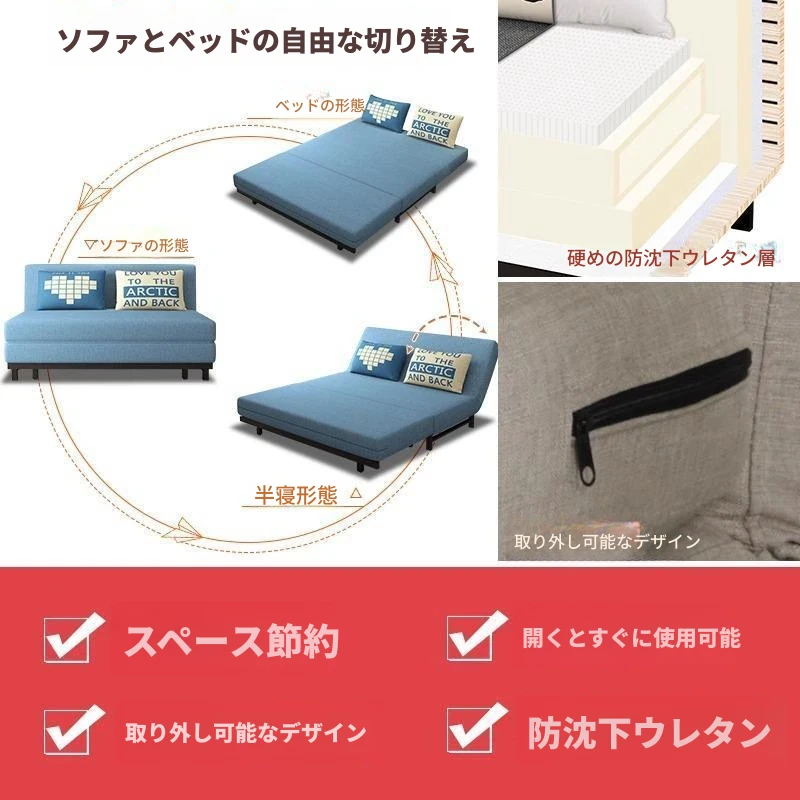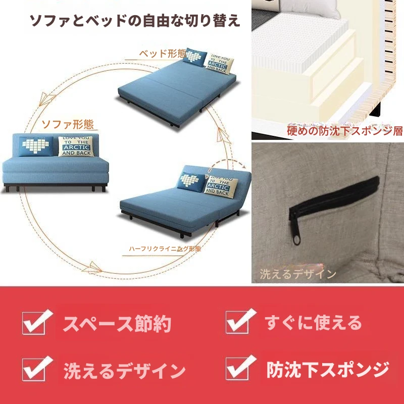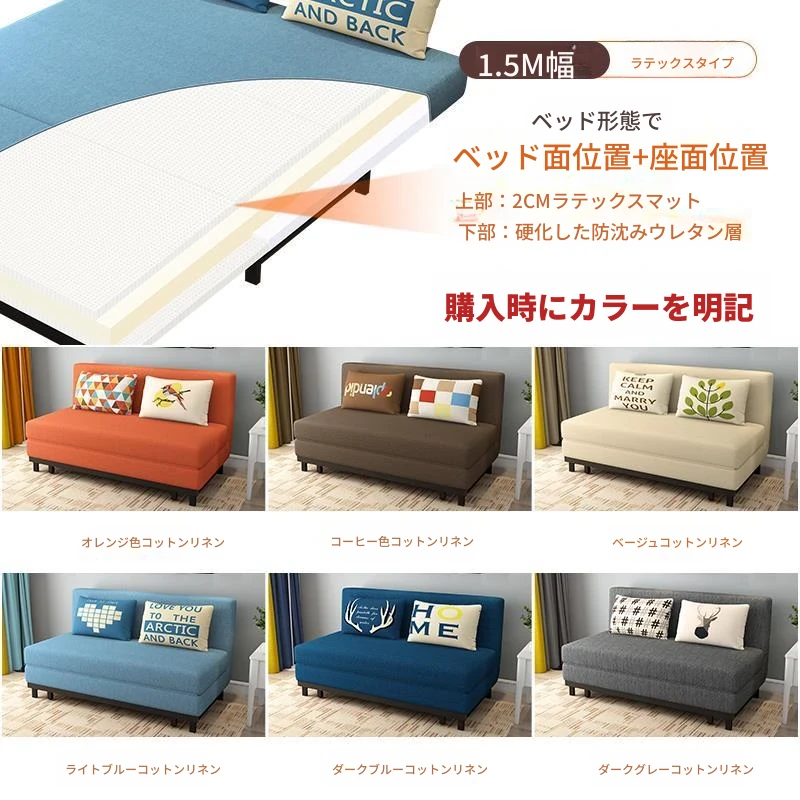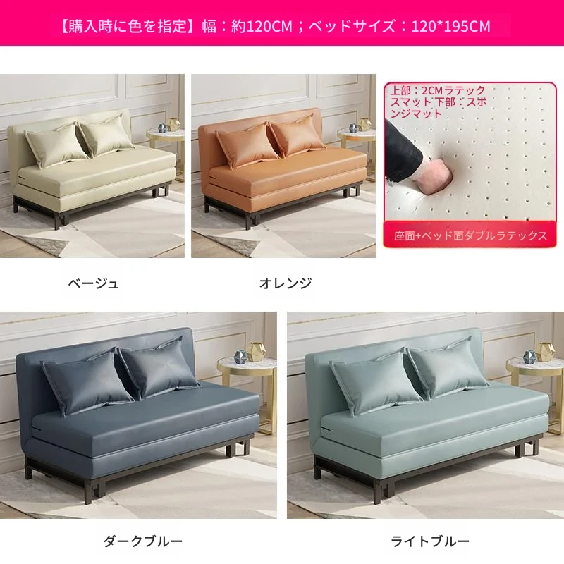 【香港送料無料】折りたたみ式ソファベッド!多機能スライド式シングルソファ、小型住宅に最適な二人用ラテックスマットレス付き!快適でスタイリッシュな空間を実現します!