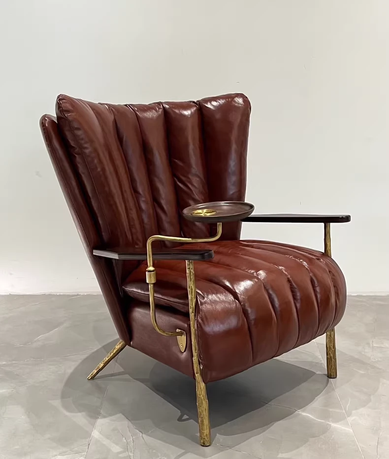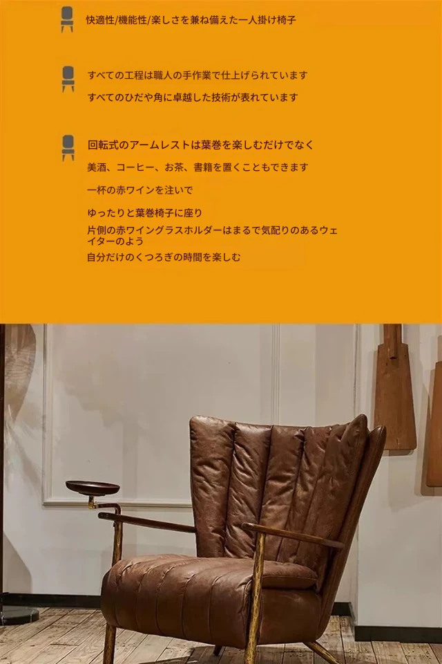 手作のヴィンテージ風一人掛けソファ「2025年モデル」本革シガーチェア アメリカン・ゴッドファーザー・チェア 古典的な虎の椅子で、洗練された雰囲気を演出!おしゃれなインテリアに最適です。