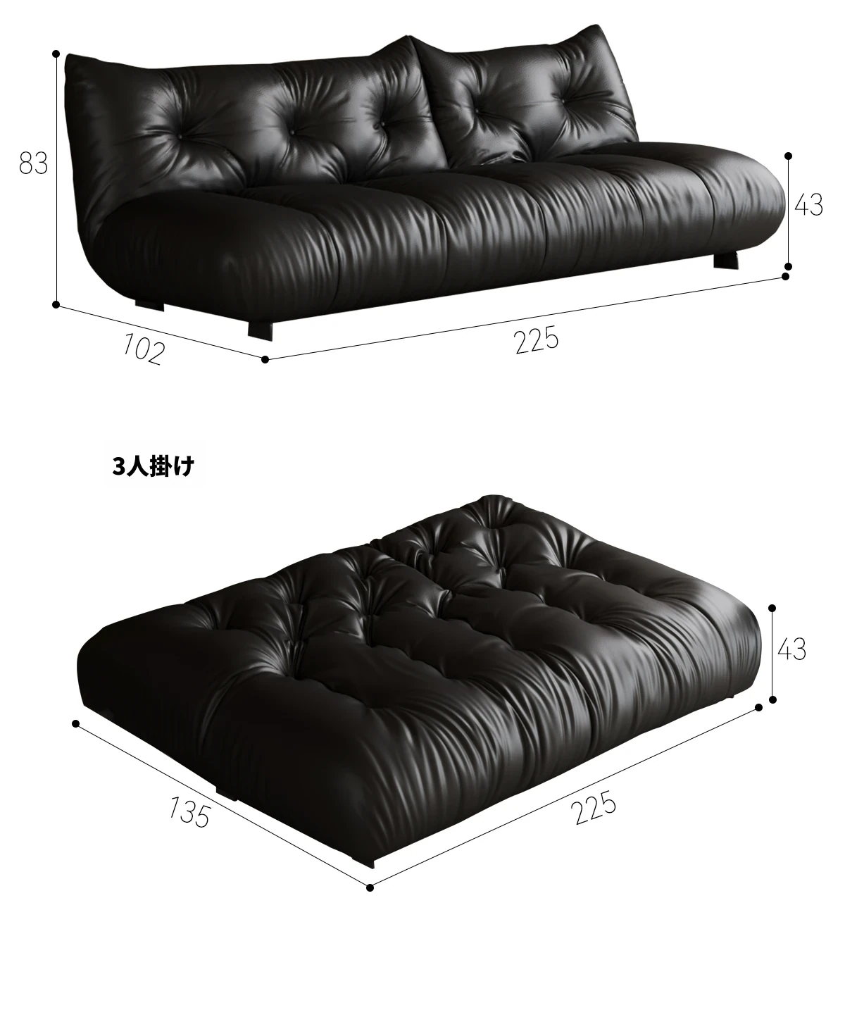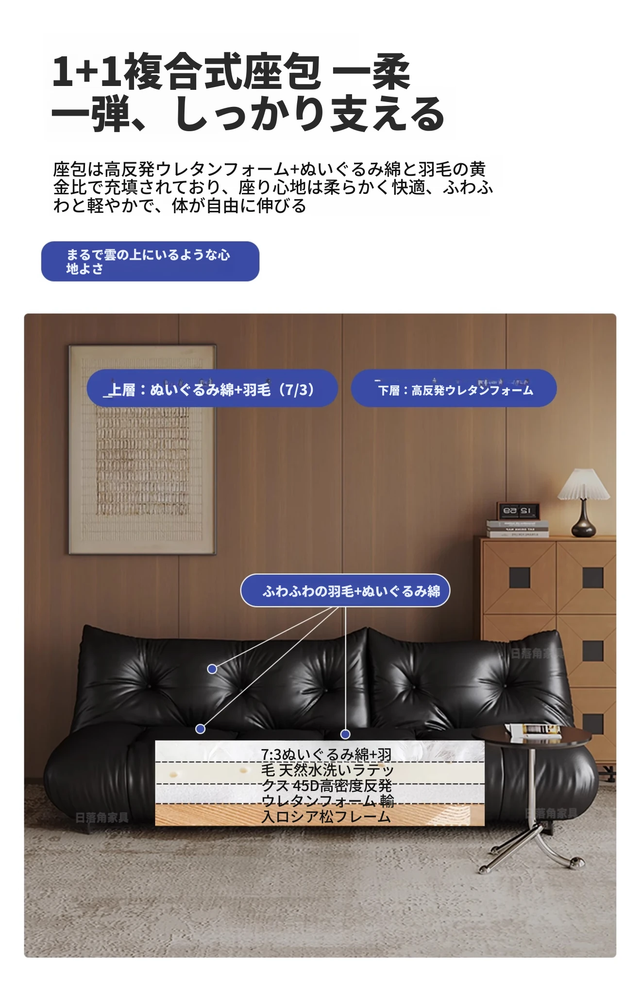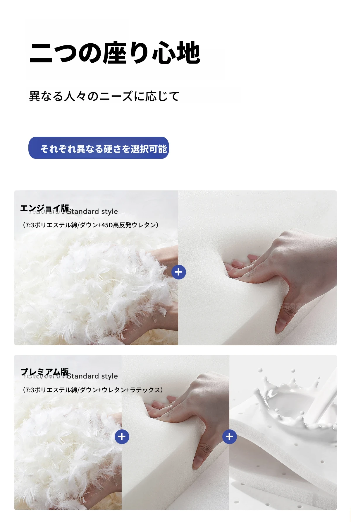 2.2mm厚手ライチ模様本革【スポンジ+ラテックス+ダウン】2.25メートル + 五段調整エクスクルーシブ版