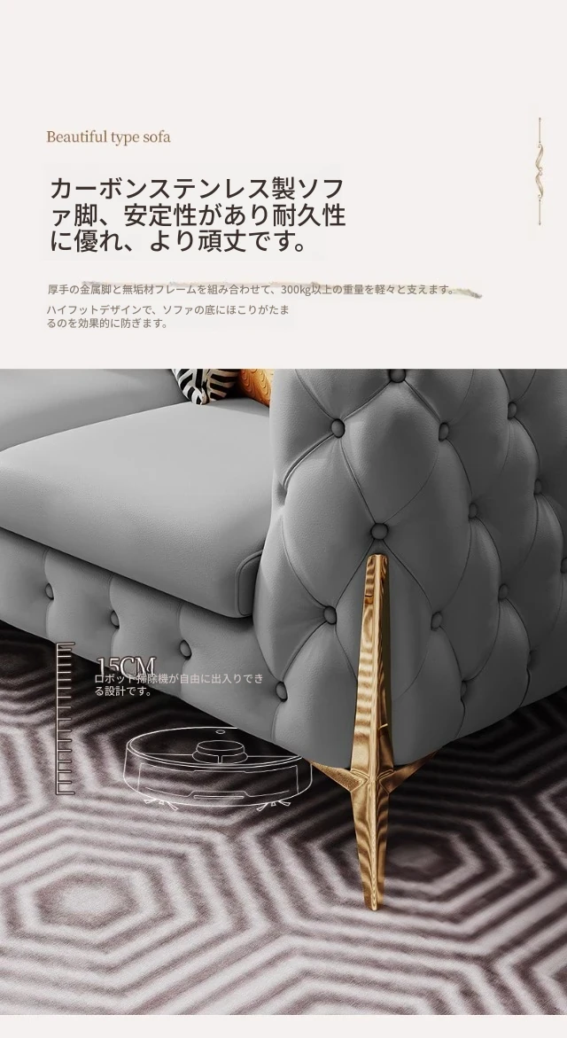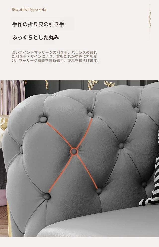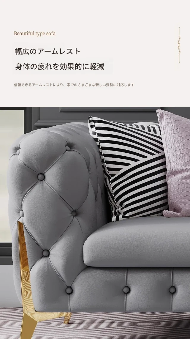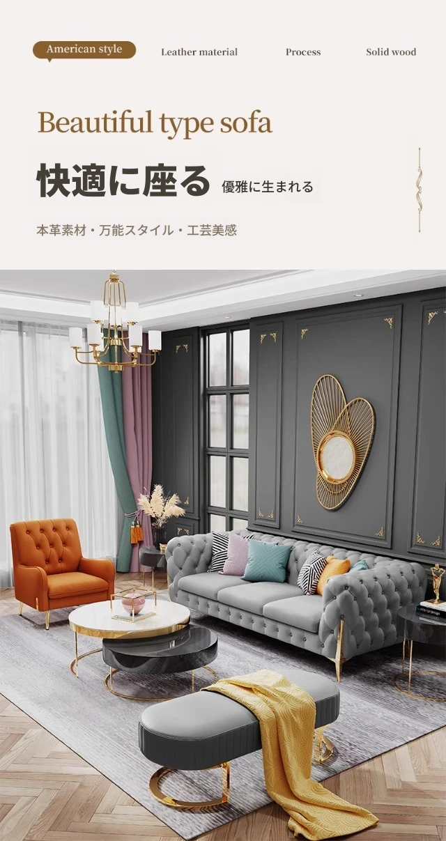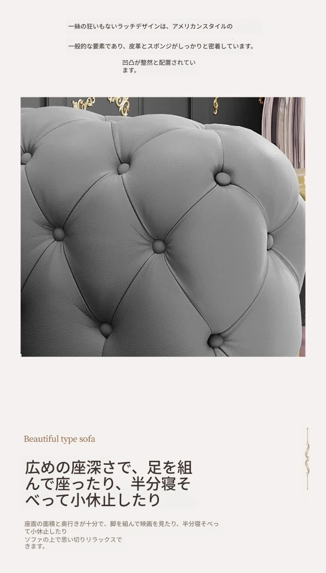イタリアンスタイルのラグジュアリーなミニマルデザインソファ|アメリカンスタイルのボタン付きソファ|佛山産の高級本革使用!心地よい座り心地と洗練された美しさをあなたのリビングに。