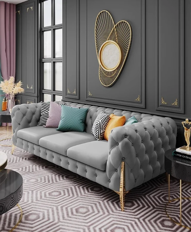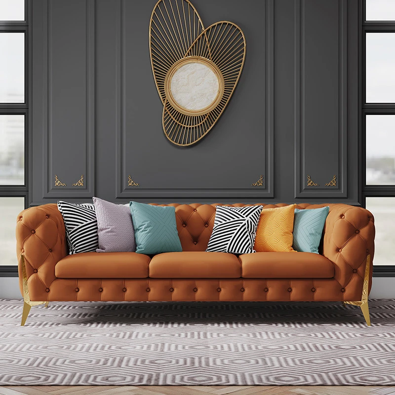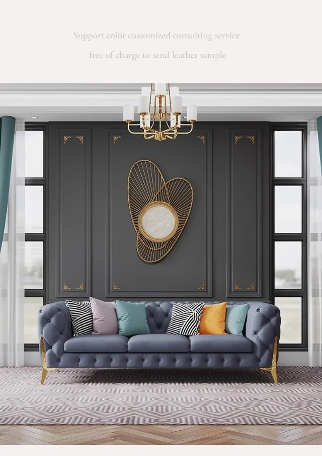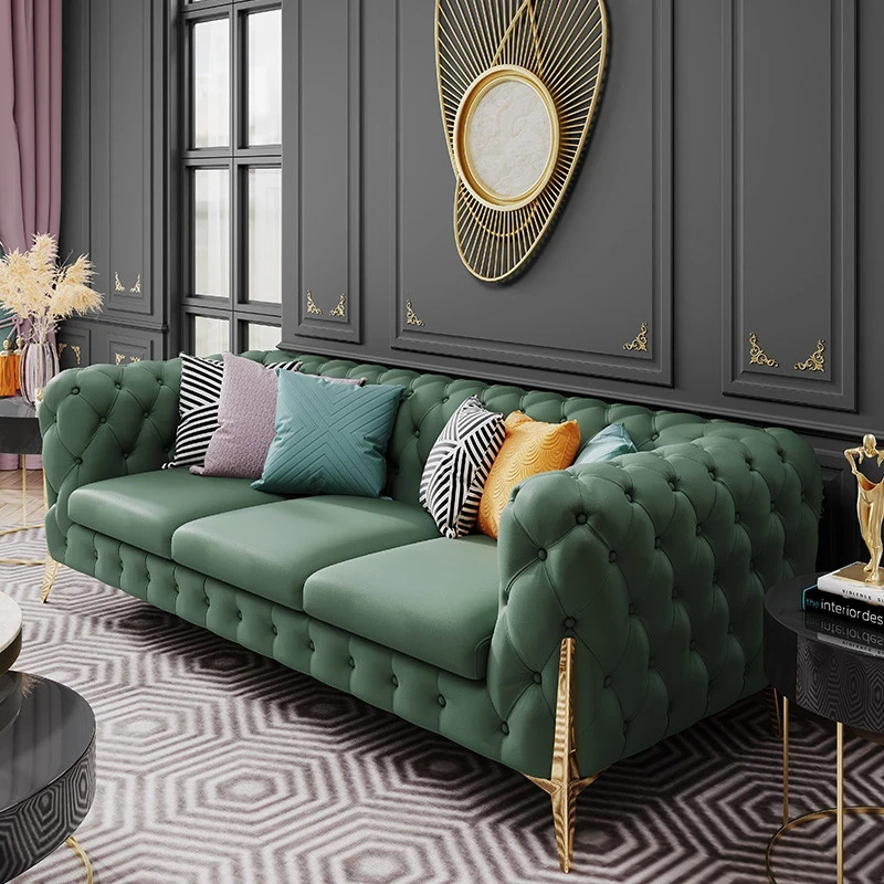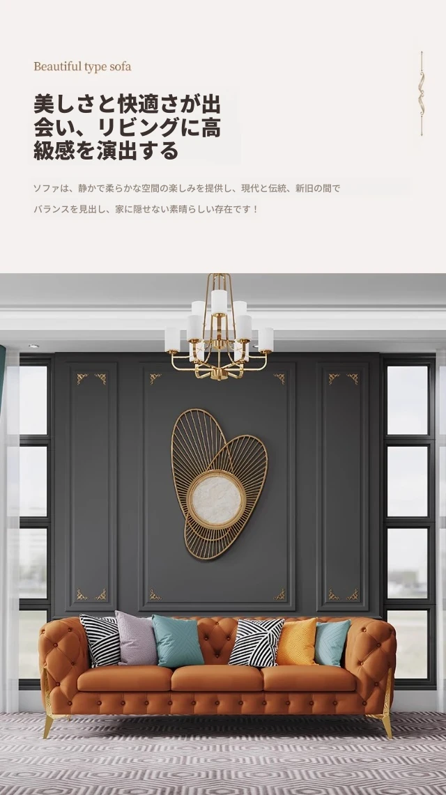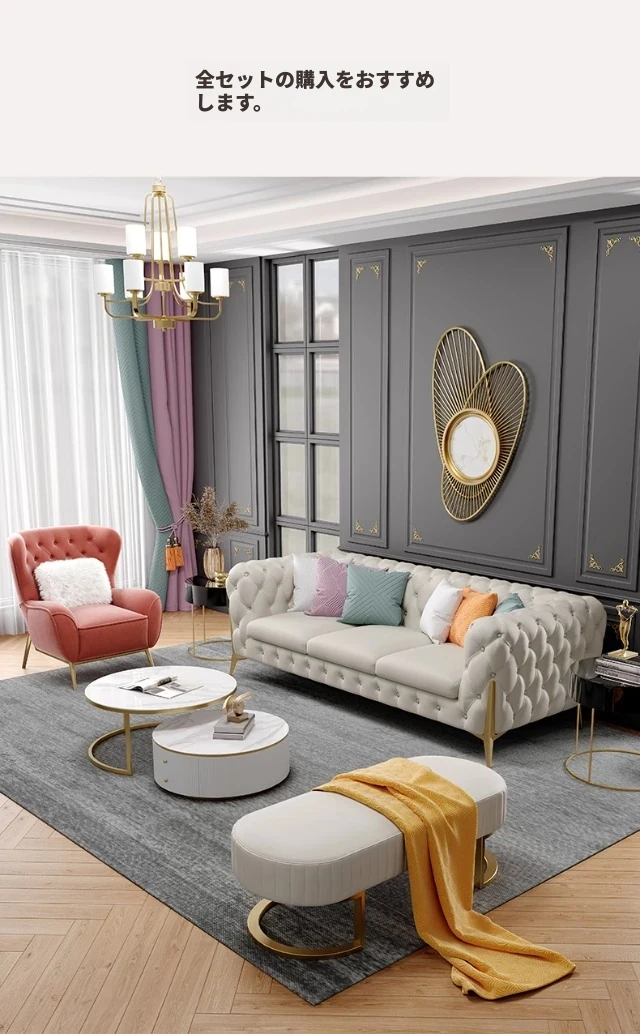 イタリアンスタイルのラグジュアリーなミニマルデザインソファ|アメリカンスタイルのボタン付きソファ|佛山産の高級本革使用!心地よい座り心地と洗練された美しさをあなたのリビングに。